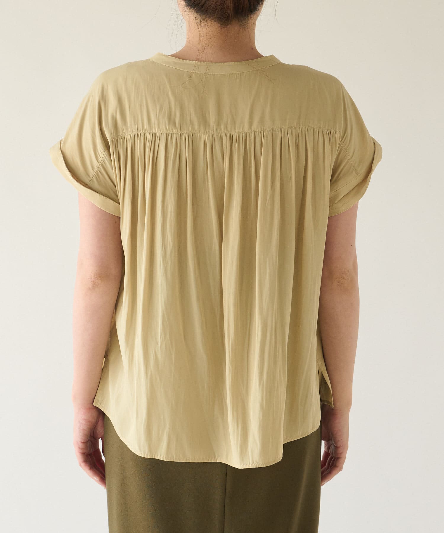 身幅はギャザーでゆとりを出しており、身体に張り付かず涼しく着て頂けます。