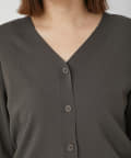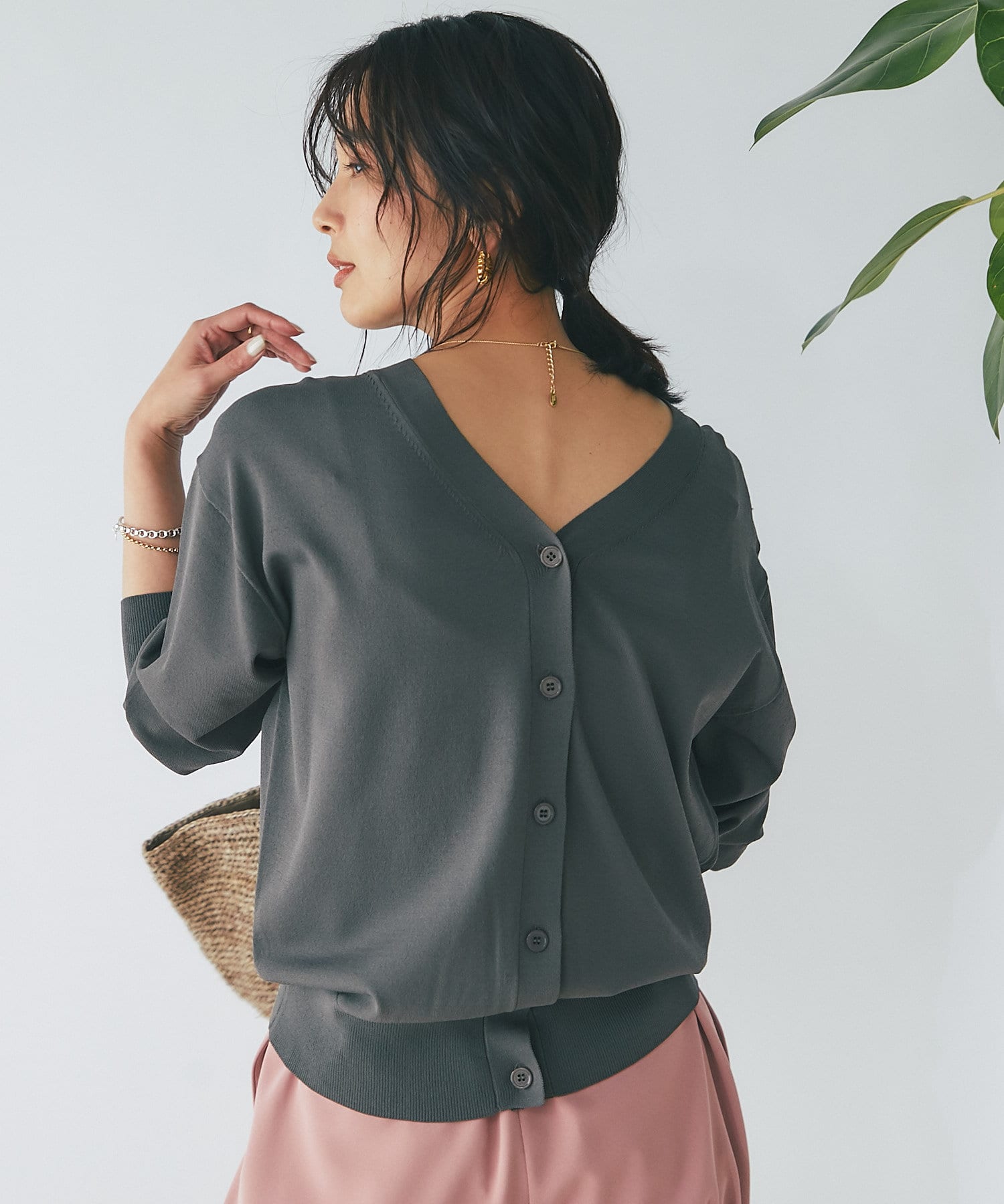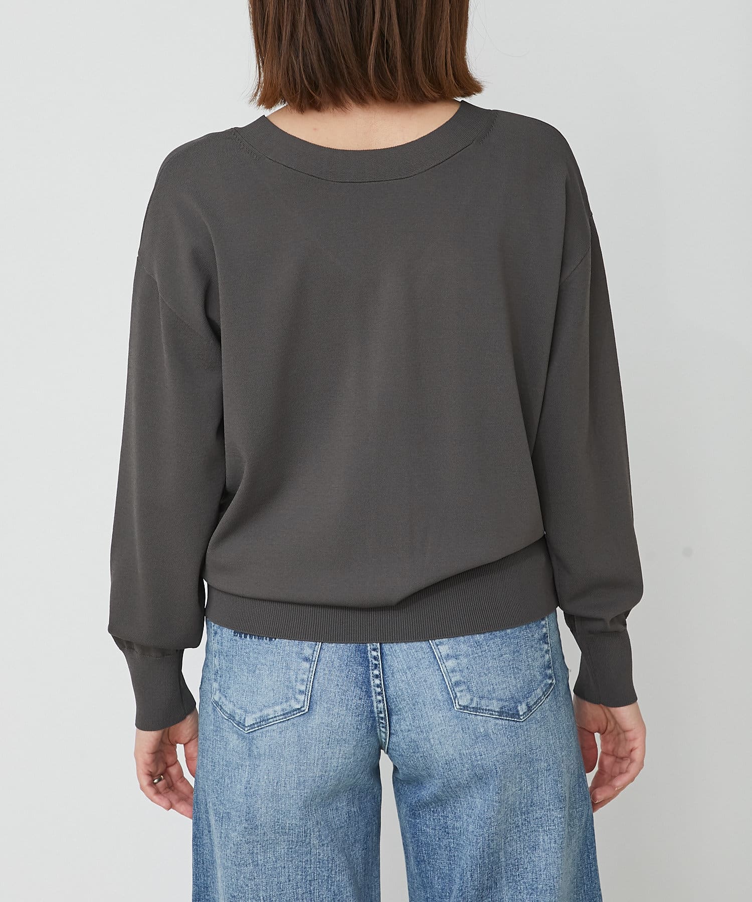 ゆとりのあるボディと前後で着用可能な2WAYネックが特徴で、Vネックはボタンを留めてプルオーバー風に着て頂いたり、羽織としても着用できるマルチな1枚です。 ご自宅で手洗いできるのも嬉しいポイント!
