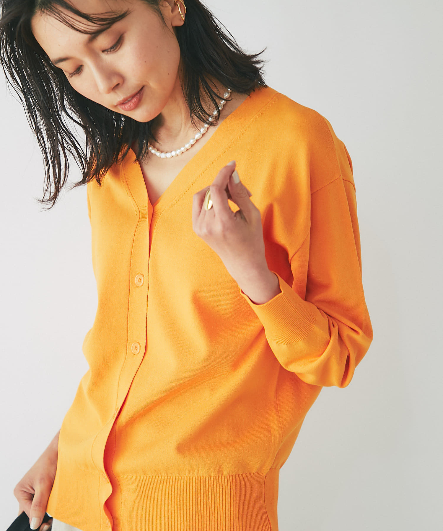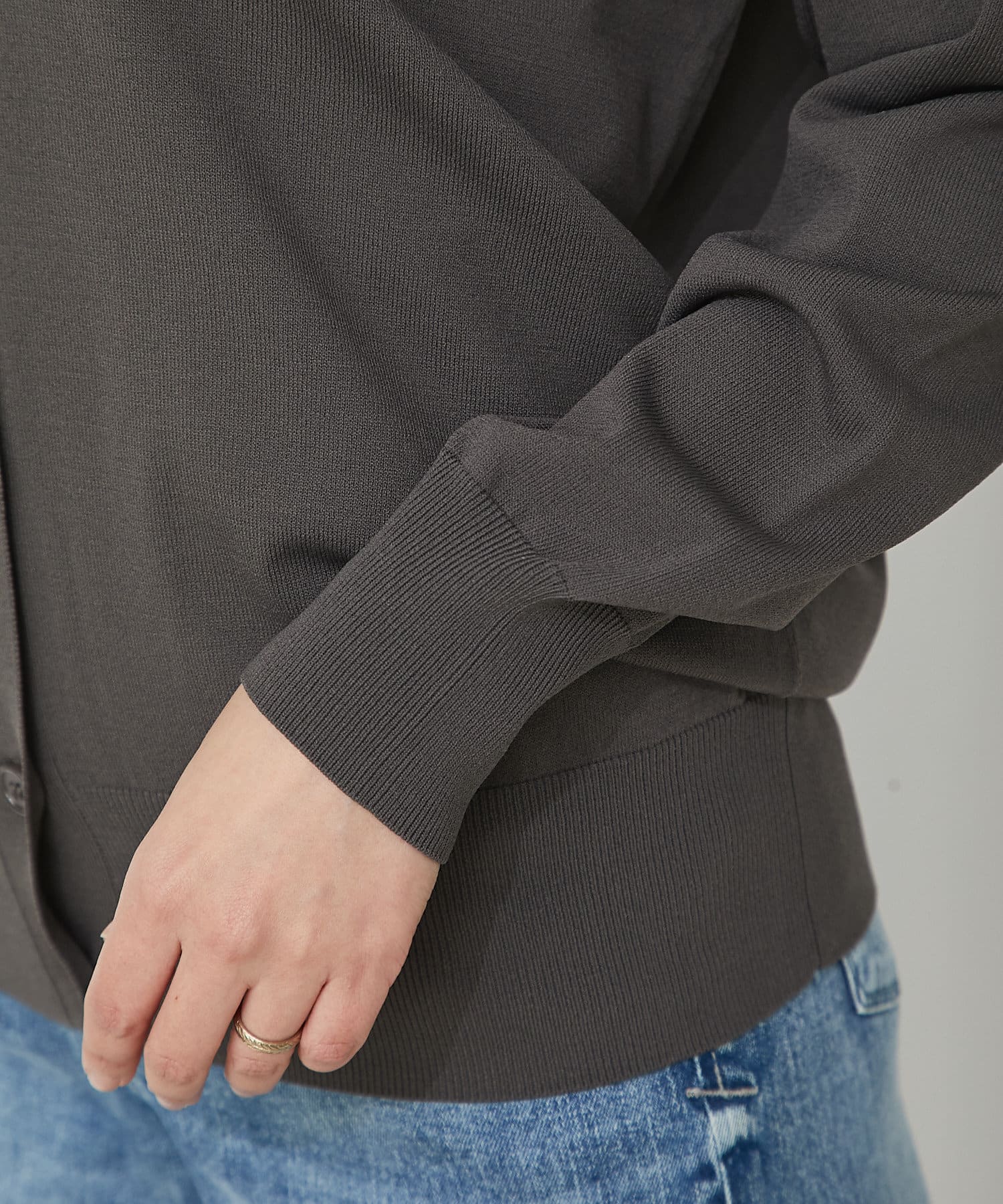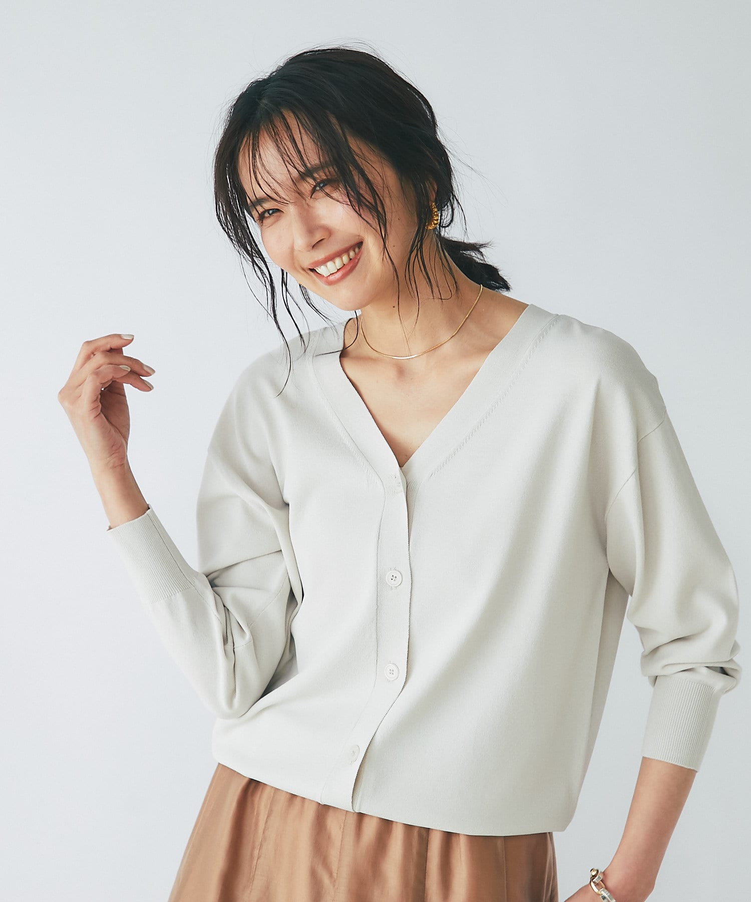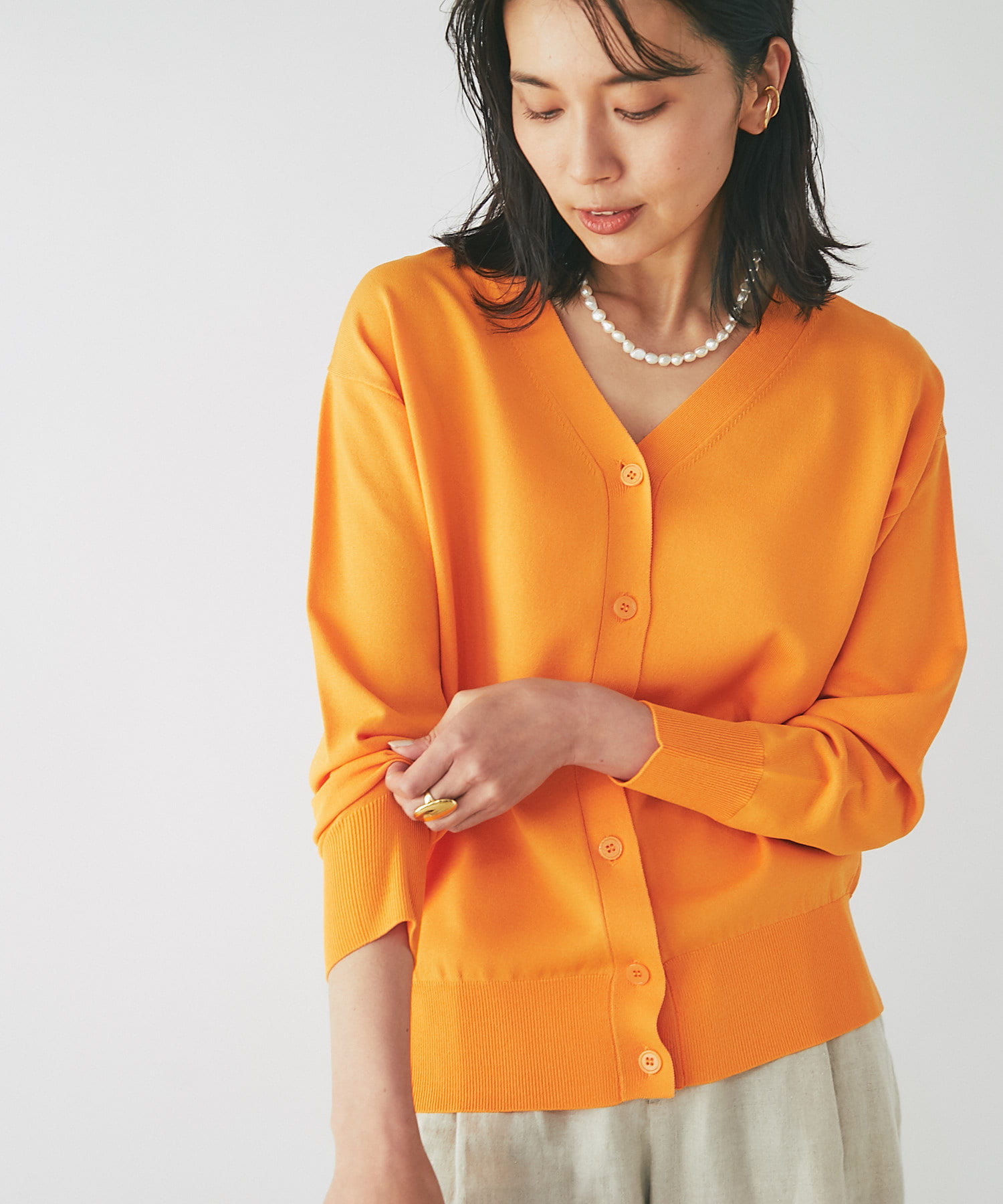 クールタッチUVのキレイな天竺の着丈短めのカーディガン。