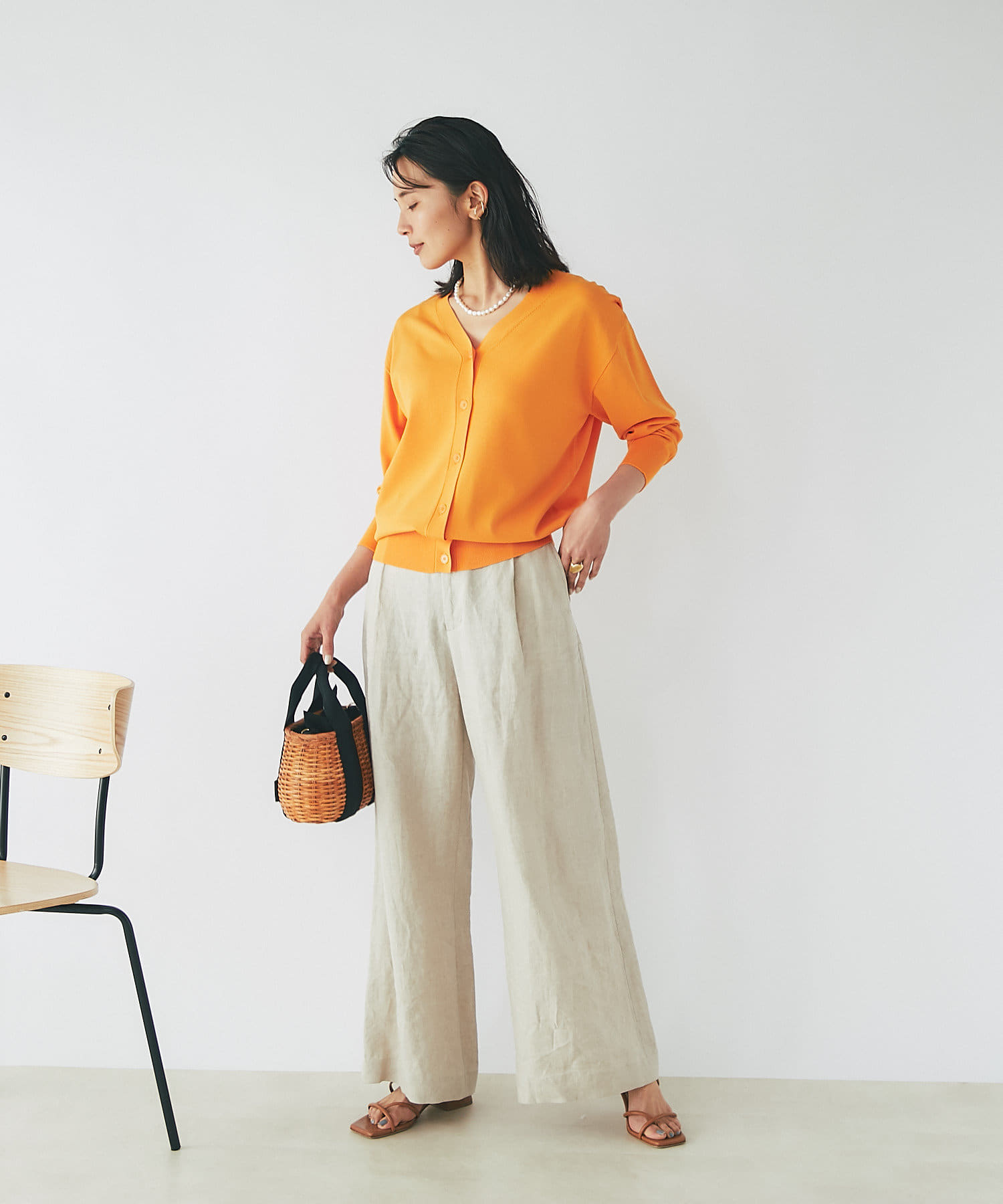 程よいフィット感なので、ワイドパンツやフレアスカートとの相性も抜群◎
