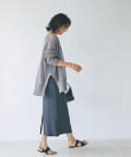 Tシャツの上に羽織るのがおすすめです。シンプルなトップスでも、雰囲気のあるコーディネートになります。また、テレコアメスリタンクブラトップをINにして、1枚着としての感度のあるコーディネートもおすすめです。ヒップまですっぽりと隠れる長さで、ゆったりとした着心地なのでパンツにもスカートにも合わせやすく、デイリーユースにぴったり!