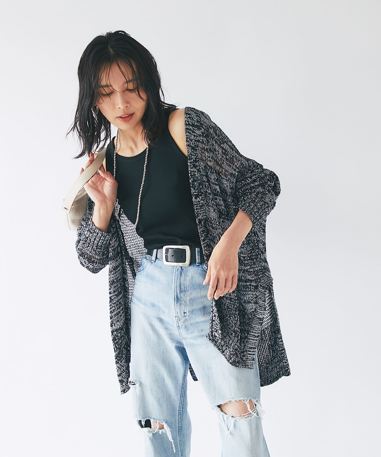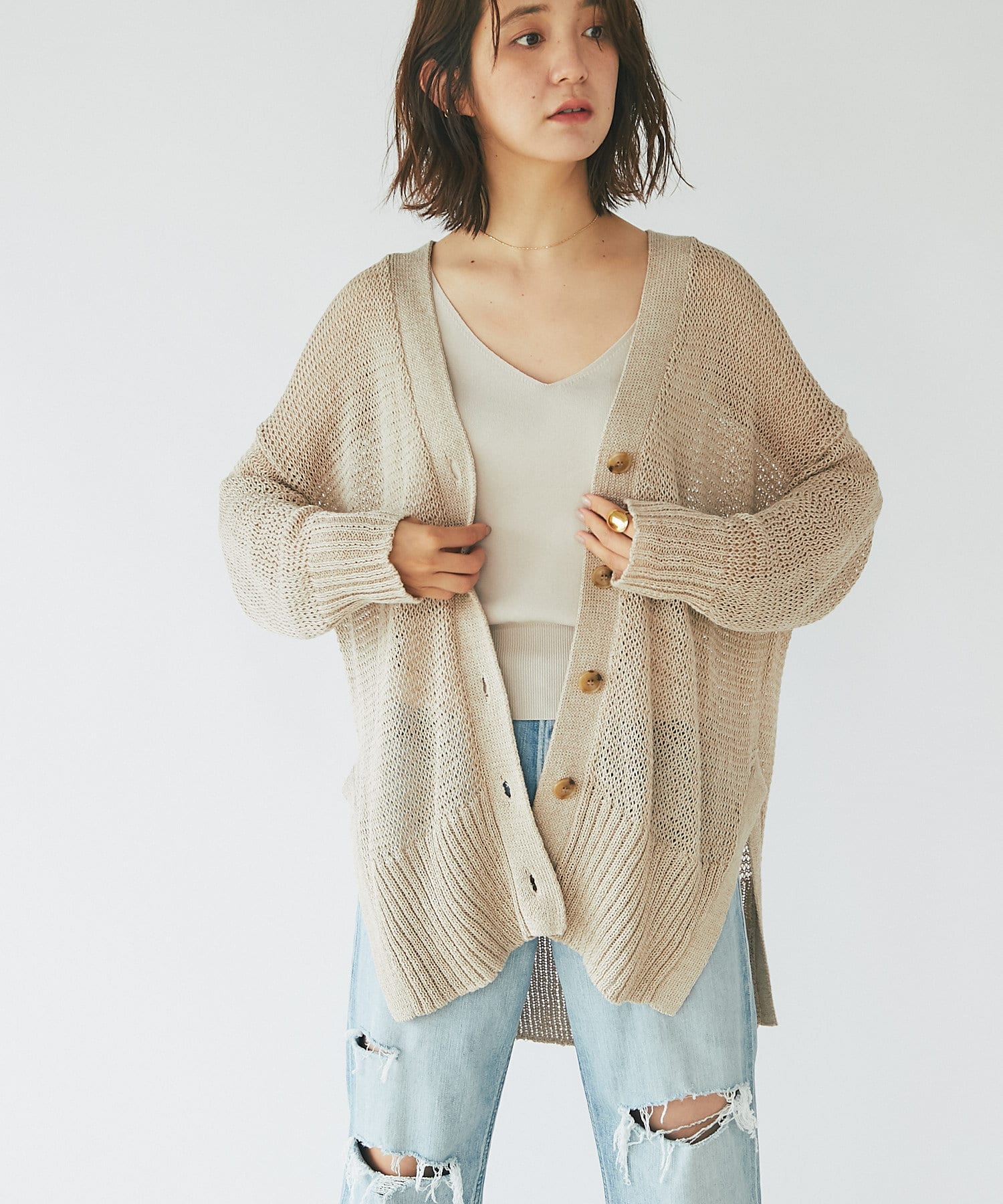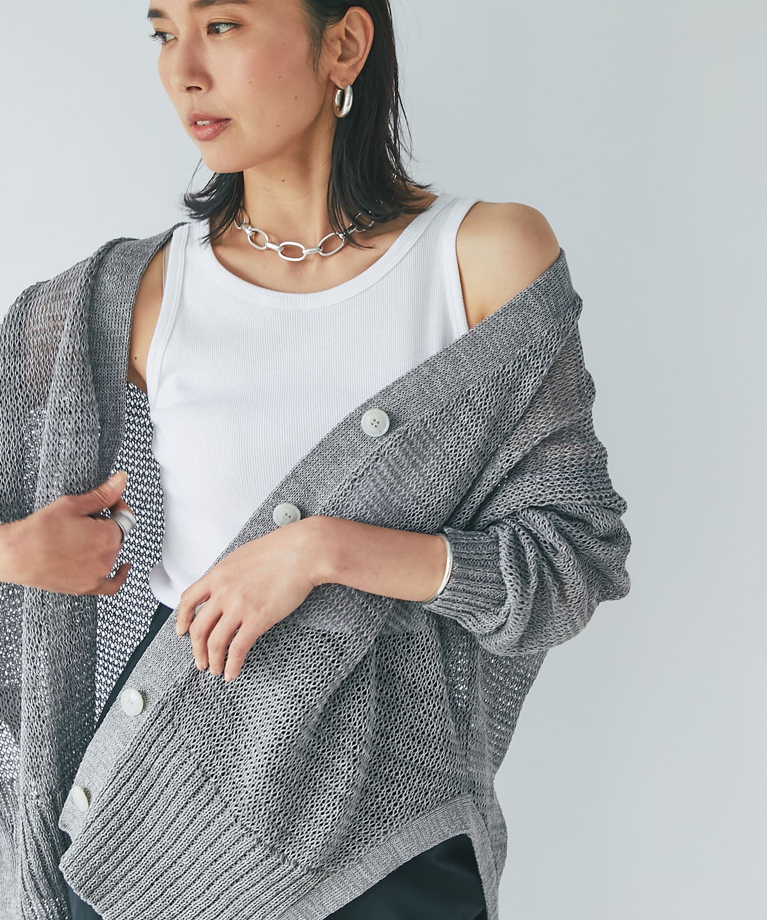 ざっくりとしたシルエットで抜け感のある仕上がりが魅力のカーディガン。