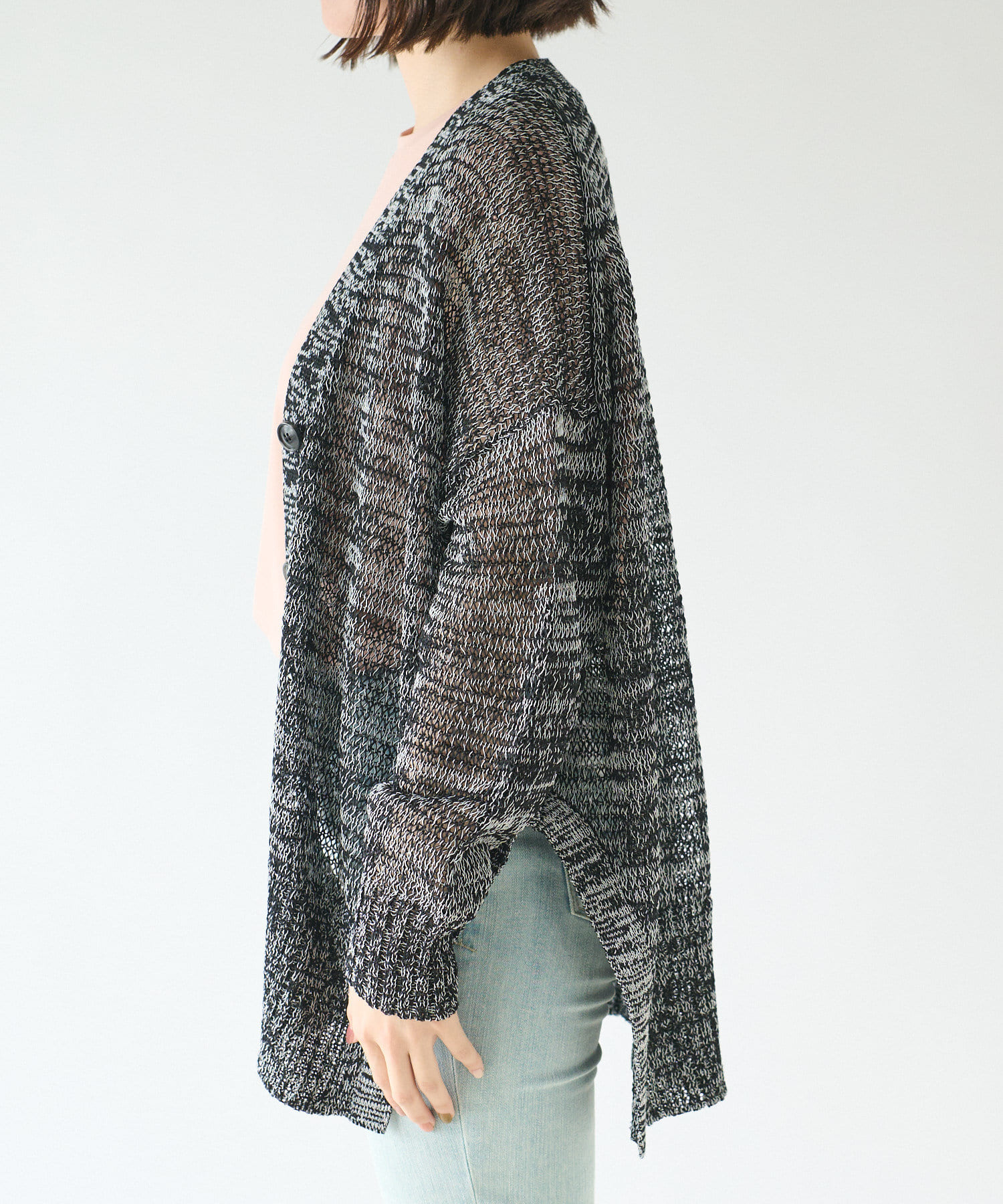 【晩夏から秋口の羽織りにぴったり】サイドスリットニットカーディガン
