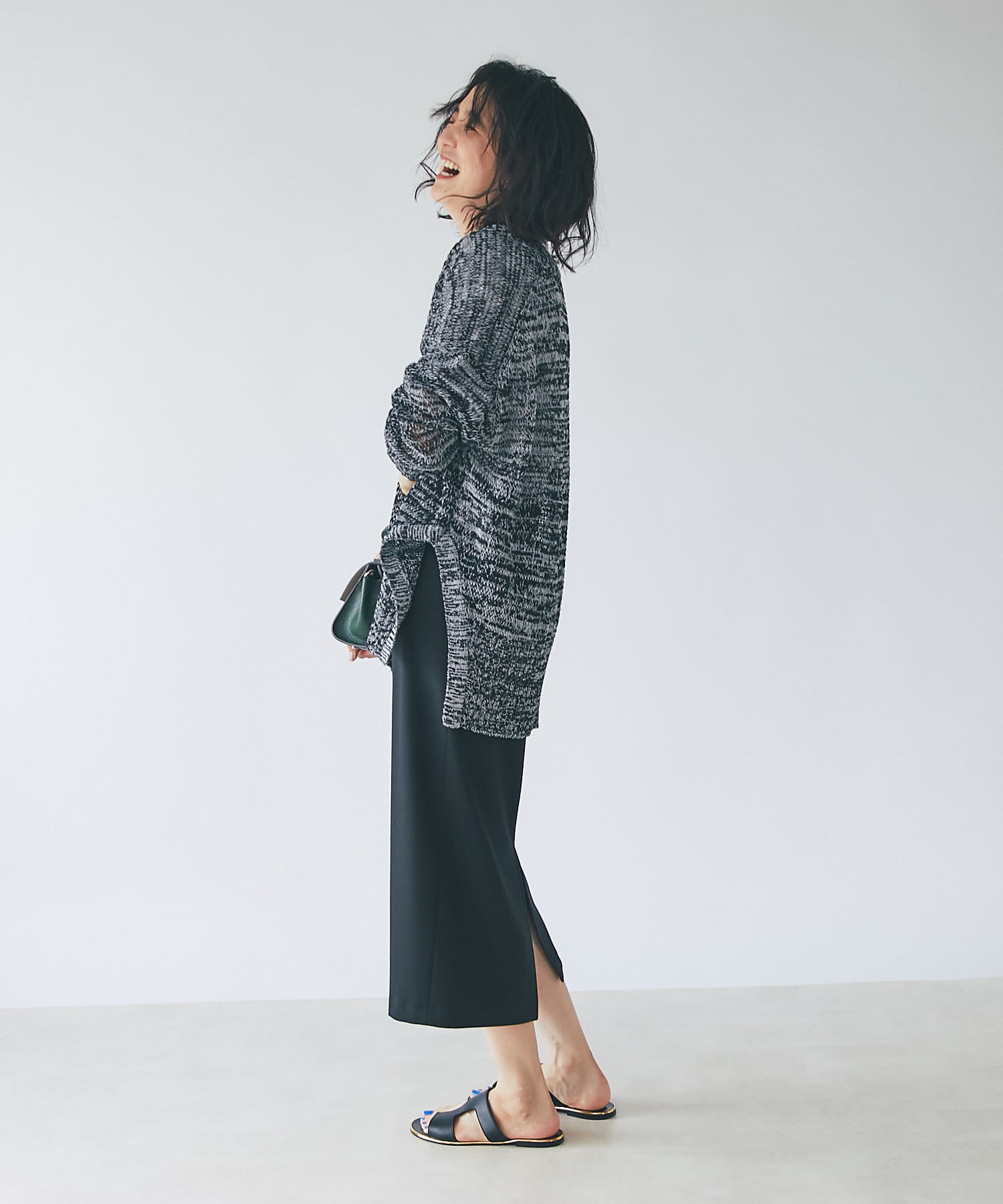 ・サイドのスリットは大きくカーブをとり、抜け感あり