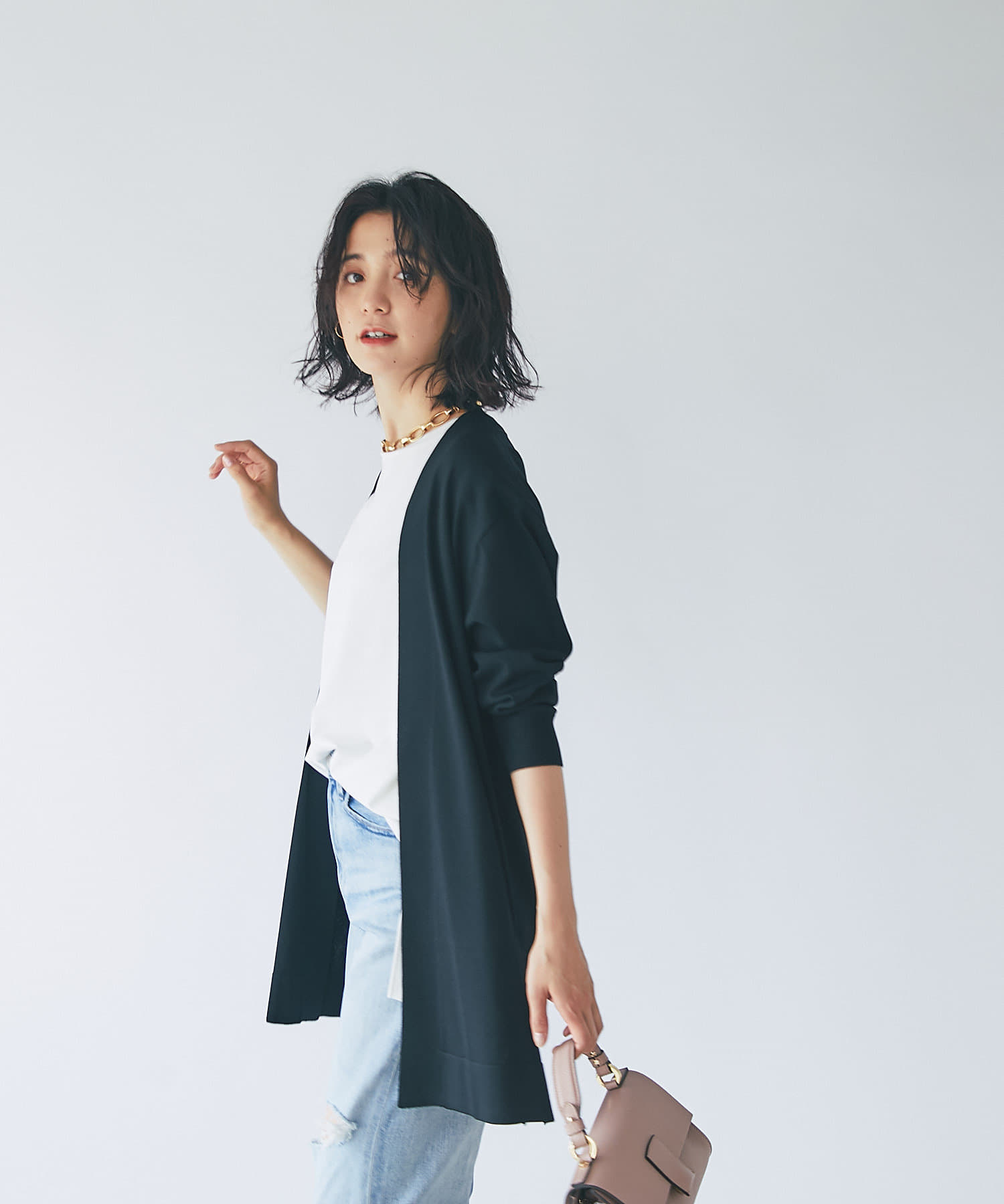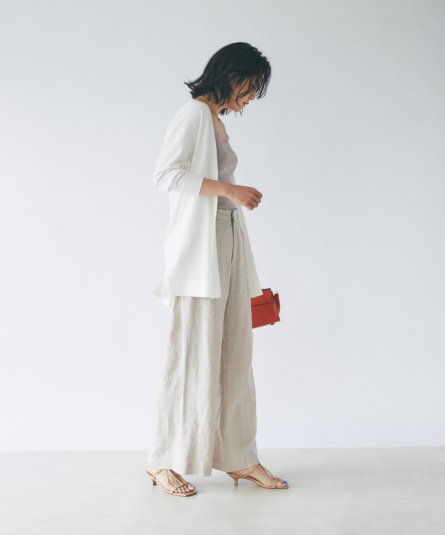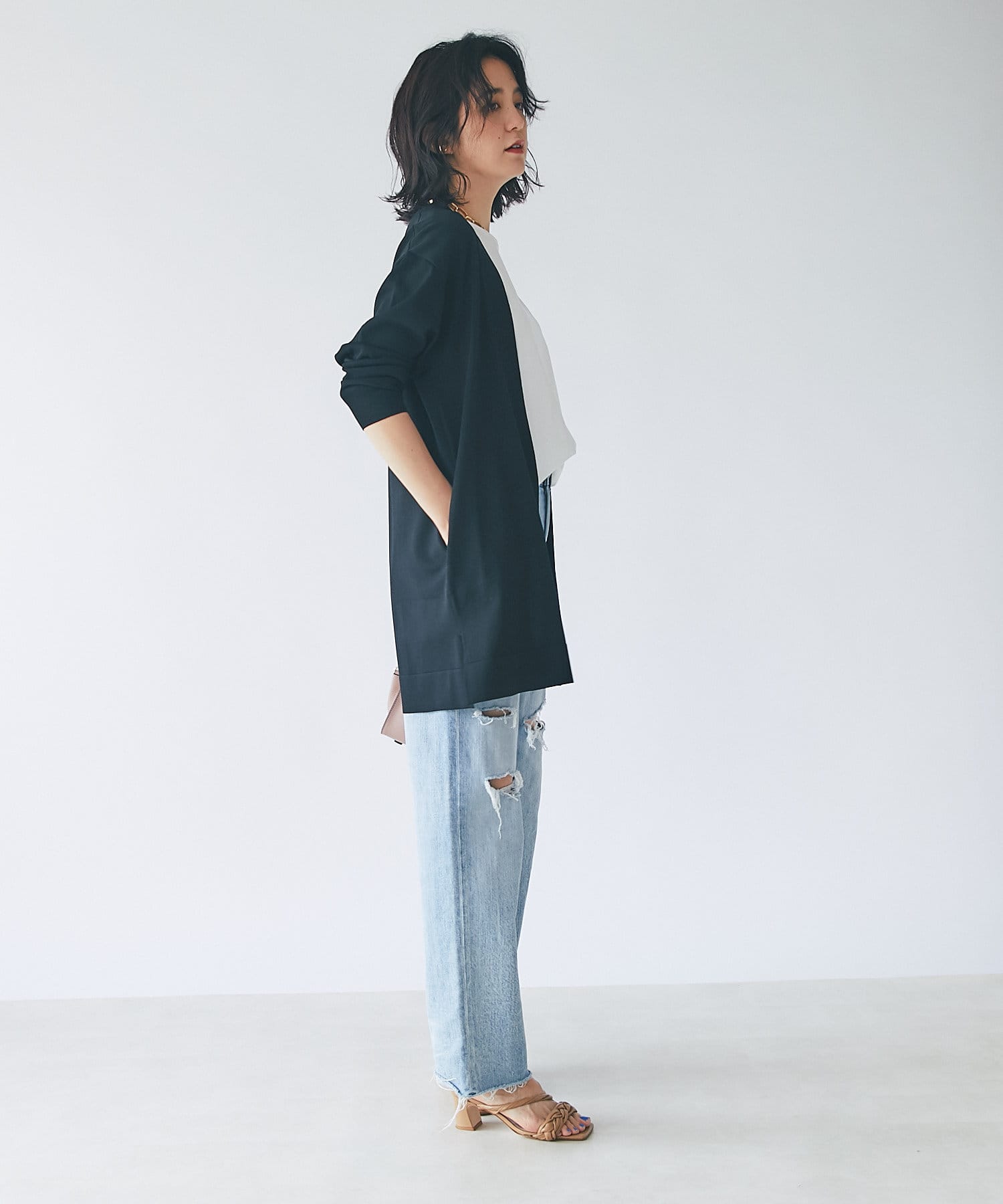 ノースリーブなどに羽織ると日焼けや冷房対策もしつつ、抜け感が出ます。