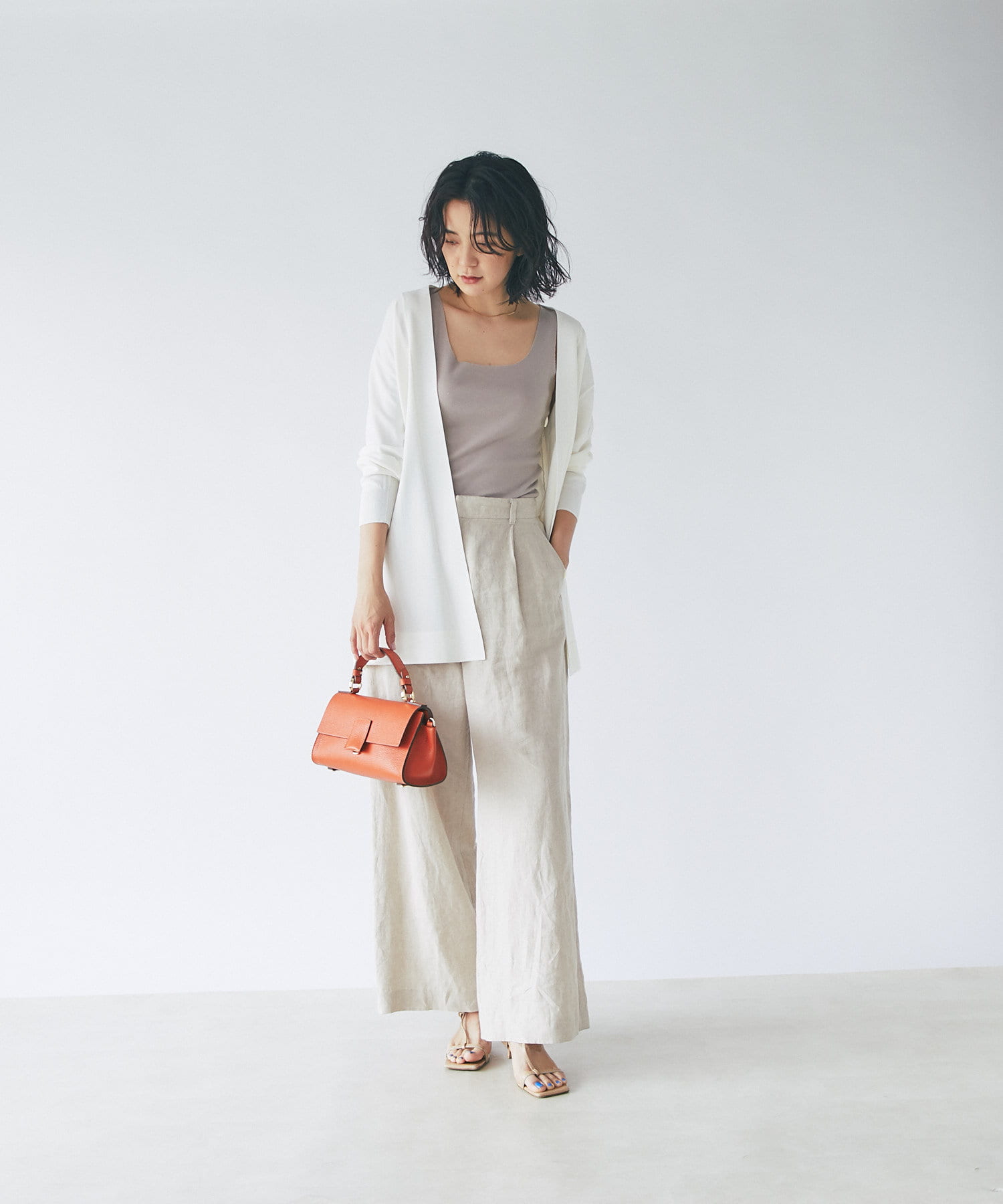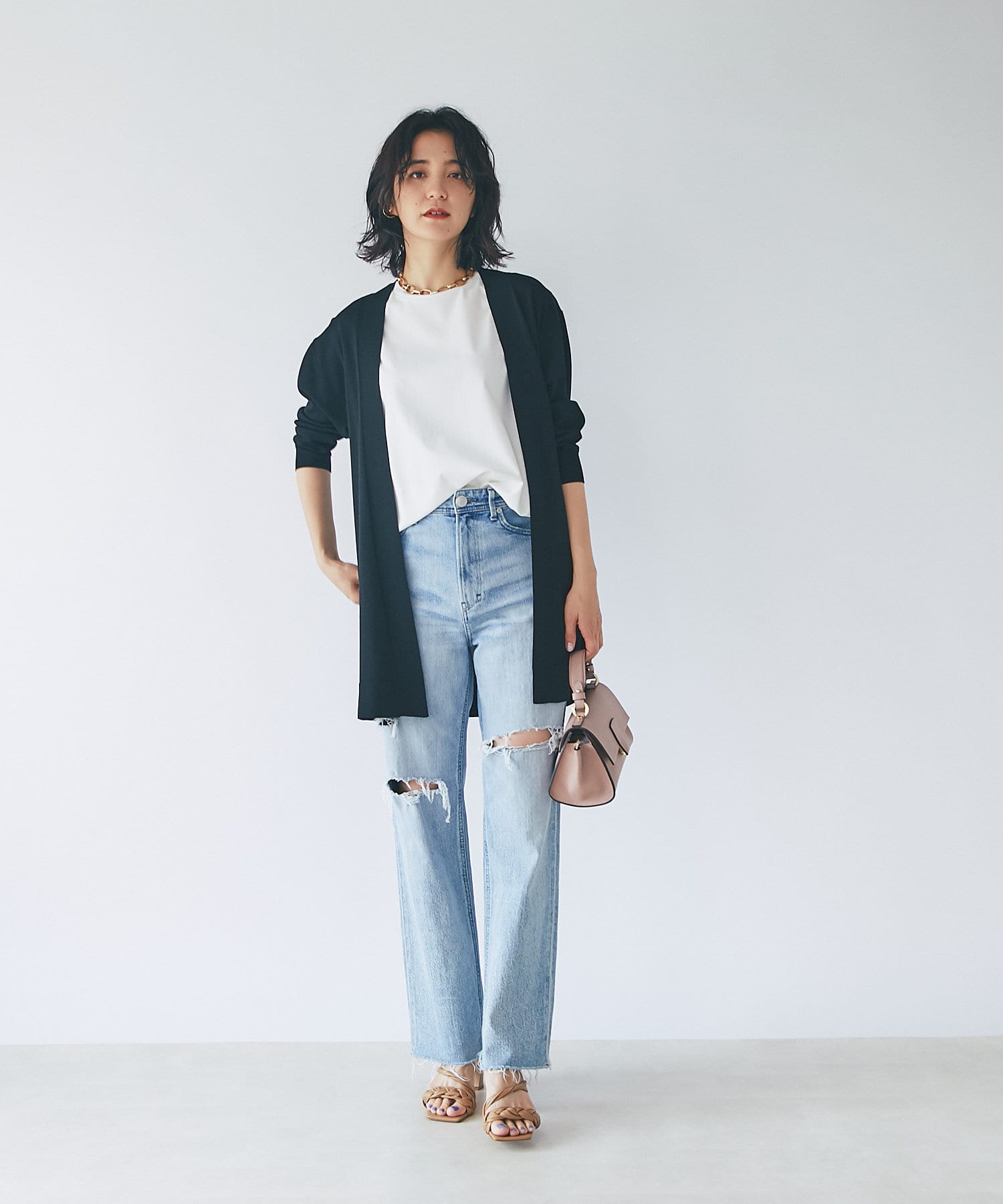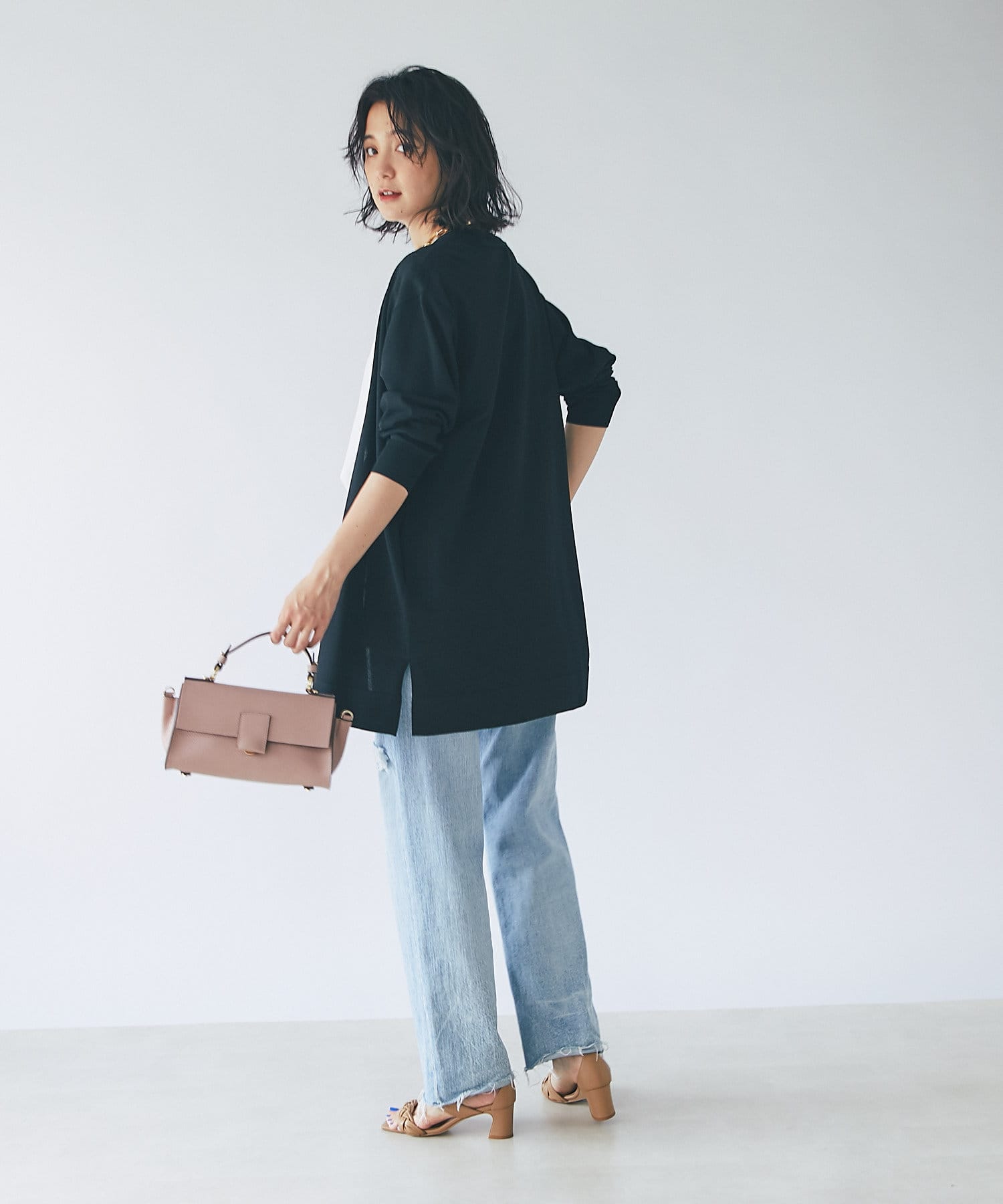 ノースリーブなどに羽織ると日焼けや冷房対策もしつつ、抜け感が出ます。