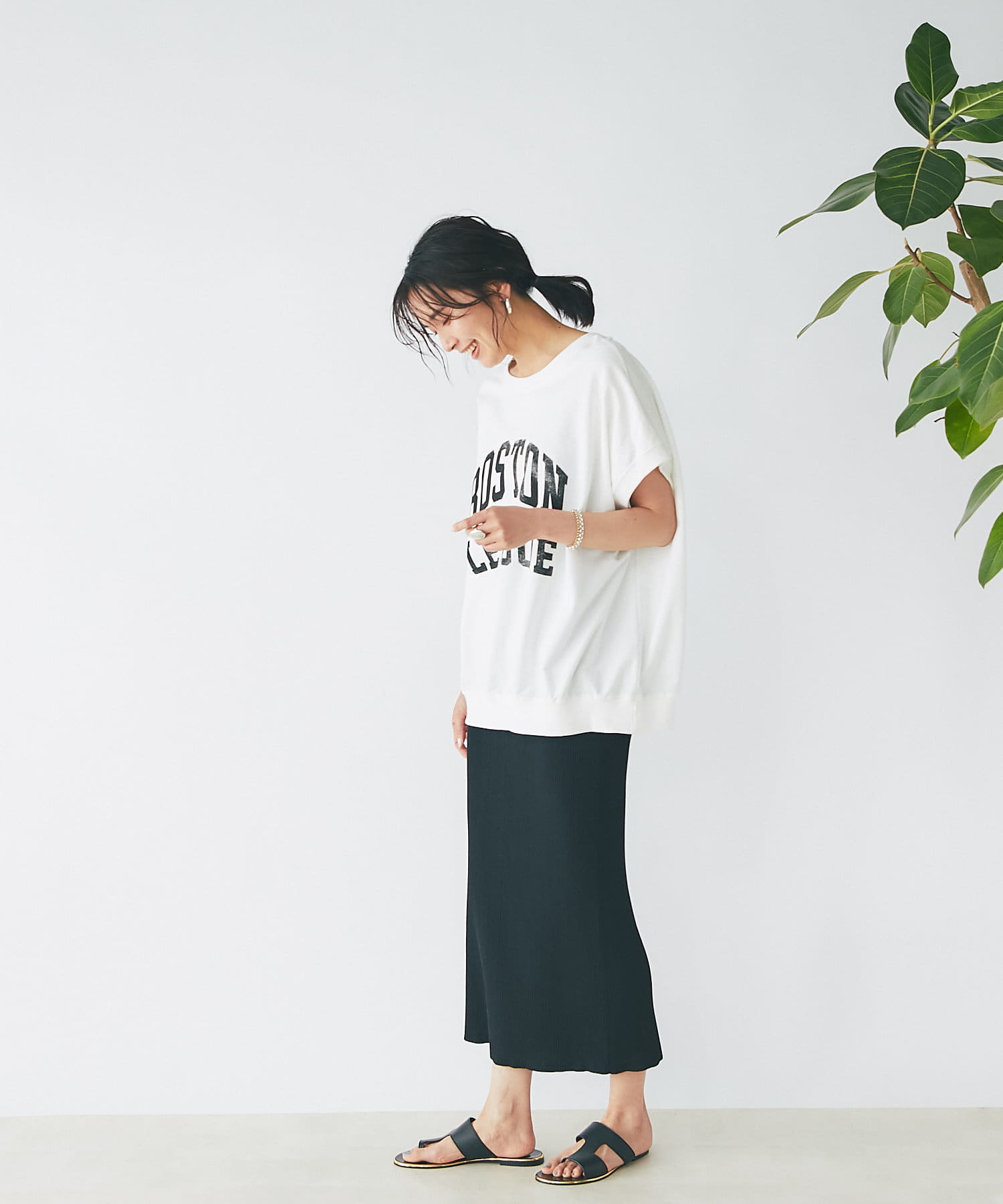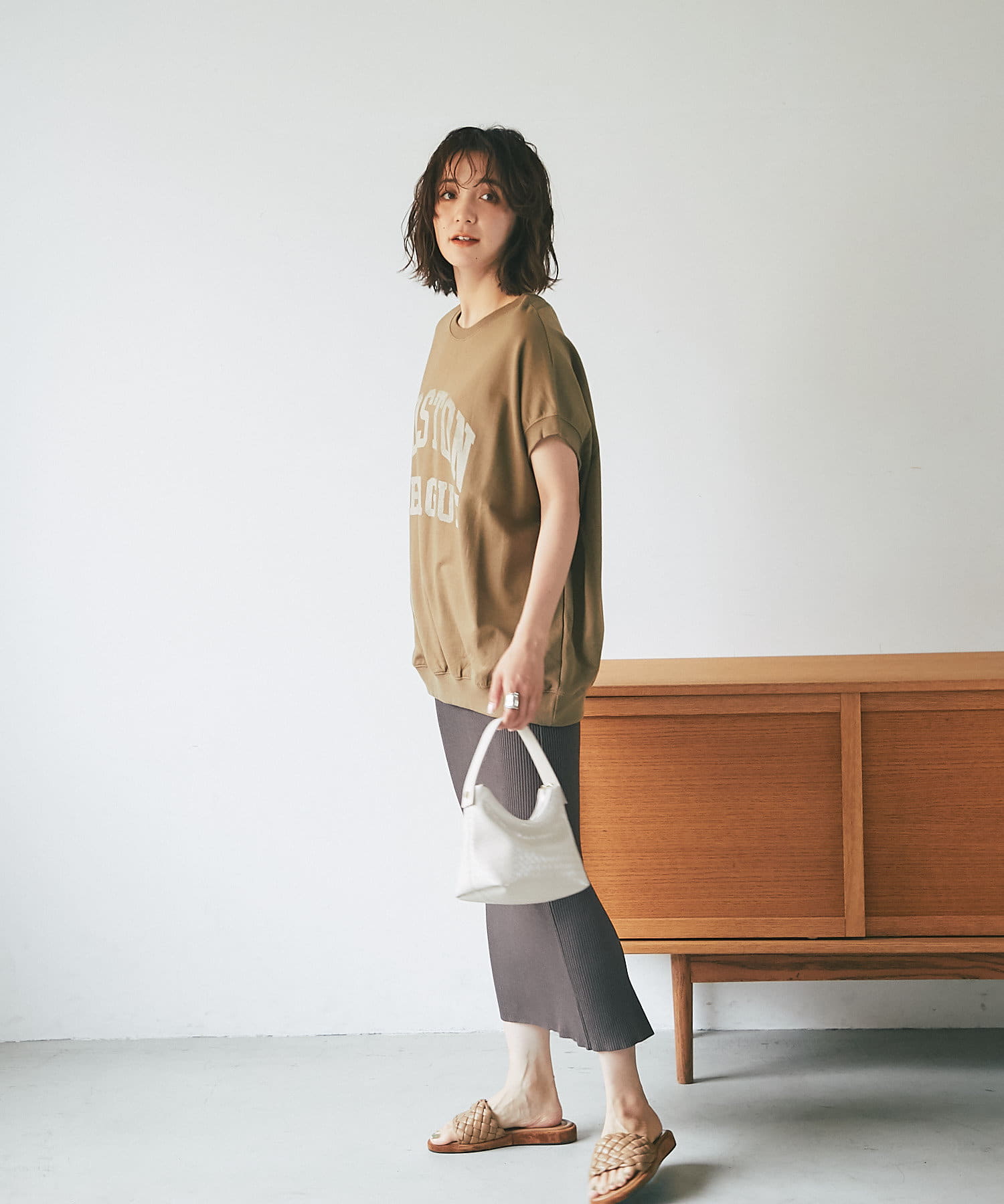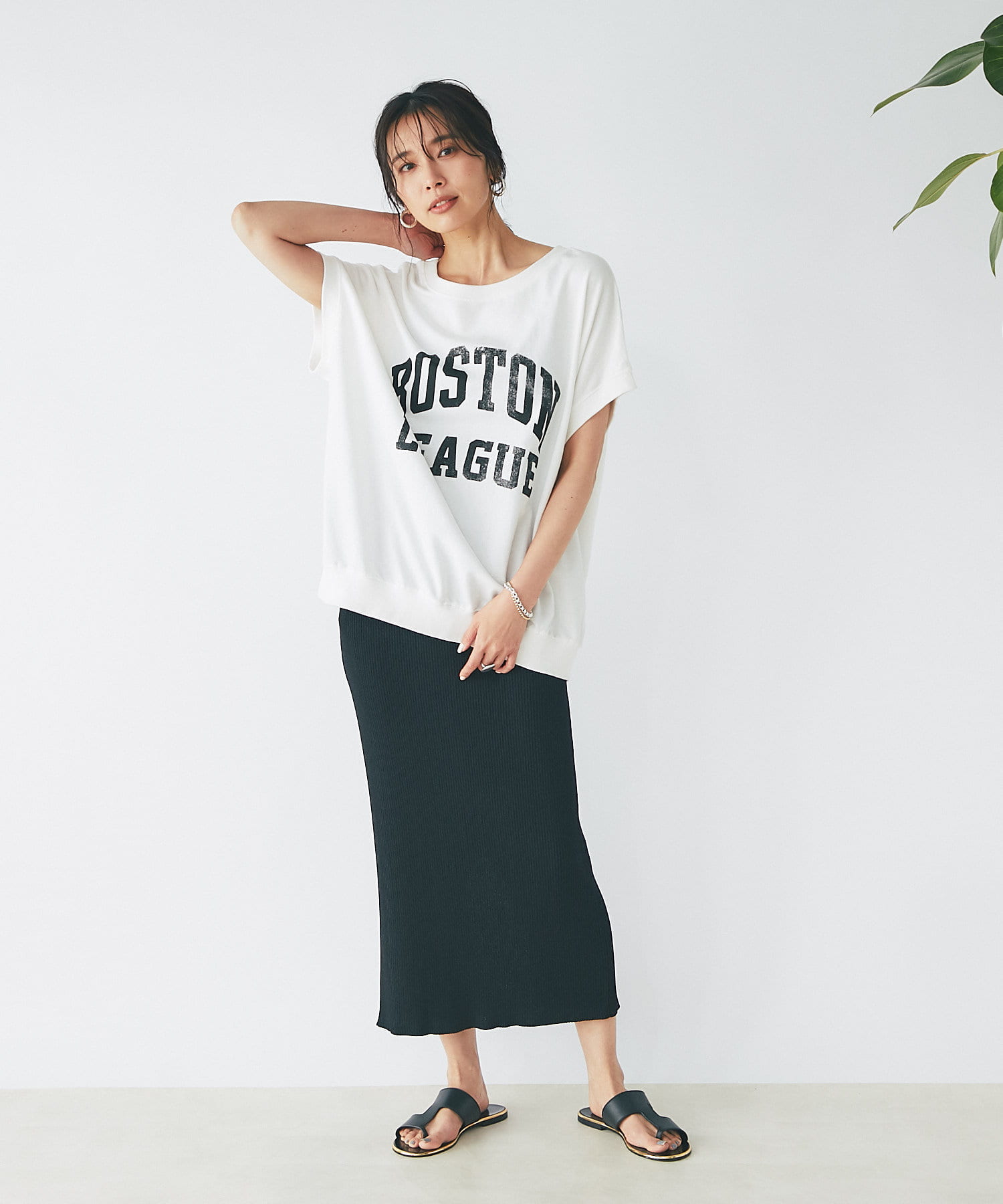 ゆったりとしたシルエットなので、タイトスカートとの相性抜群◎