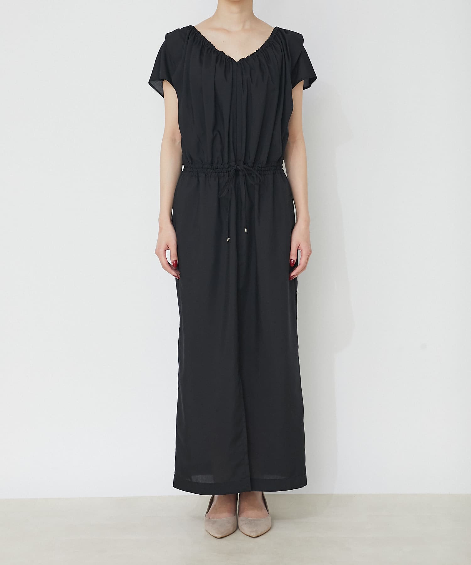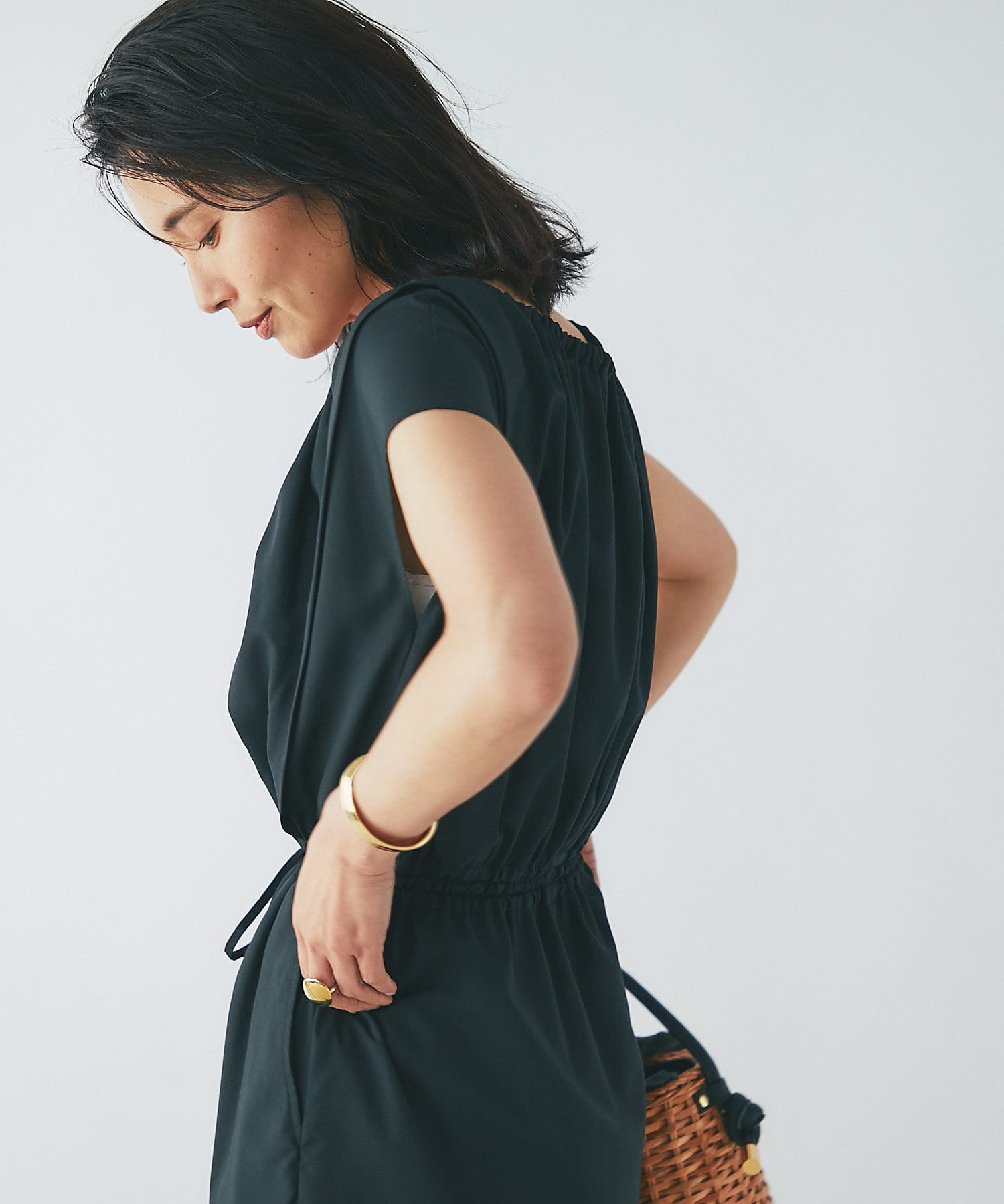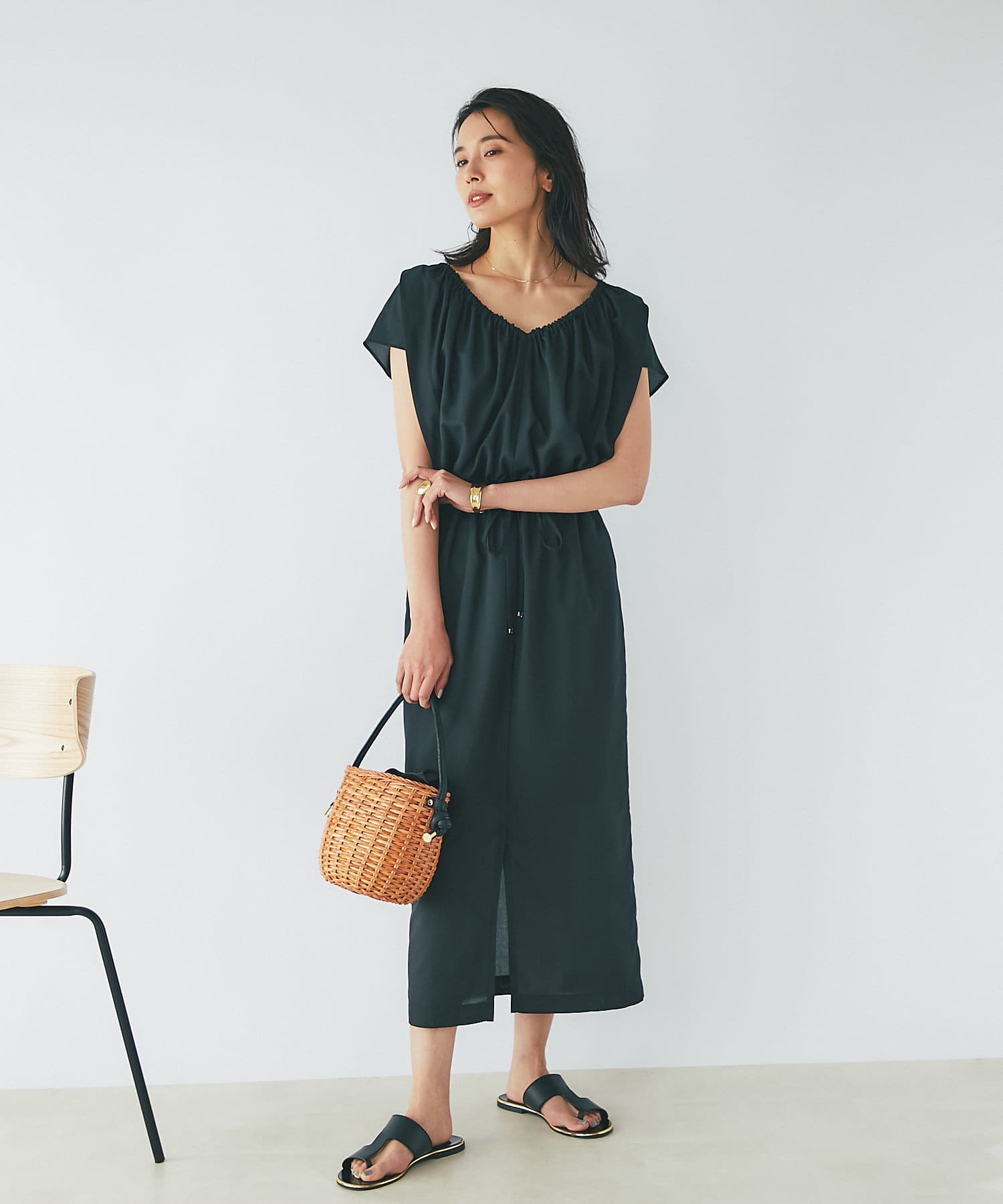 【一枚で様になる】スパンローンVネックドロストワンピース