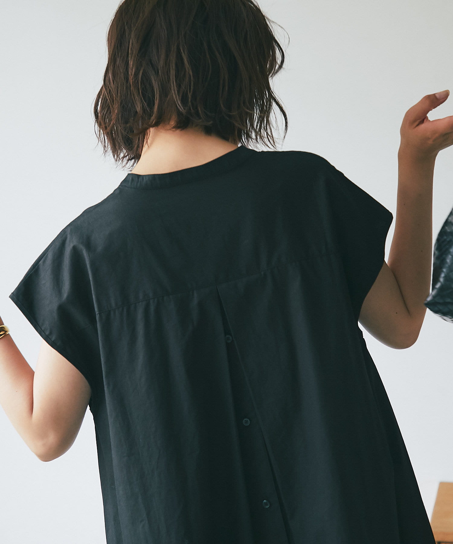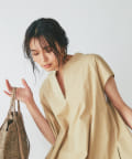 身体のラインを拾わないゆったりとしたシルエットながら、女性らしいニュアンスを感じられる一枚です。