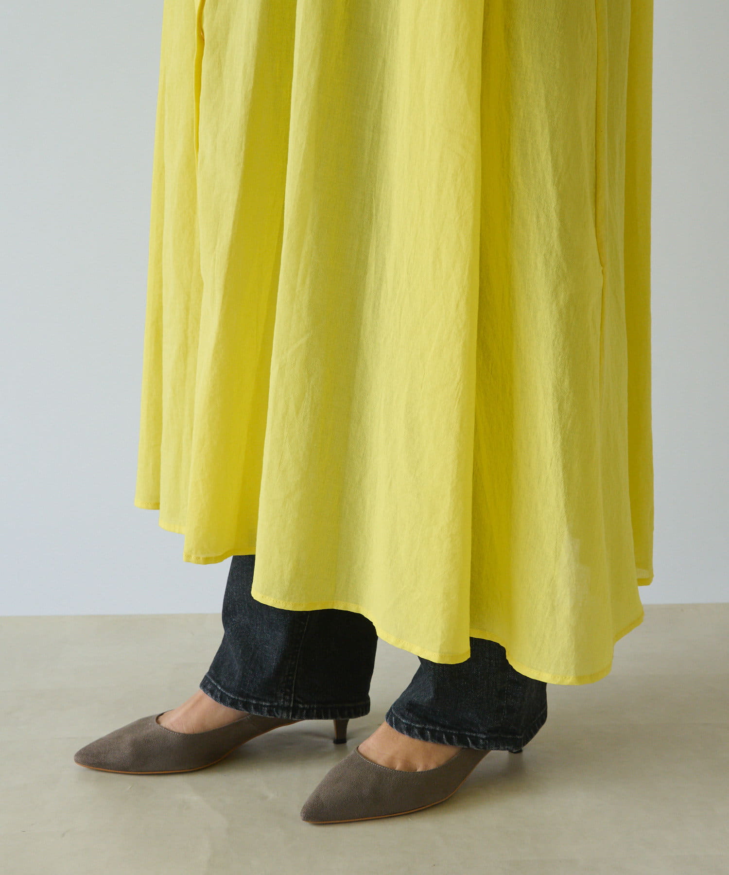 デニムなどのパンツとのレイヤードスタイルもおすすめ!