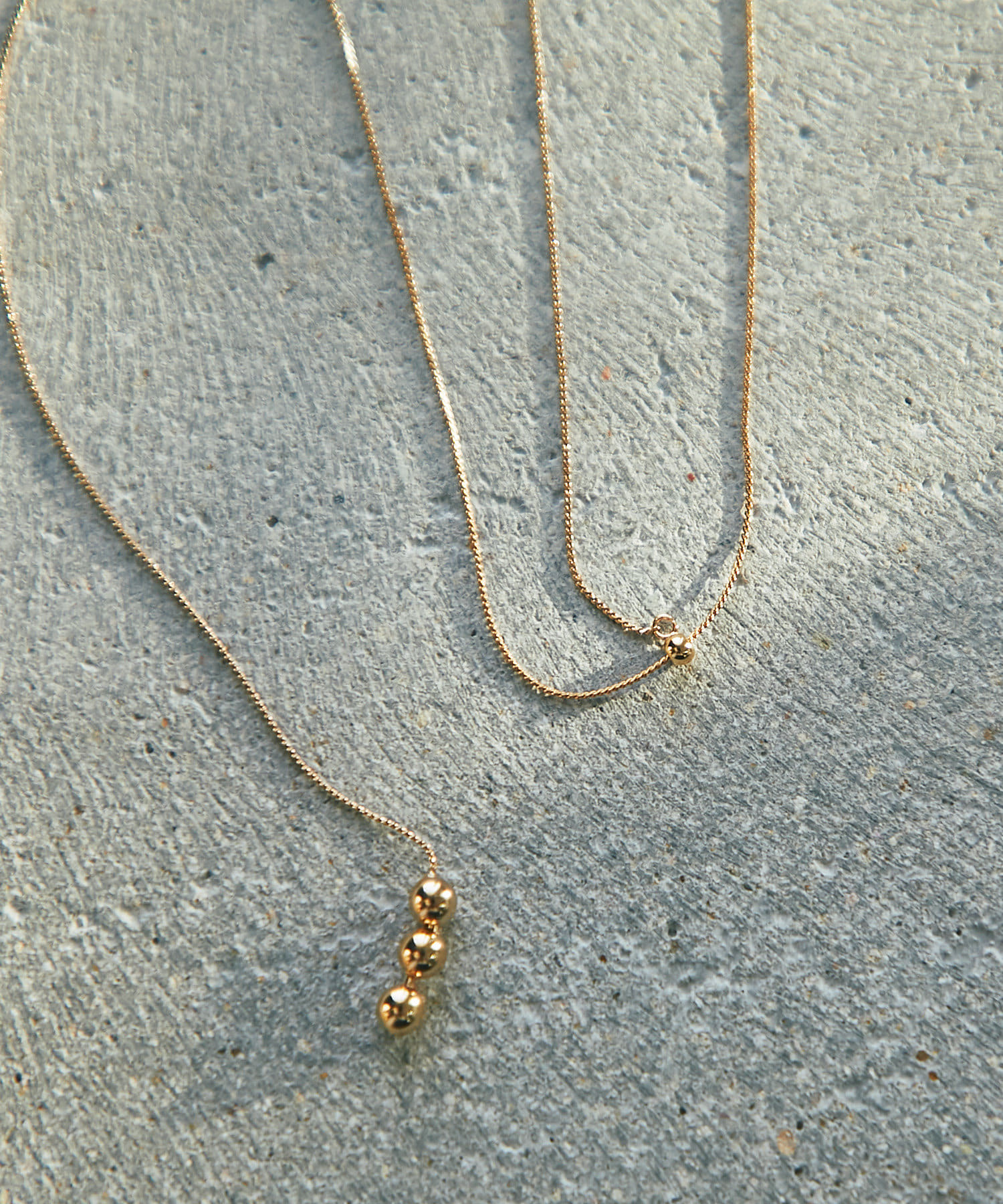華奢なシルエットとシンプルなデザインで合わせるものを選ばない大人顔のY字ネックレス。柔らかな輝きが高級感をプラス。