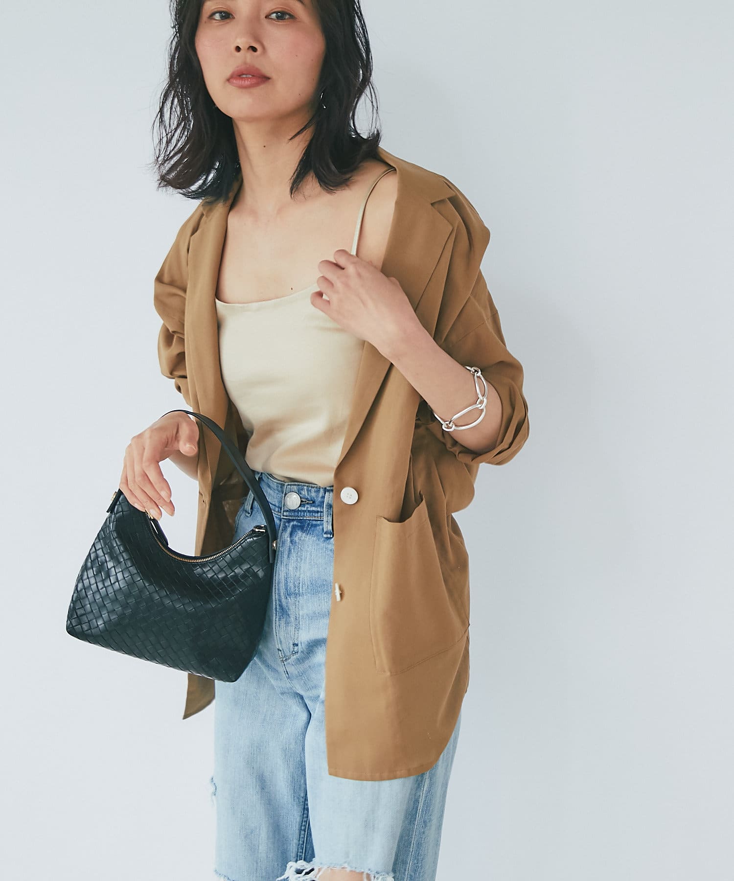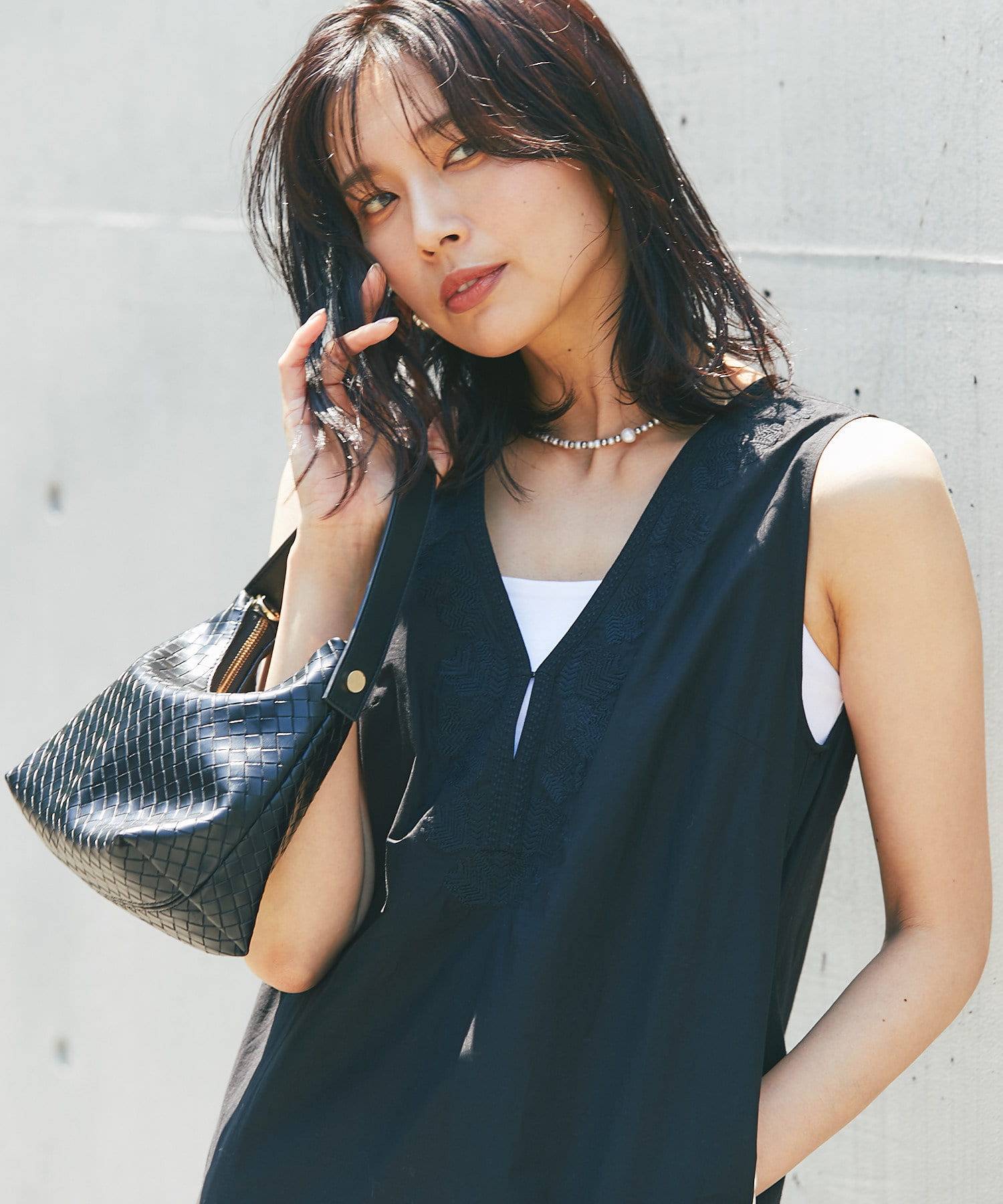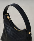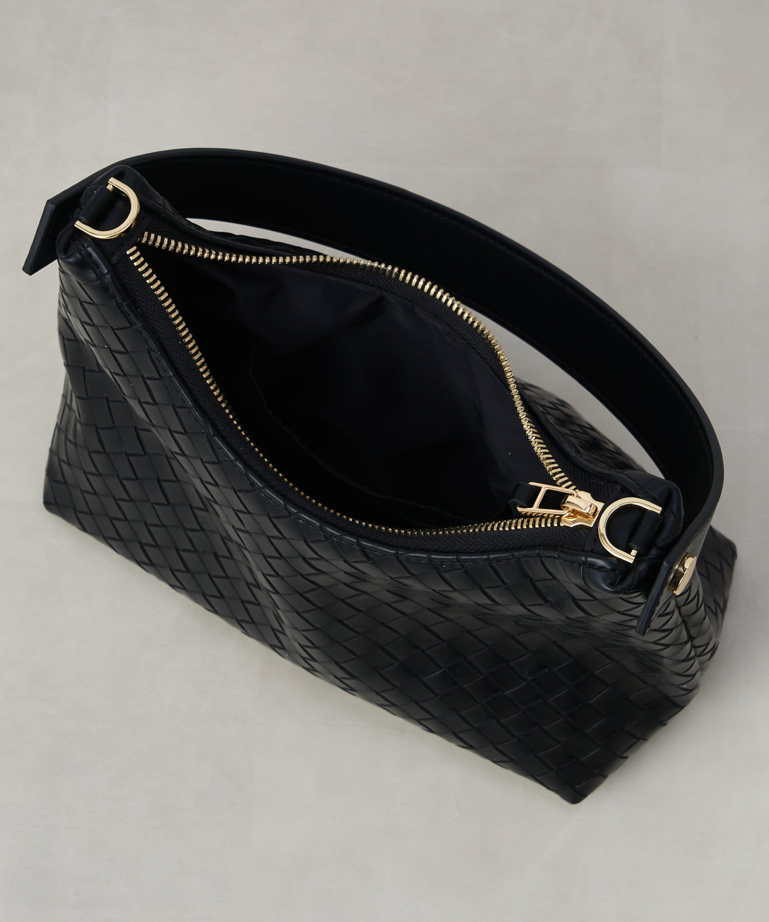 立体感のあるメッシュ柄型押しを施したソフトなフェイクレザーバッグ。