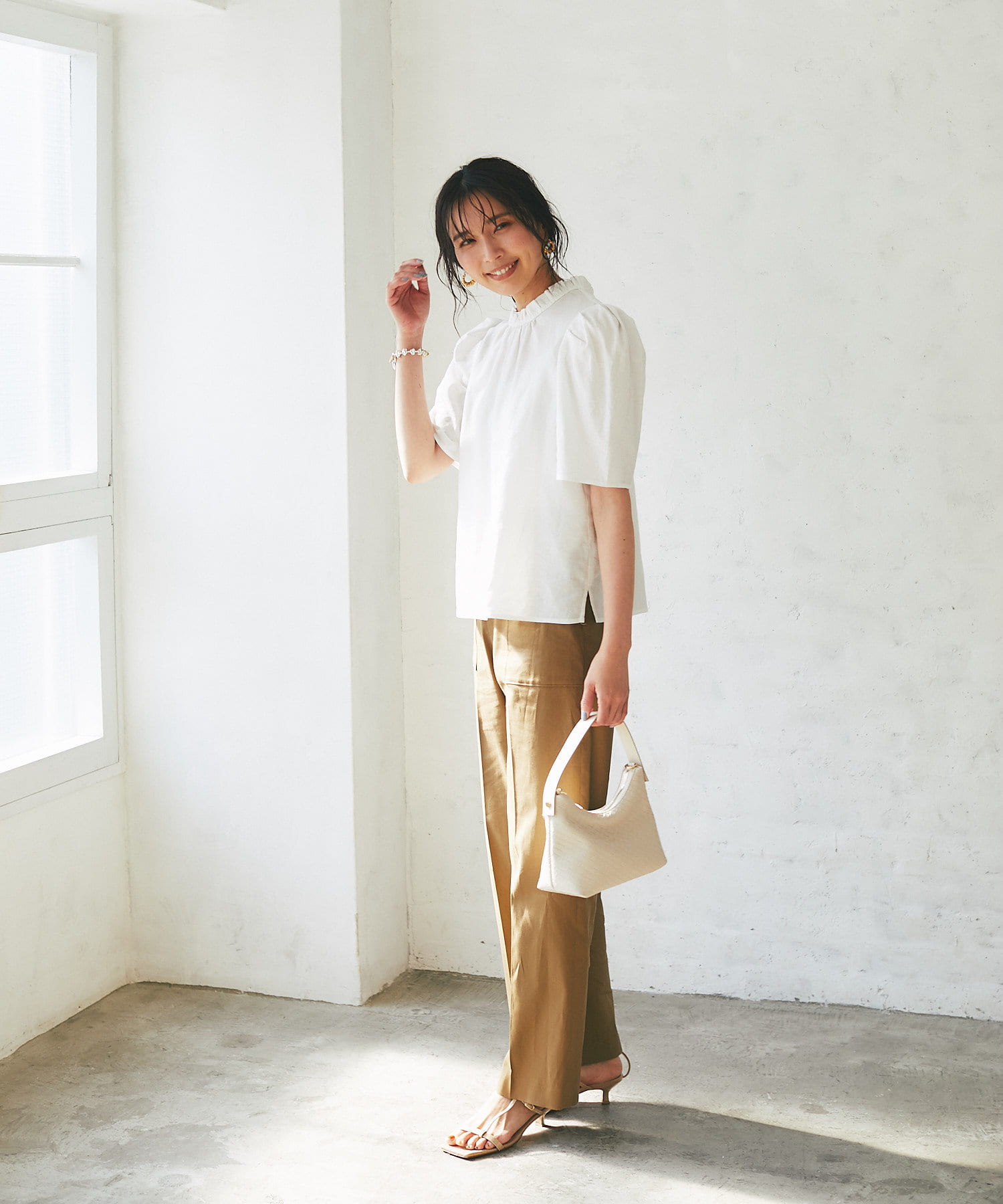 ワンハンドルはショルダーで使用した時に荷物の出し入れしやすいように、前後に稼働する飾りカシメ留め仕様にしてます。