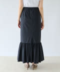 スッキリIライン×ボリュームギャザーでメリハリを効かせたシルエットがポイントのマーメイドスカート。                                                                                                                                                                                                              センターバックには膝位置までスリットを施し足さばきも良く、揺れるフリルが楽し気なムードを演出してくれます。                                                                          撥水加工もついているので急な天候の変化にも対応可能で防汚性も◎。                                                                                  さらに手洗いも可能と、デザインにも機能にも優れた優秀スカートです。