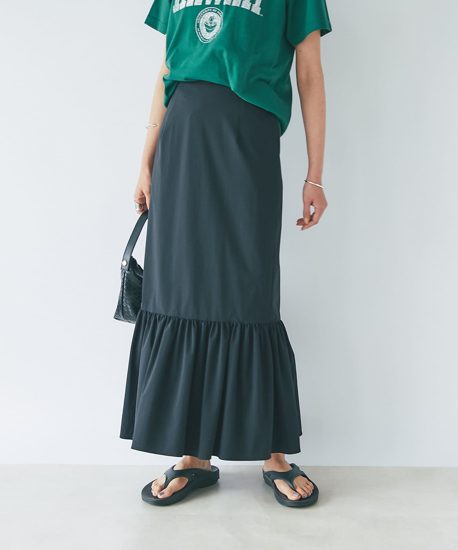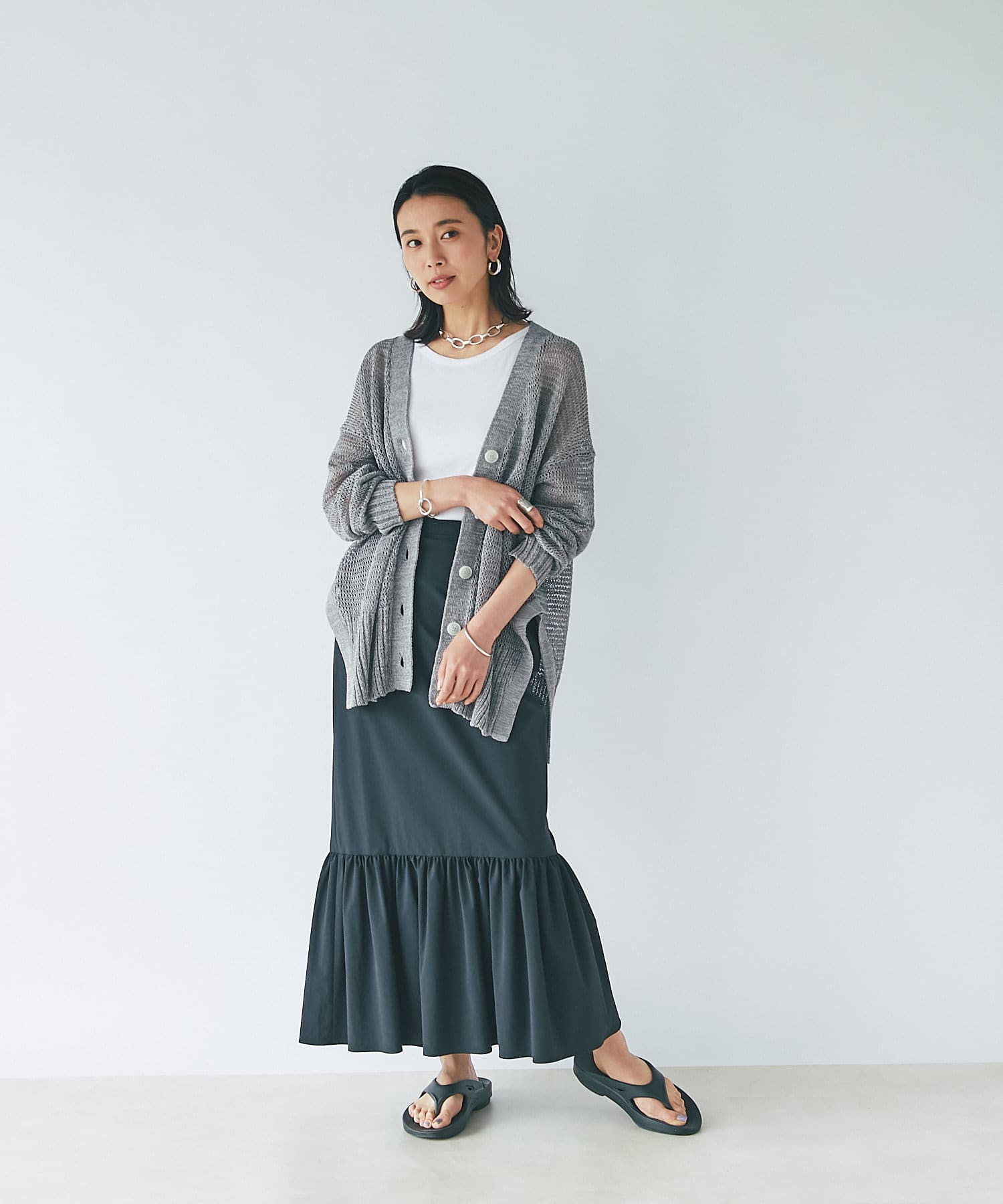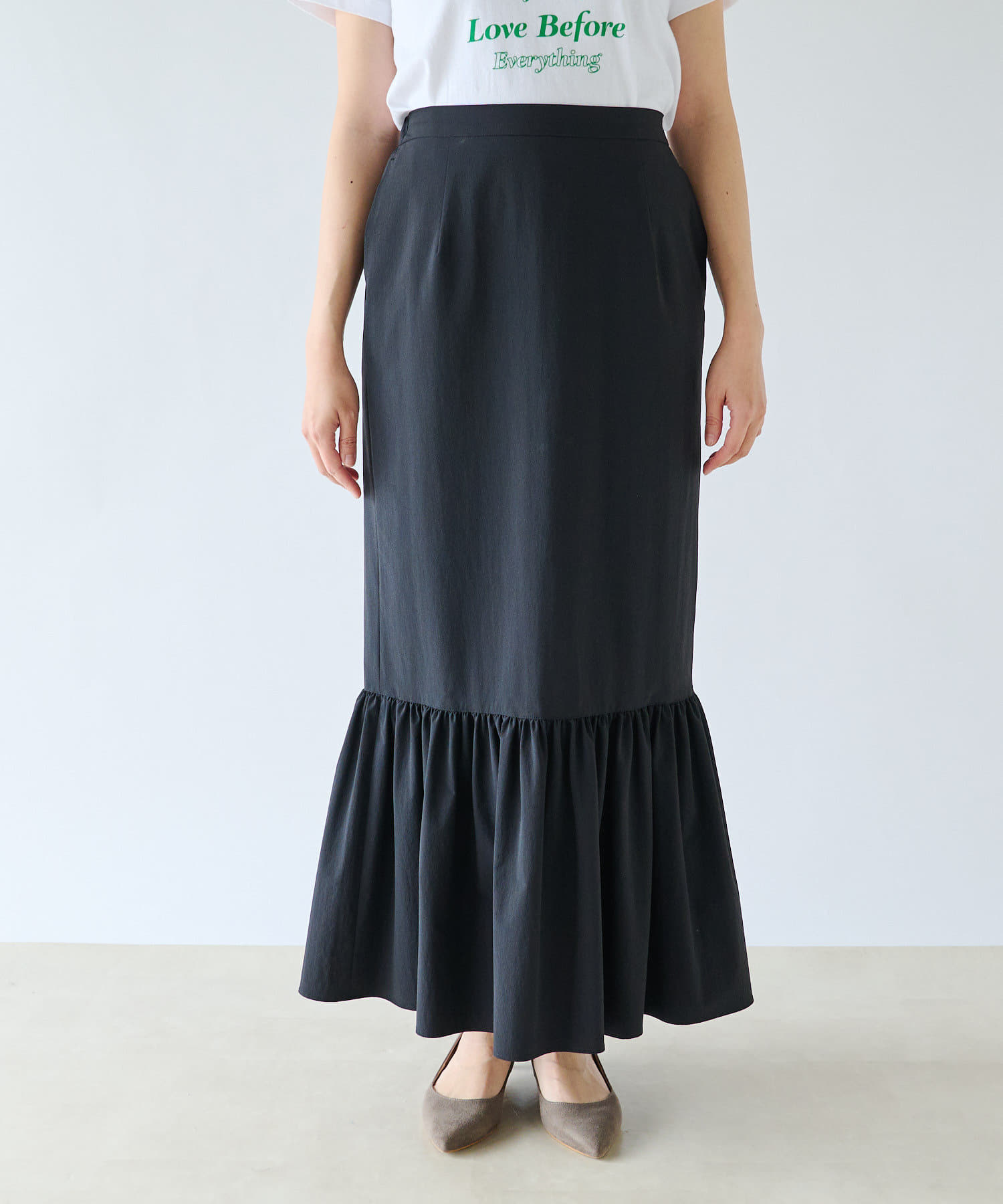 • ロング丈で女性らしいマーメイドシルエット。