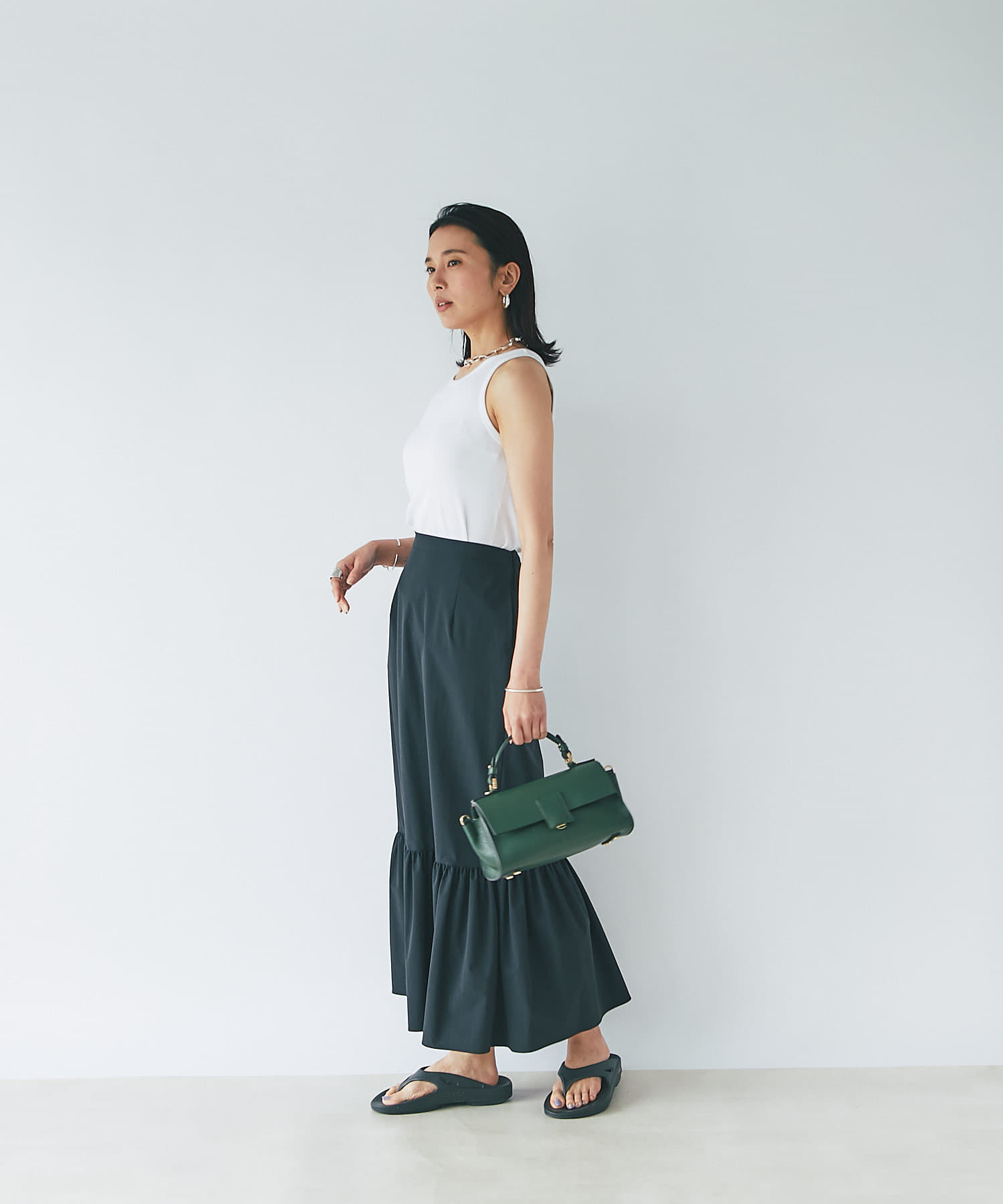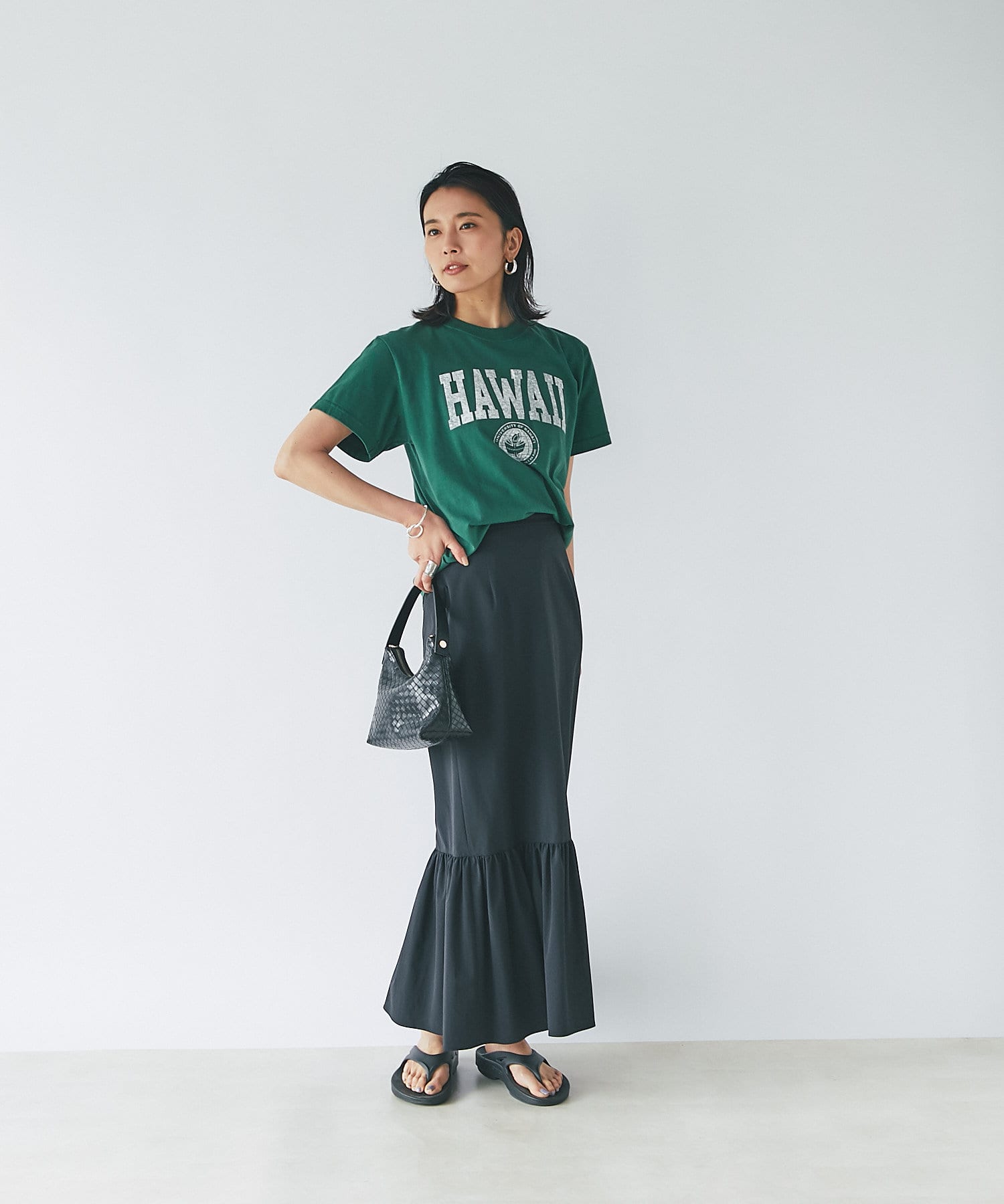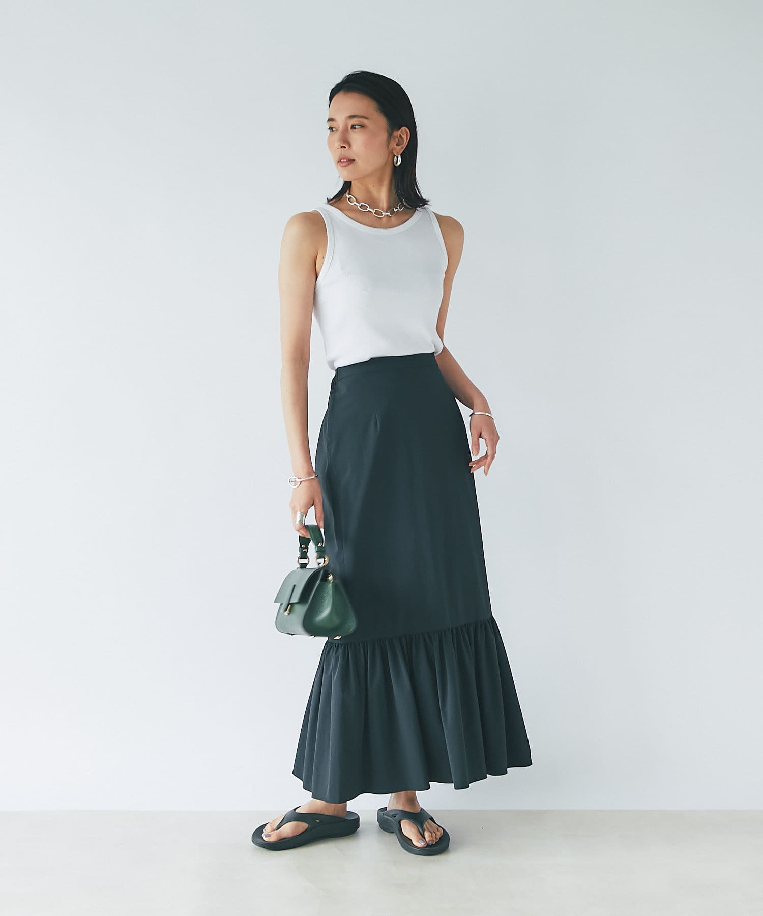 • ロング丈で女性らしいマーメイドシルエット。