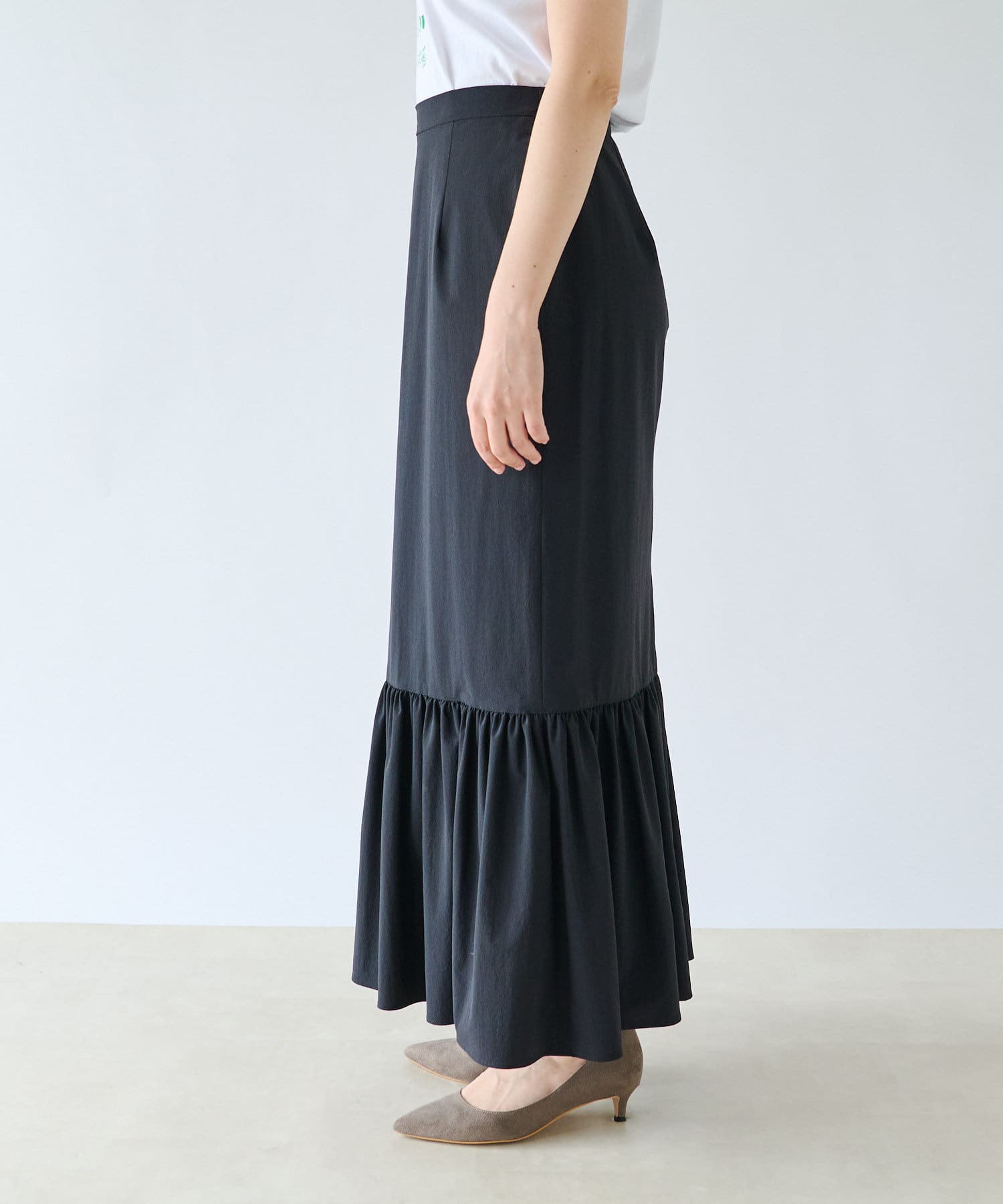 【女性らしいメリハリシルエット】ライトクロスギャザーマーメイドスカート