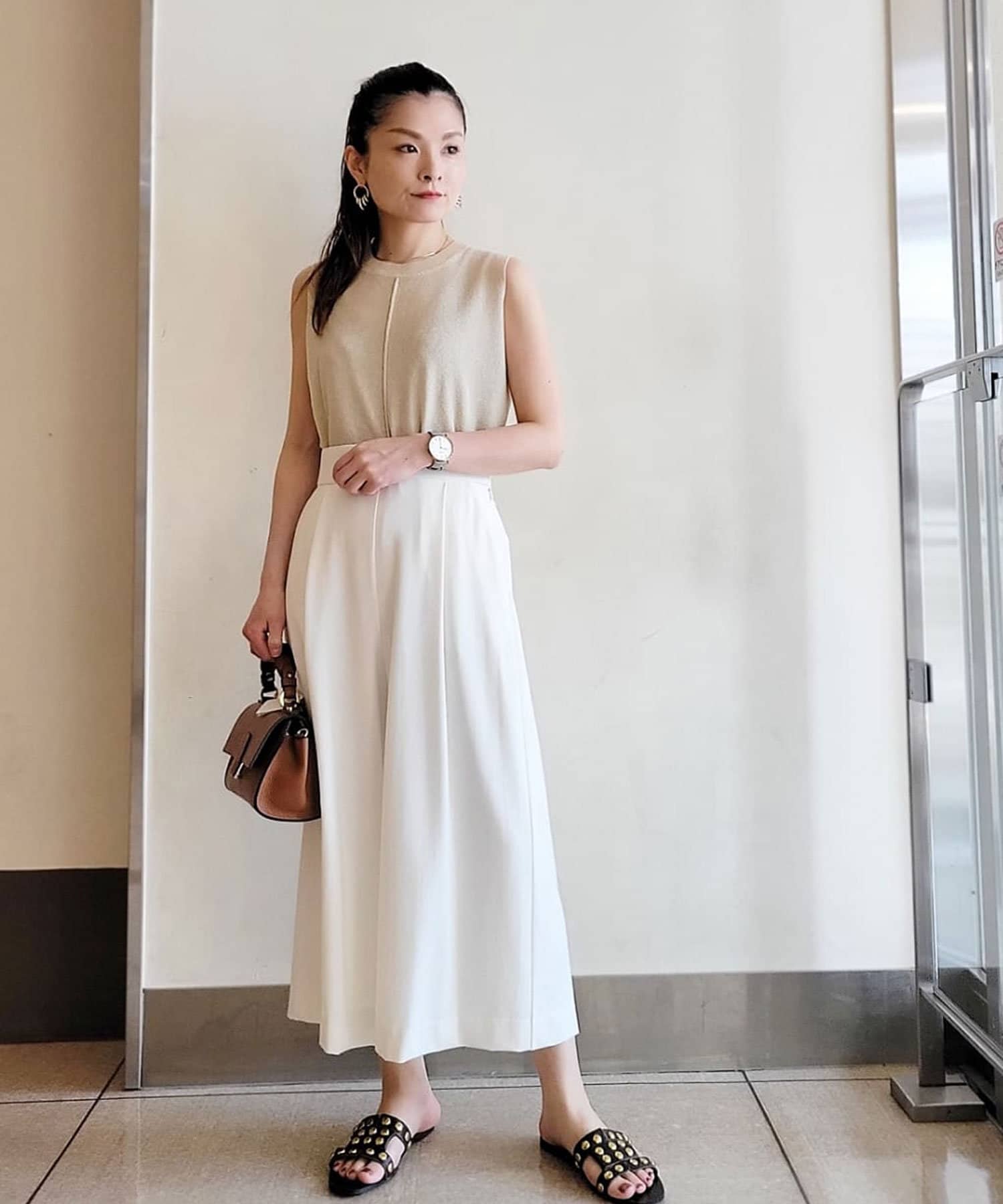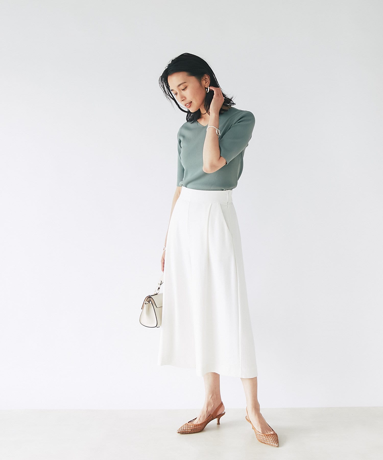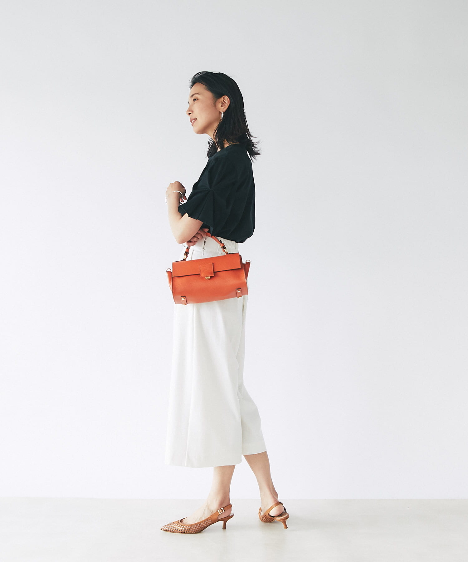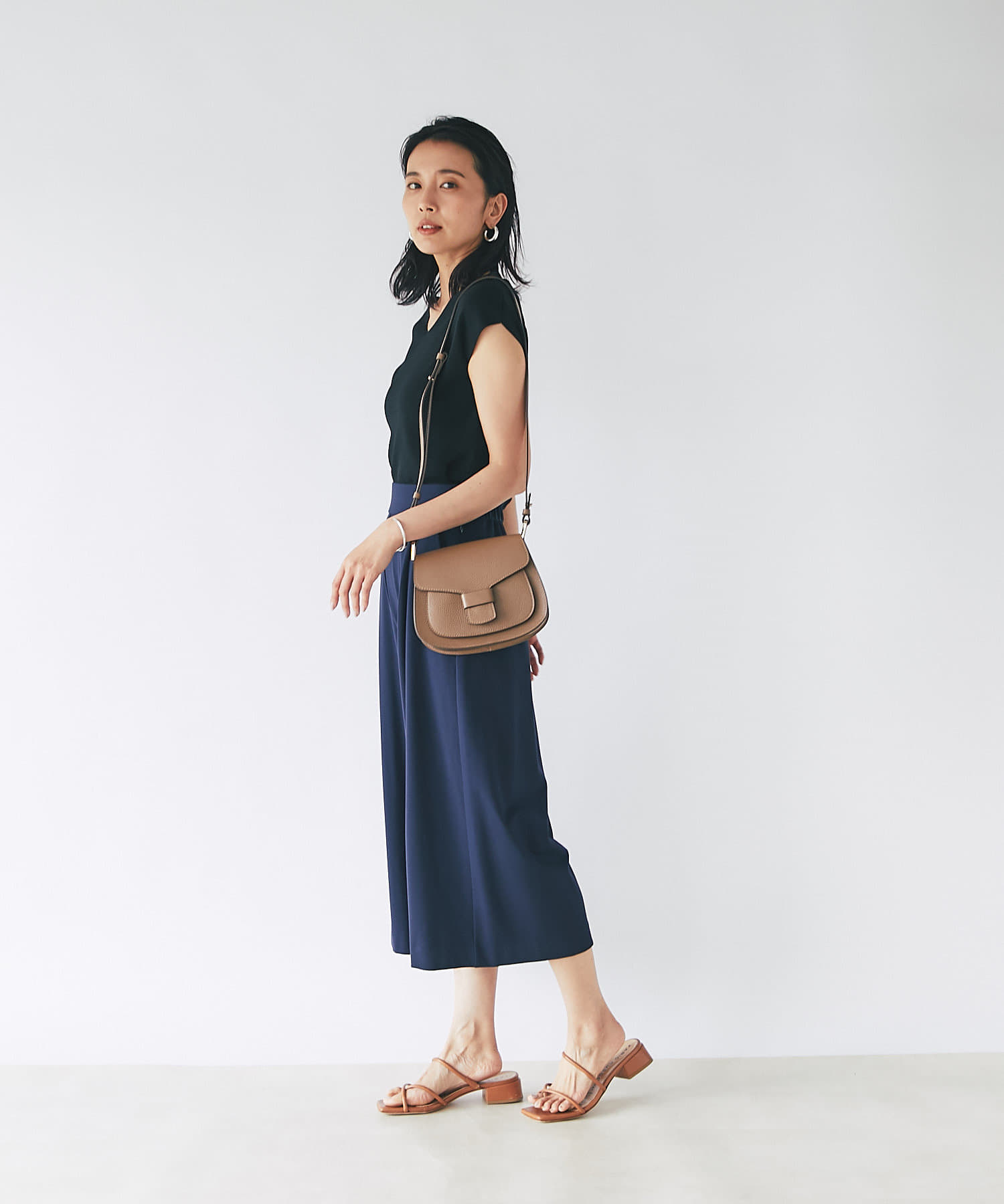 足元はヒールのあるシューズでエレガントに。オフィスカジュアルスタイルにも相性◎