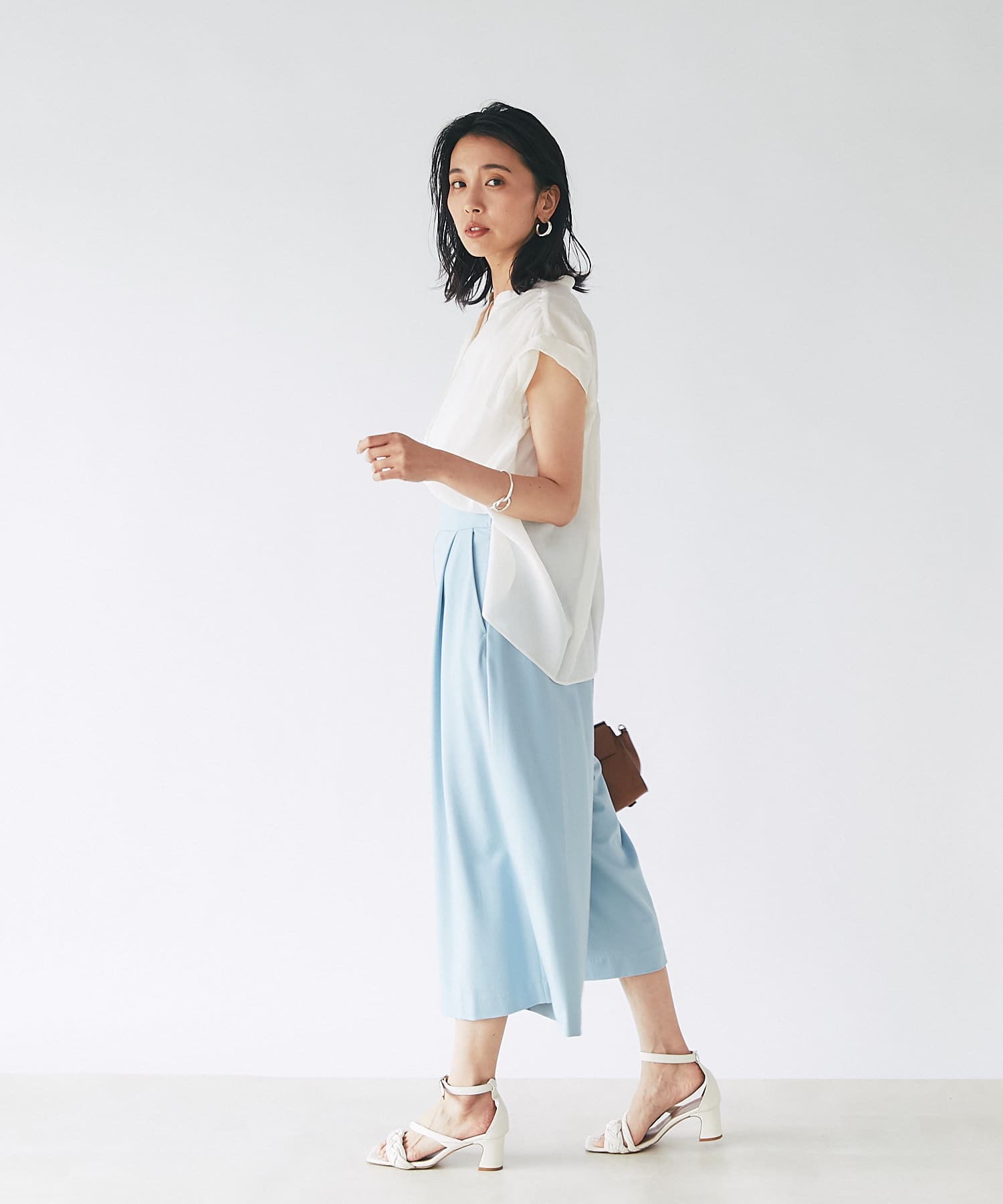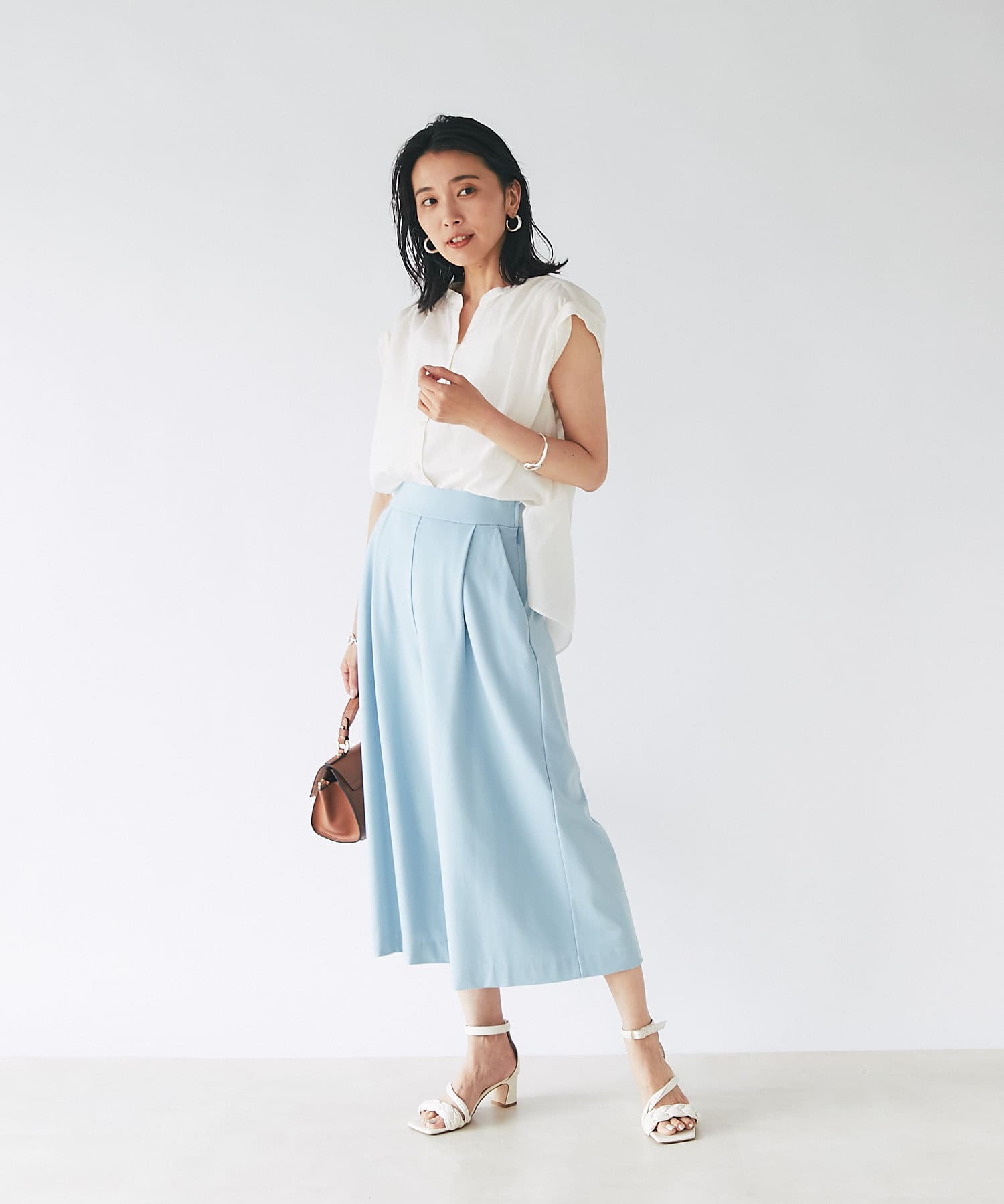 キレイめコーデには品のあるブラウスで合わせるのがオススメ!