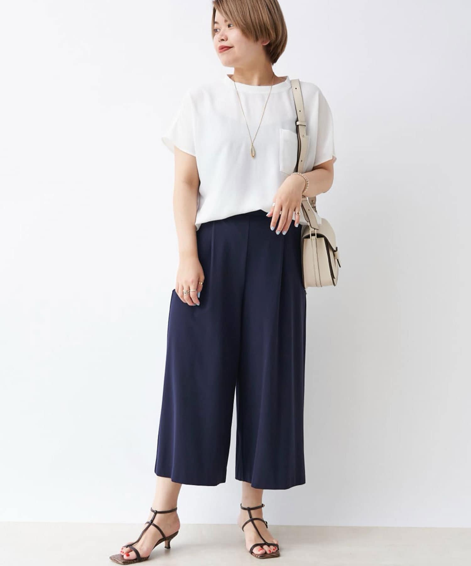 【《低身長さんおすすめ》ひんやりタッチで涼しい】ドライポンチミディパンツ