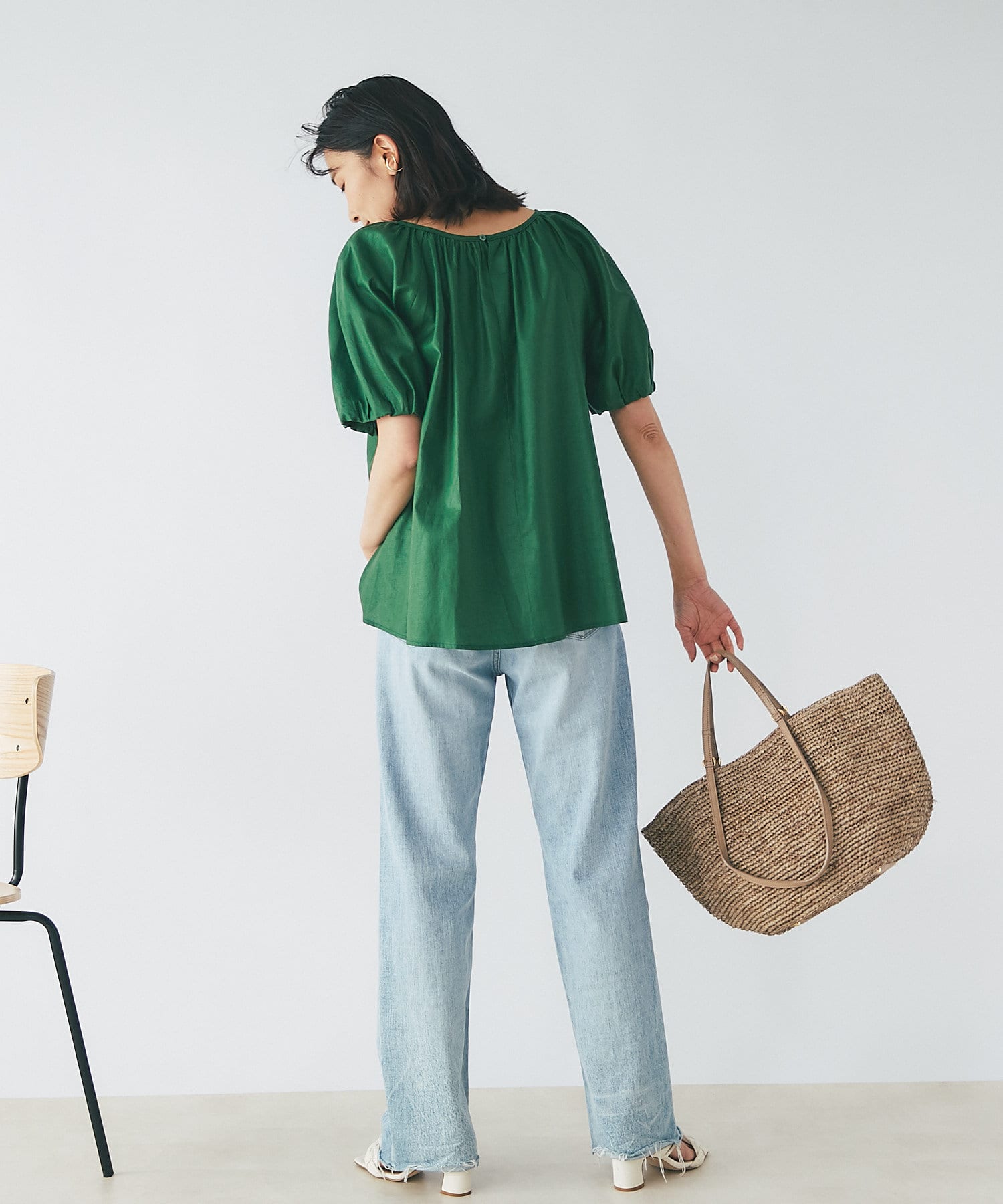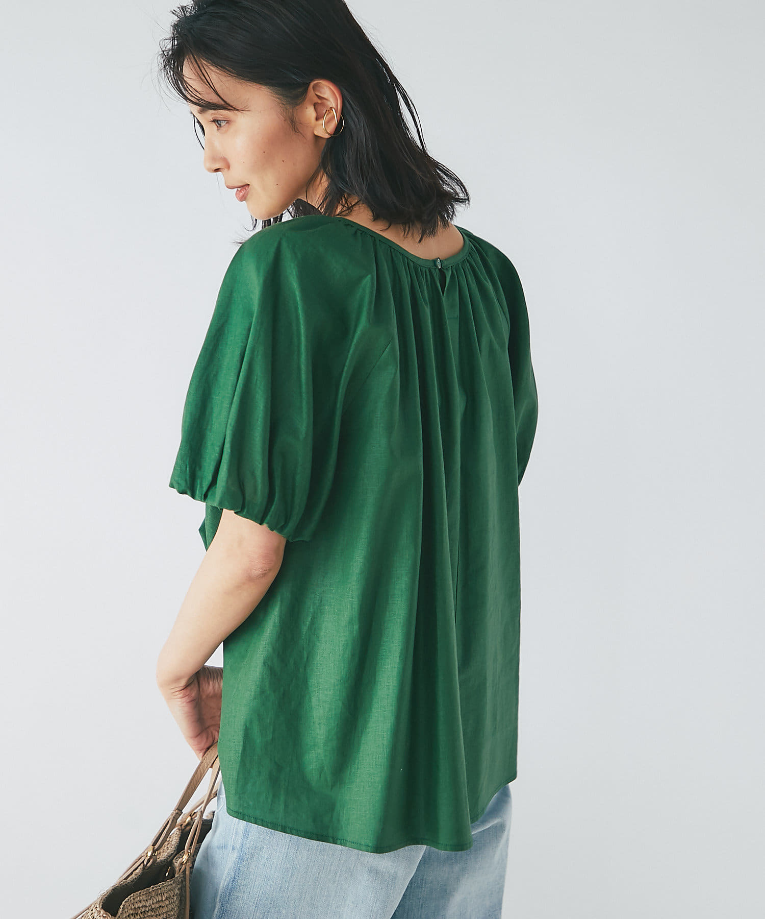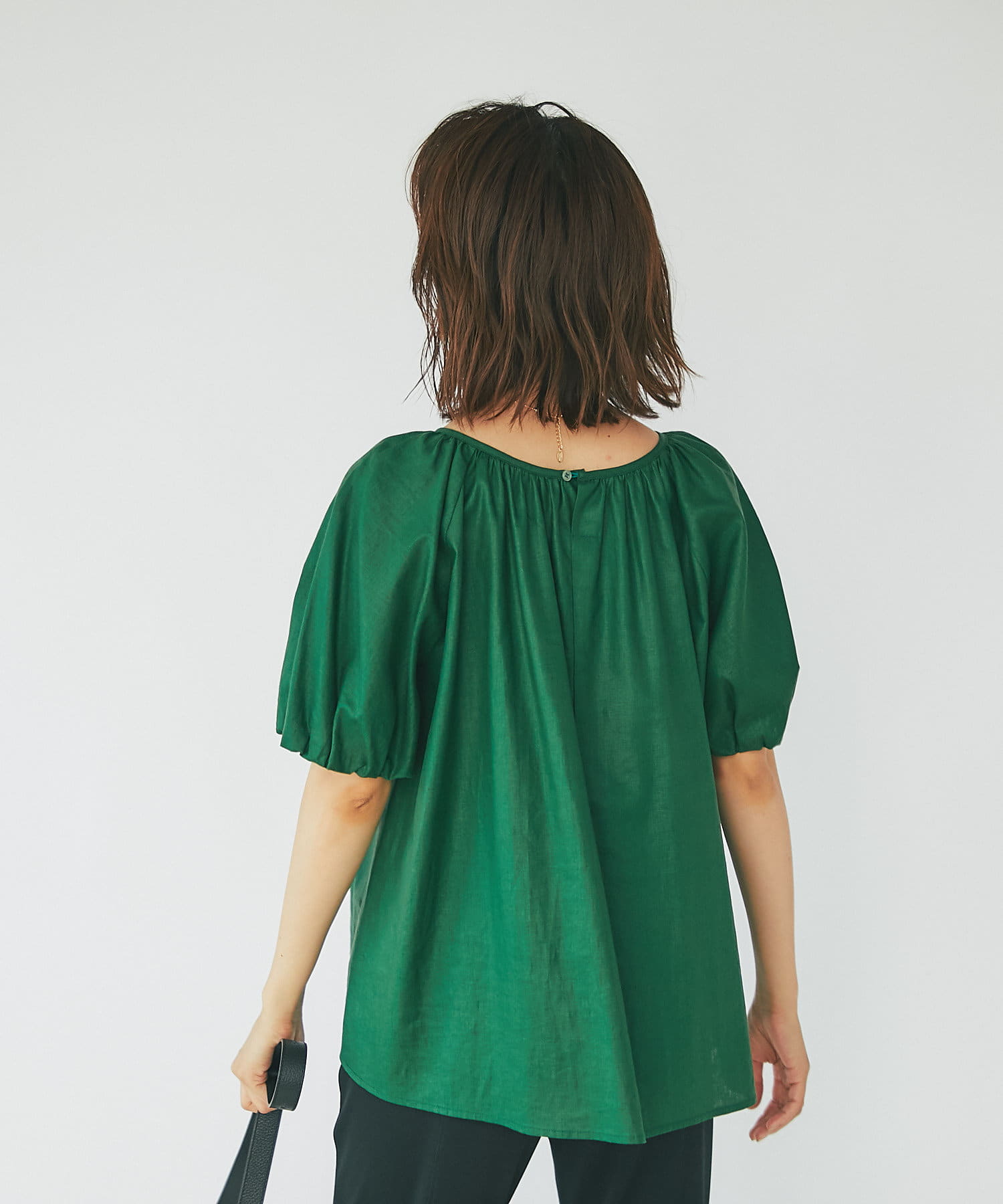 【二の腕カバーが叶う】パフスリーブギャザーブラウス