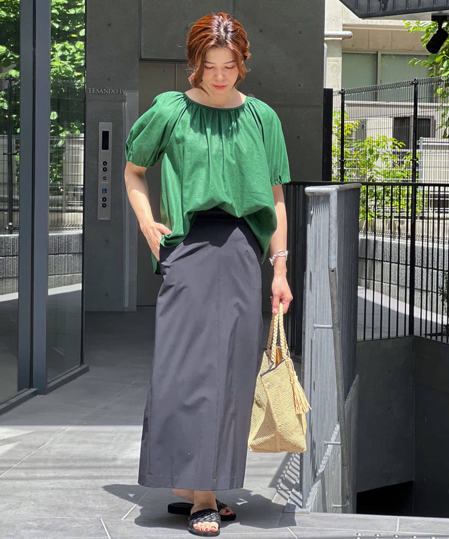 ハリ感のある風合いで甘すぎないので、どんなコーデにも合わせやすいです。