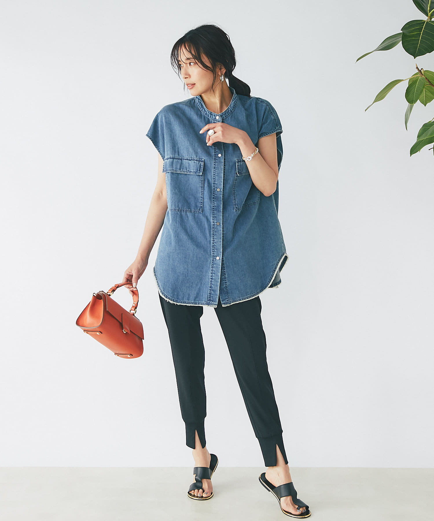 デニムパンツとのセットアップ風スタイルが春に引き続きおすすめのコーデ。