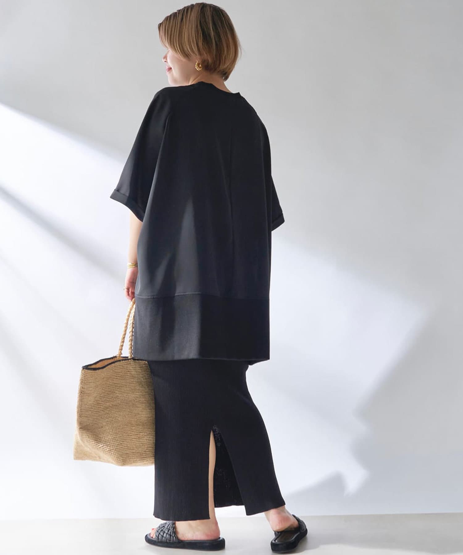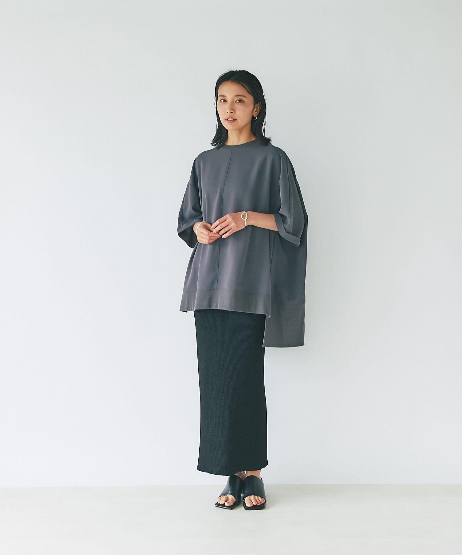 タイトスカートで合わせるとバランスよく着ていただけます。