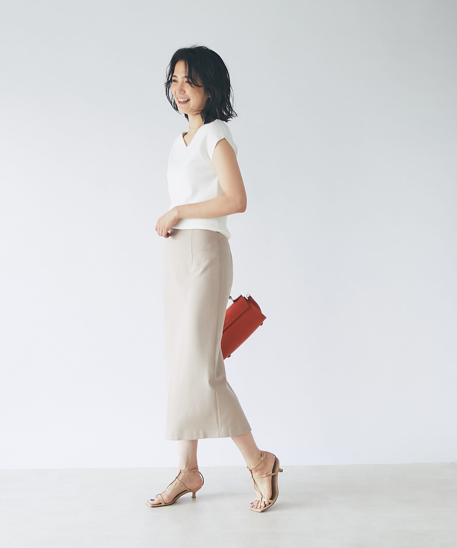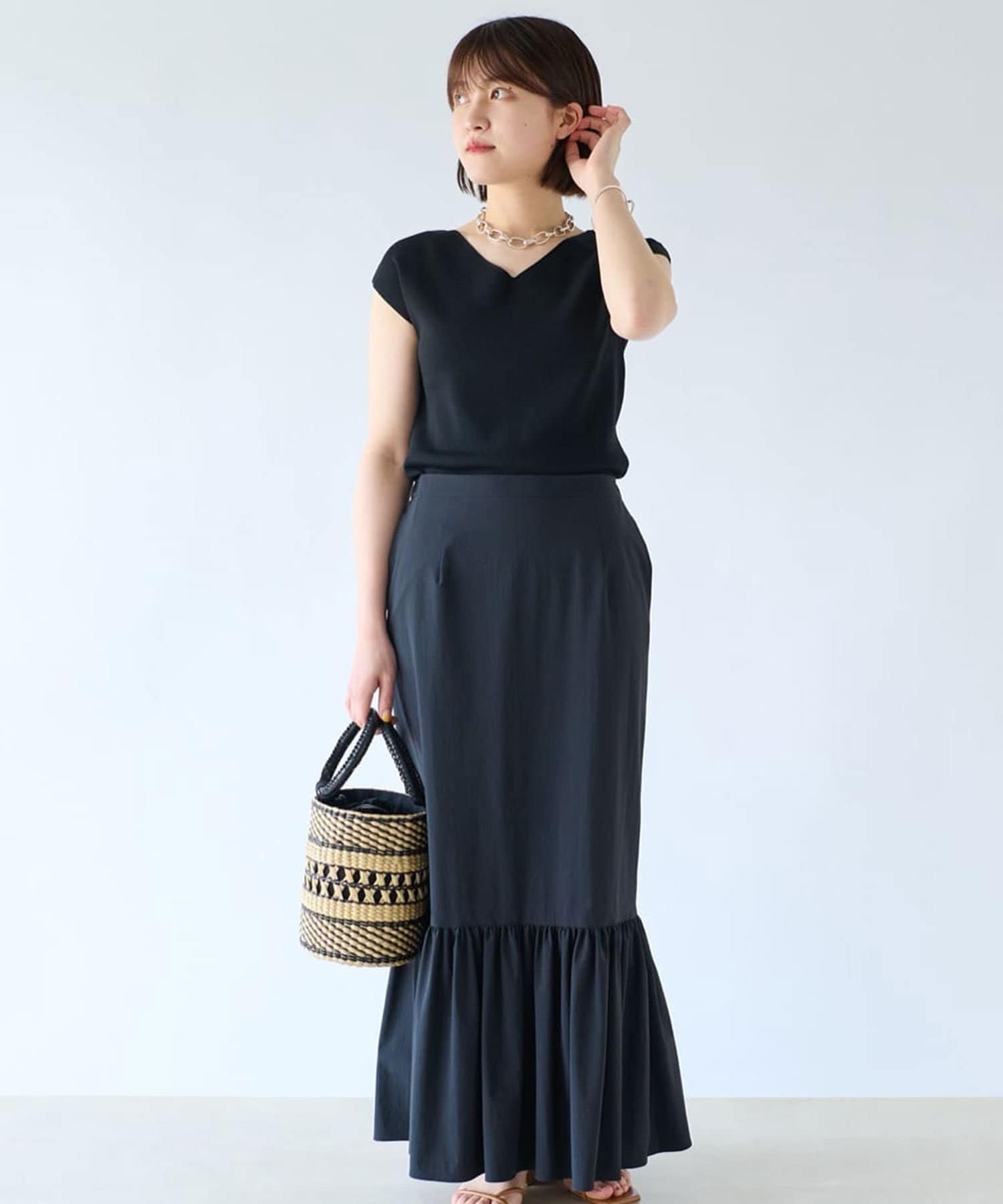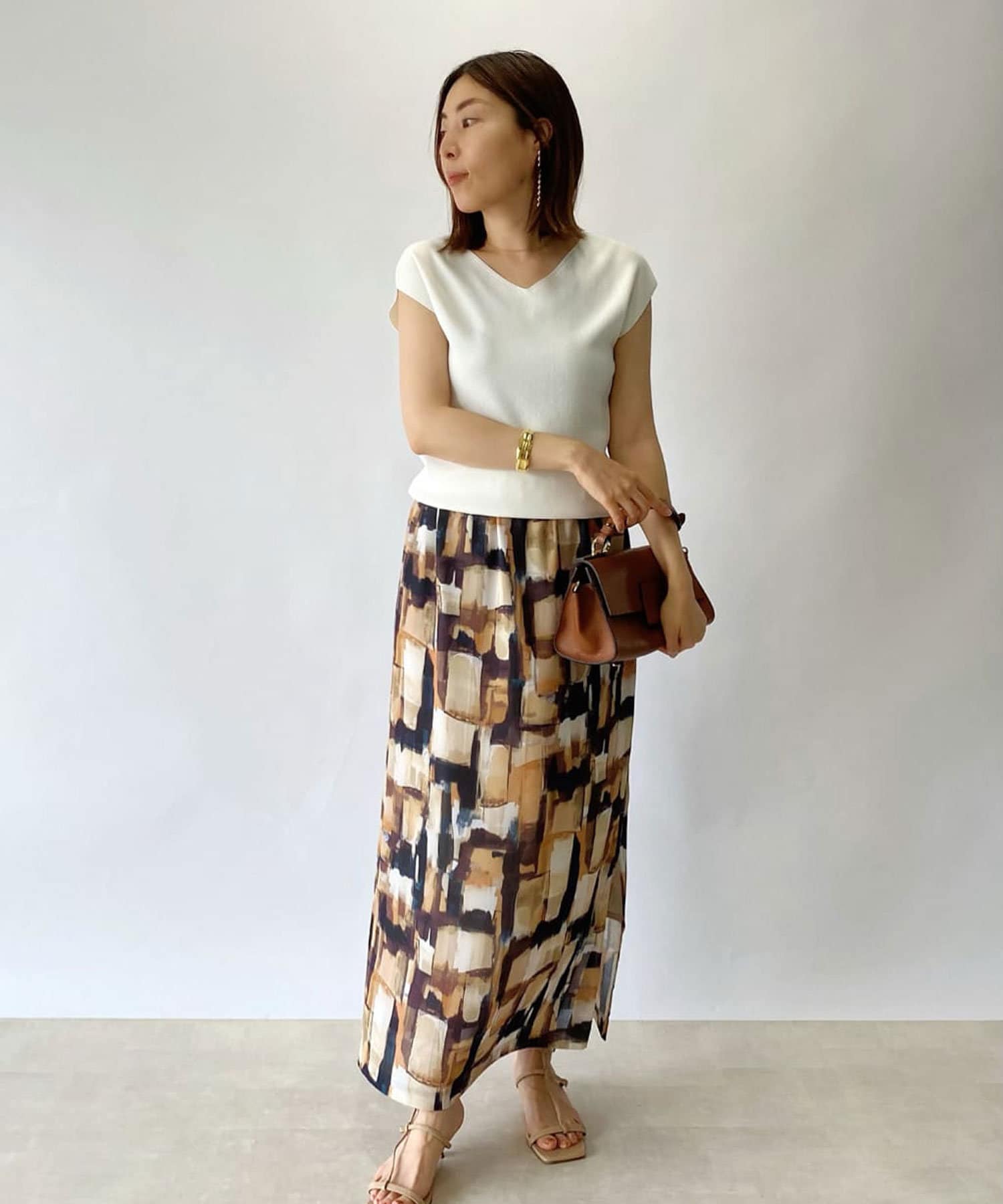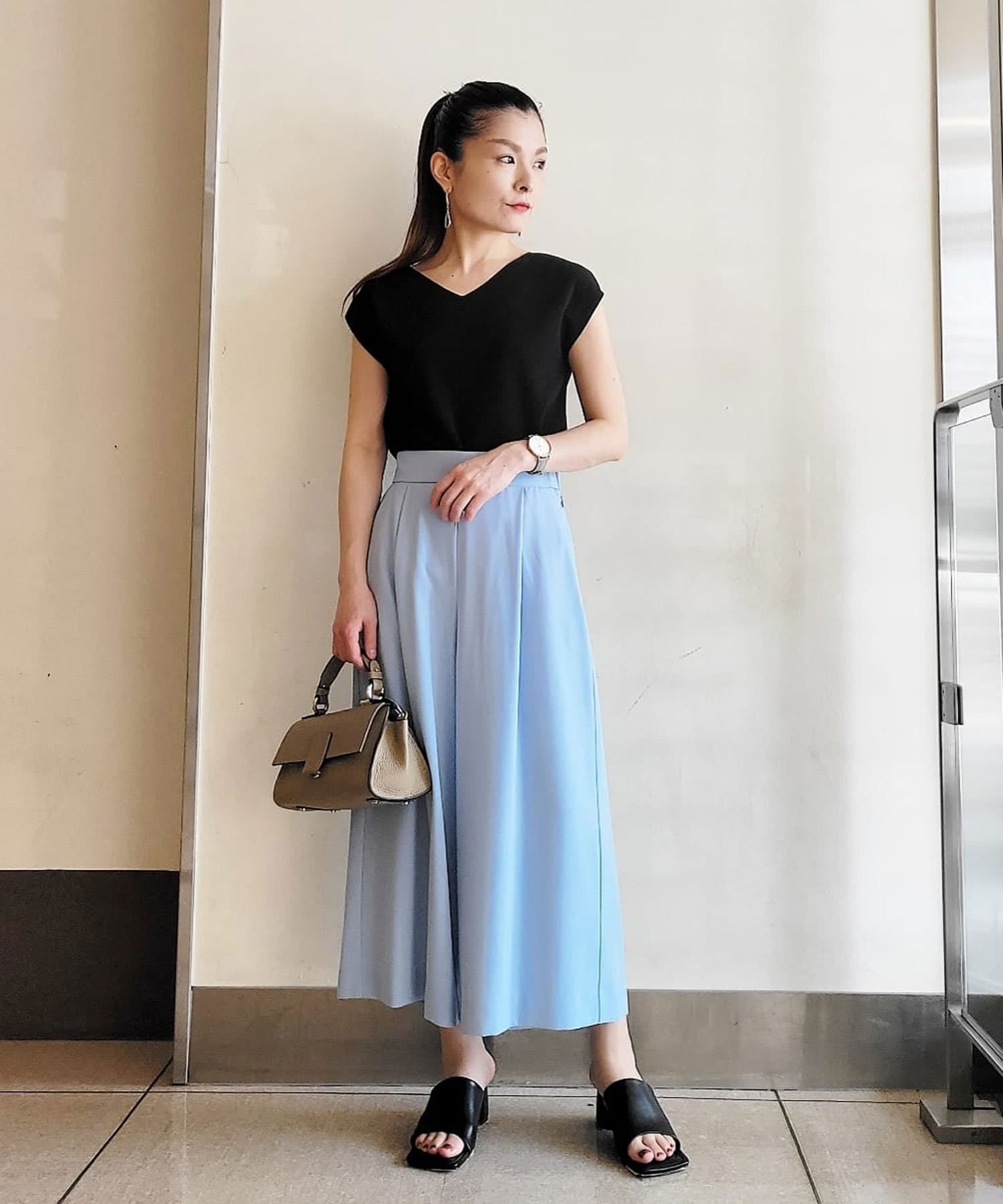 シンプルなデザインのニットなのでお仕事、お出かけ両方に使えるオンオフ兼用アイテムです。お出かけには花柄スカートなどの柄アイテムや、デニムやなどのカジュアルなボトムスで合わせても素敵です。様々なテイストのコーディネートに使えるので着回し抜群なニットです。