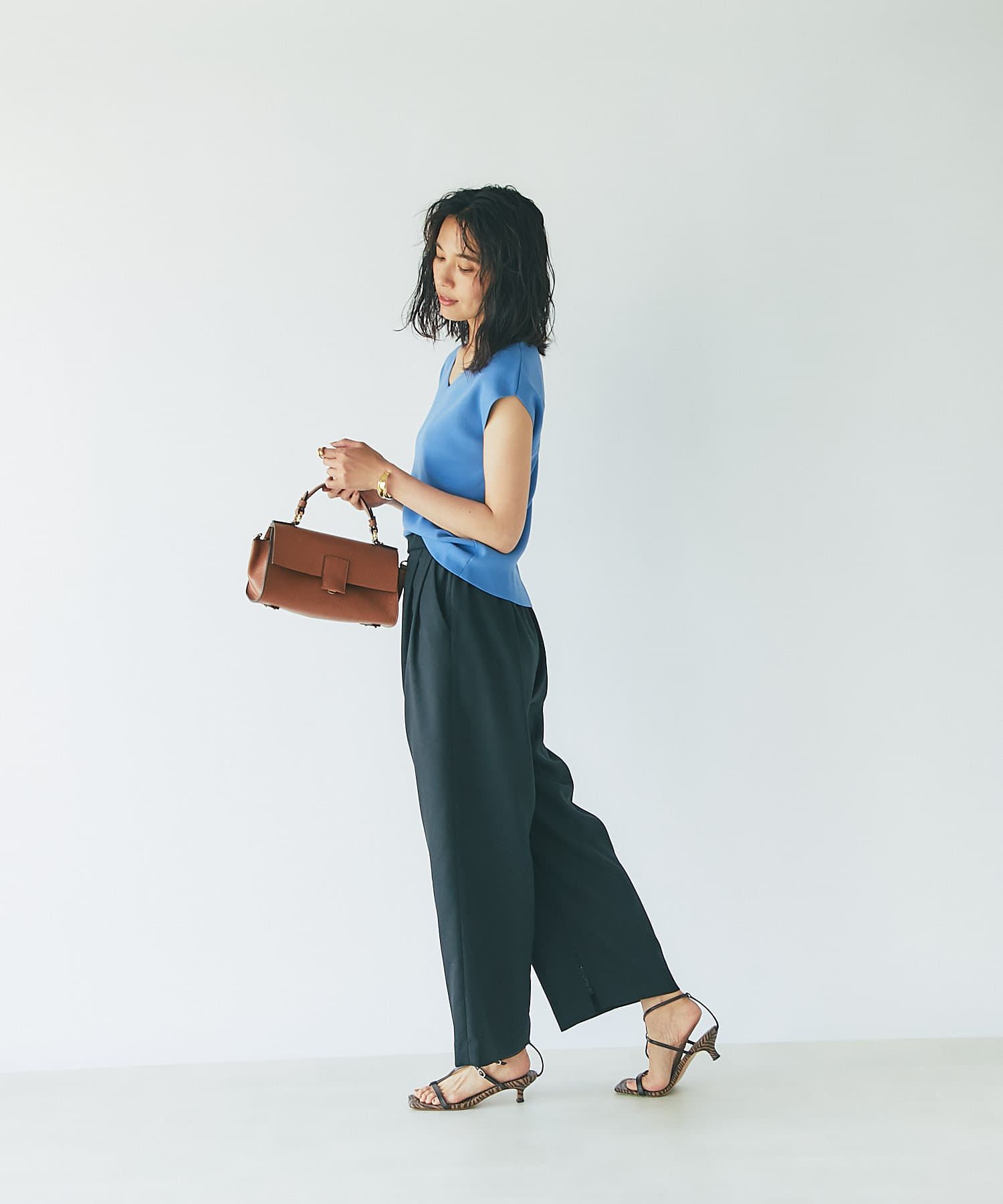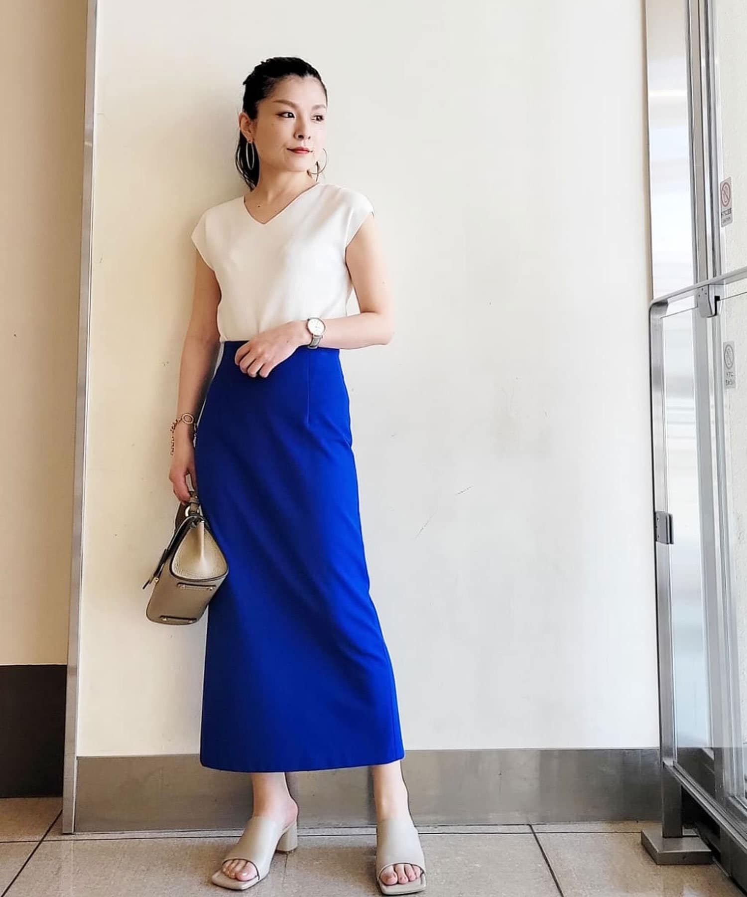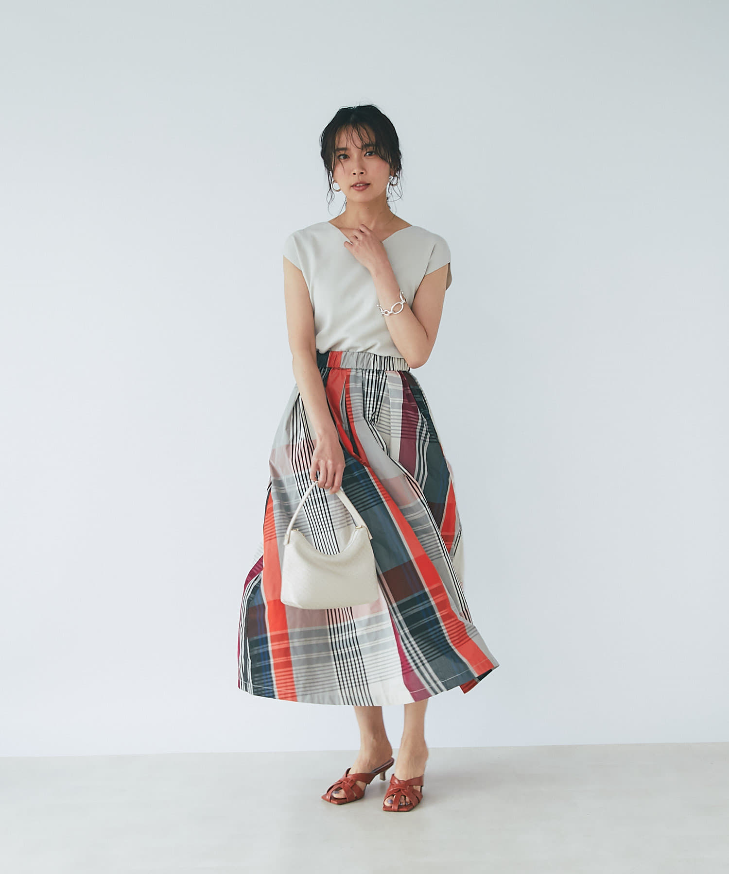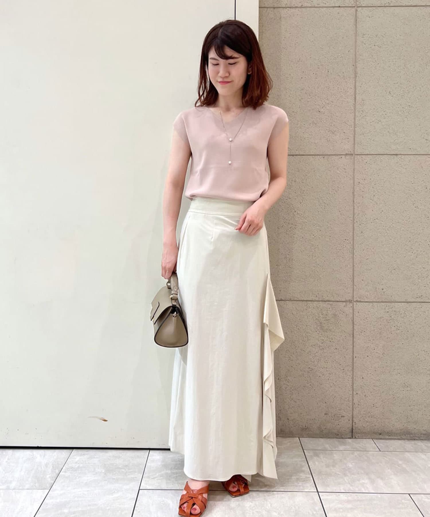 シンプルなデザインのニットなのでお仕事、お出かけ両方に使えるオンオフ兼用アイテムです。お出かけには花柄スカートなどの柄アイテムや、デニムやなどのカジュアルなボトムスで合わせても素敵です。様々なテイストのコーディネートに使えるので着回し抜群なニットです。