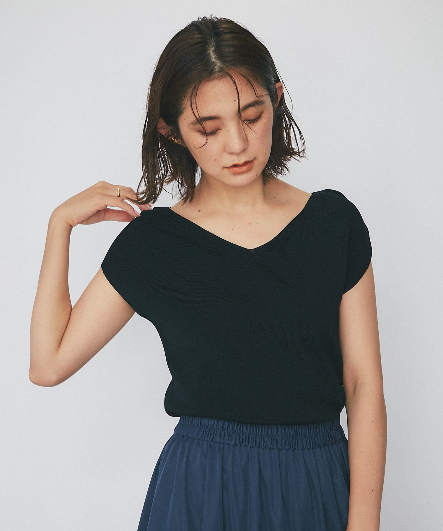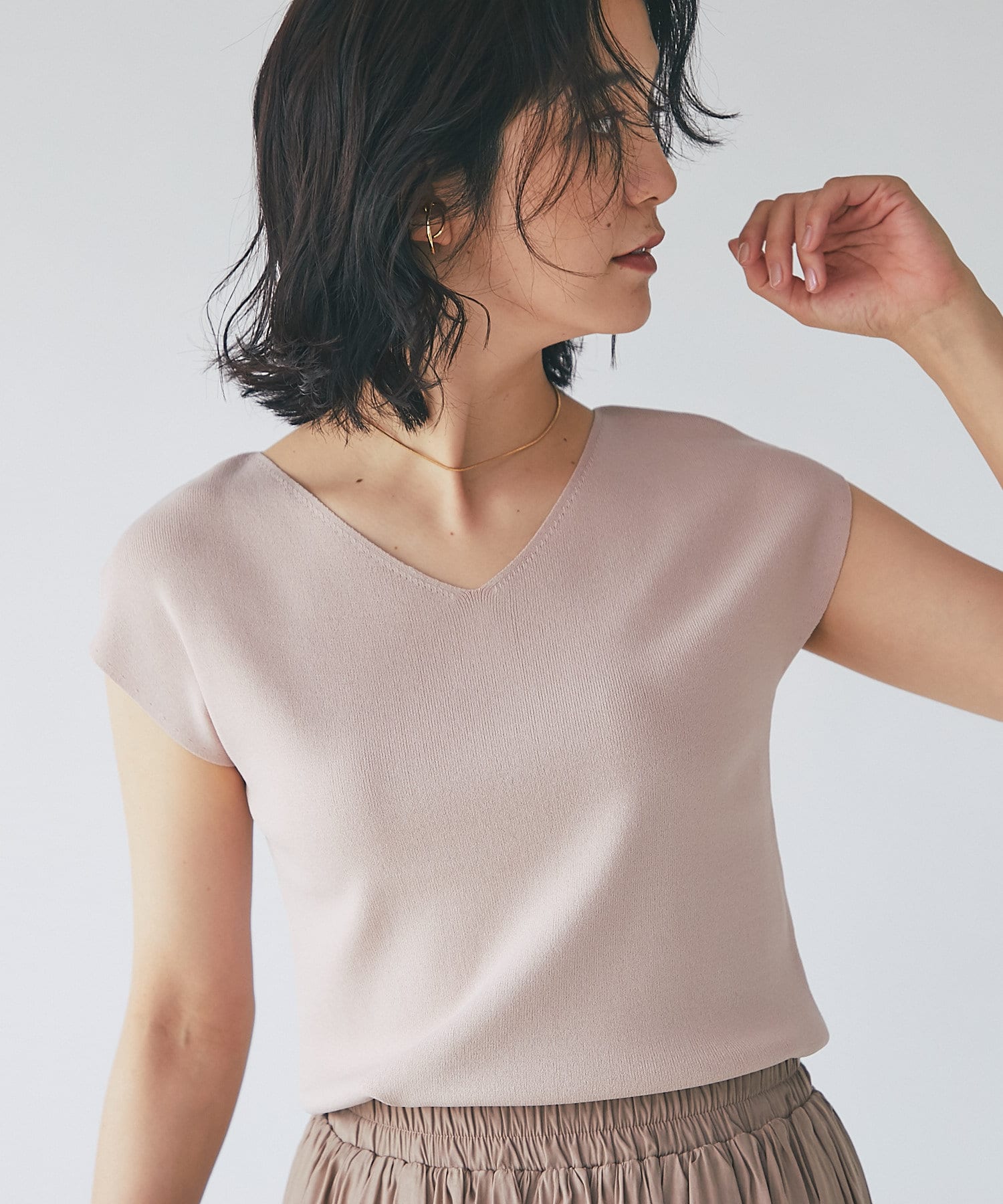 【夏に嬉しい機能付きニット】クールタッチUVフレンチスリーブニット