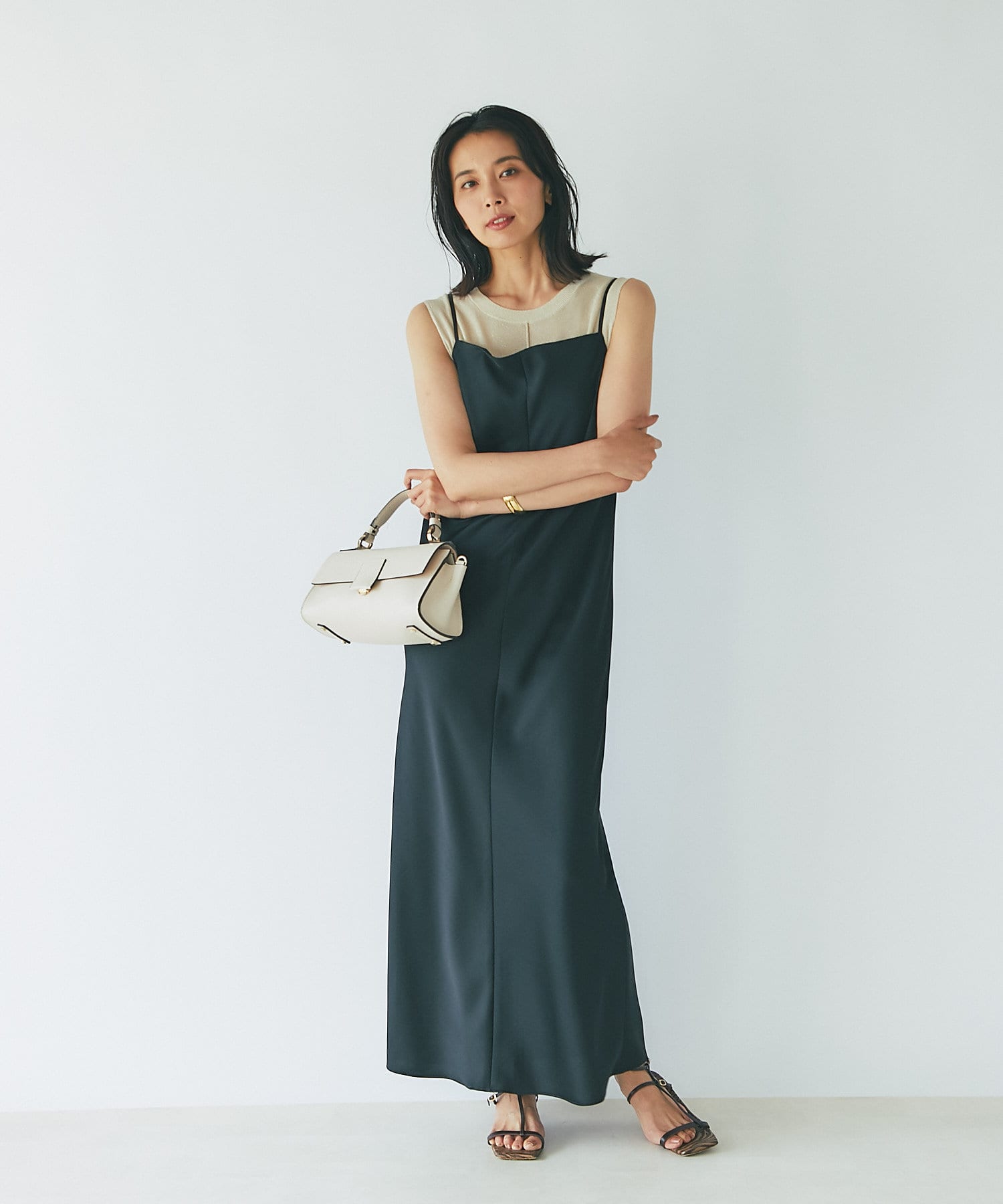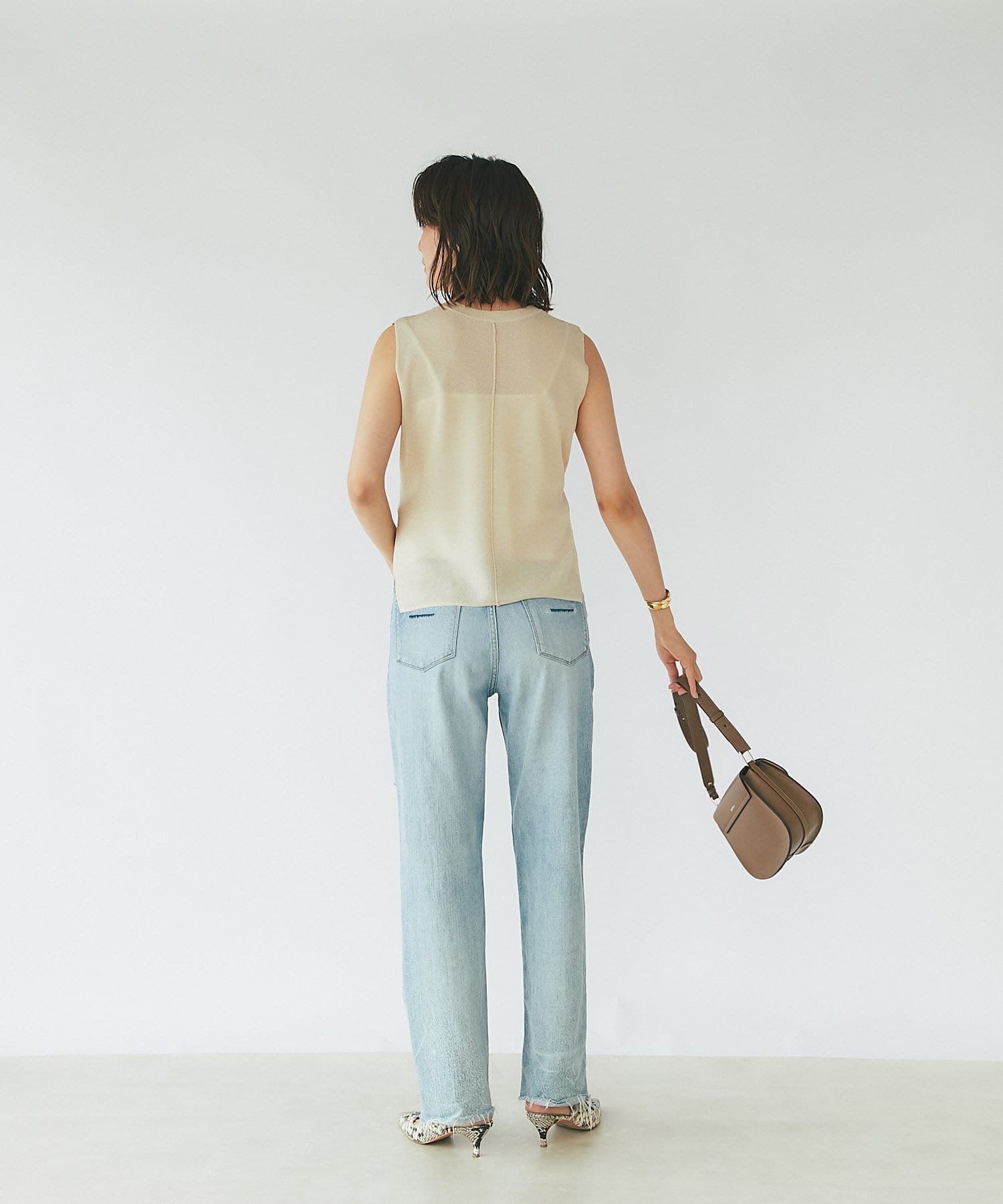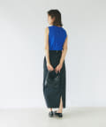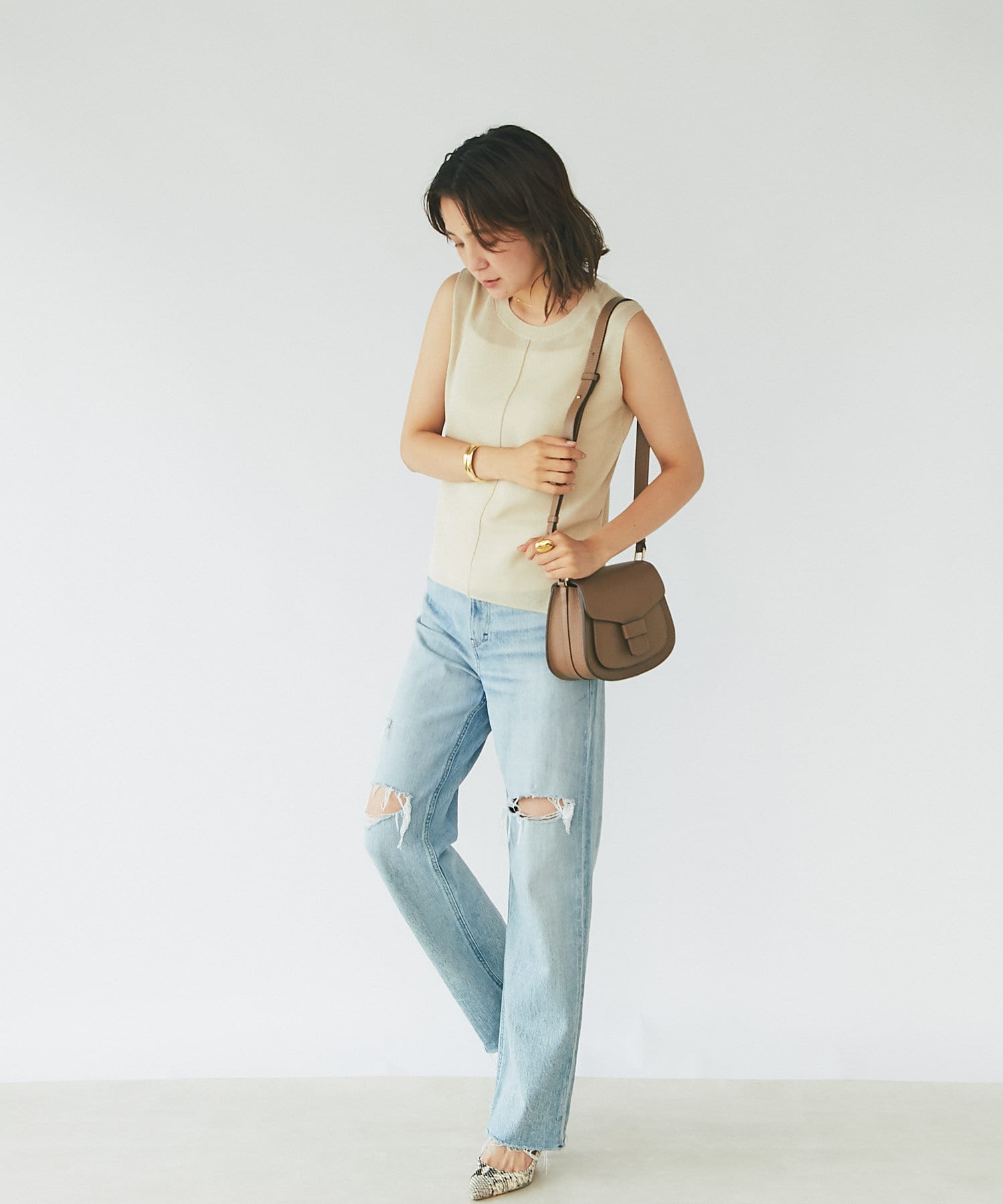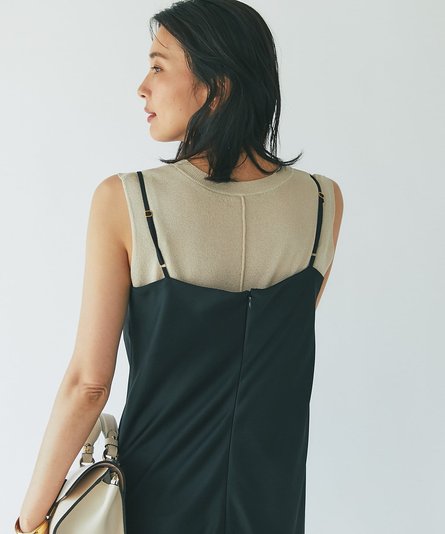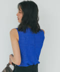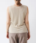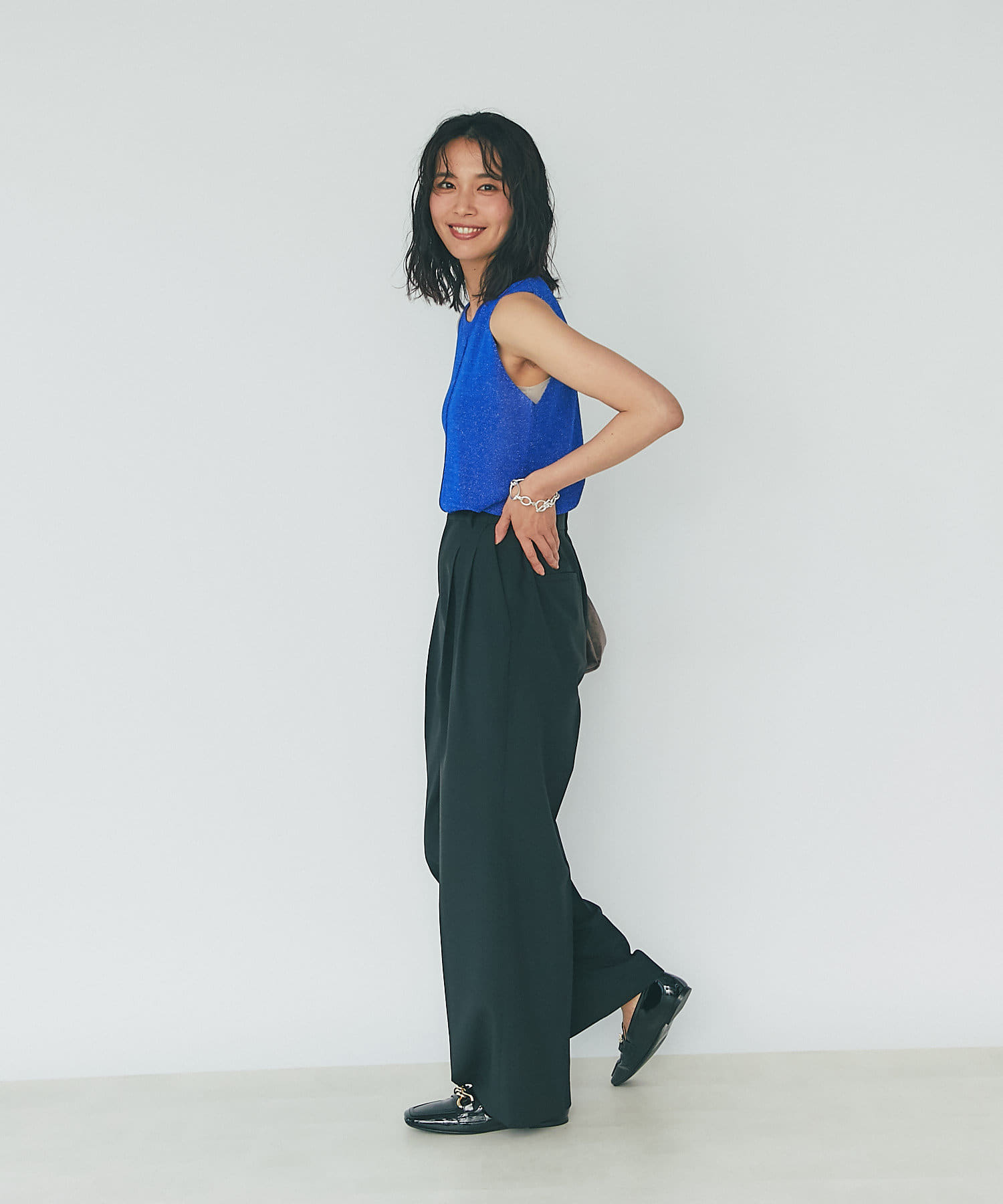 コンパクトなシルエットとスッキリしたノースリーブでモード感があるラメニット。