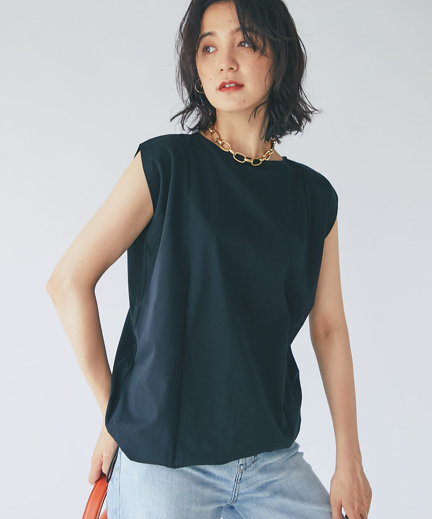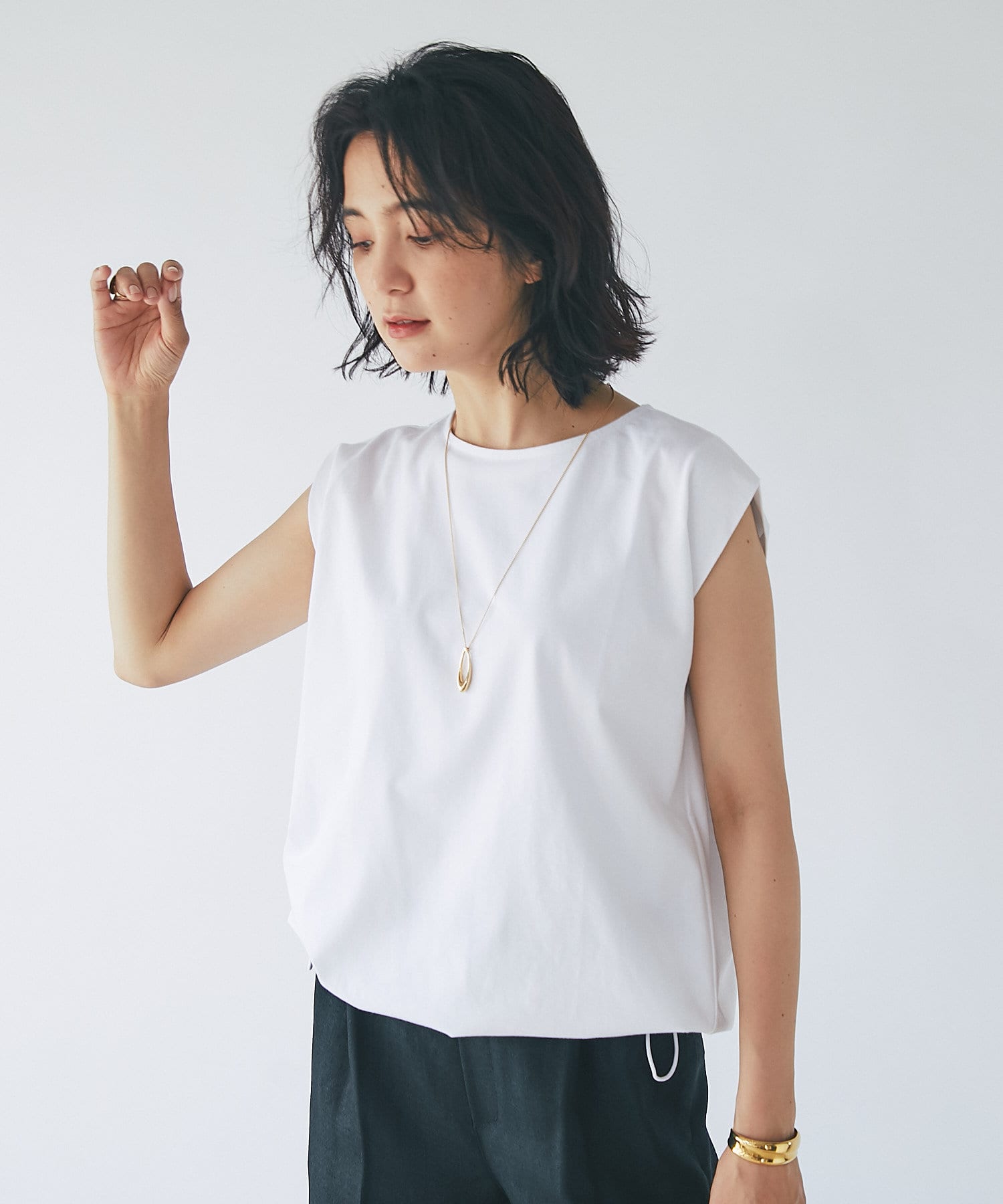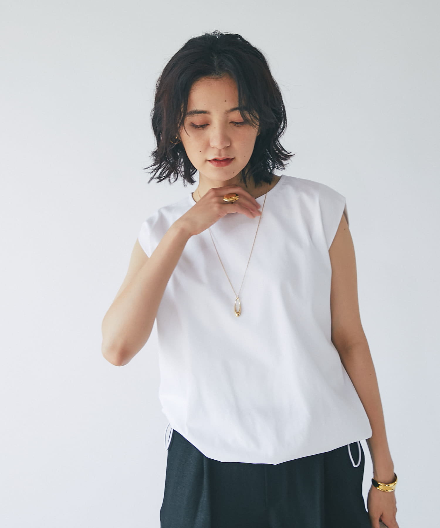 袖口は内側に折り返しステッチを表に出さないことで、カジュアル感をおさえているので、モードな着こなしにもおすすめです。身体のラインを拾わないゆったりシルエット。