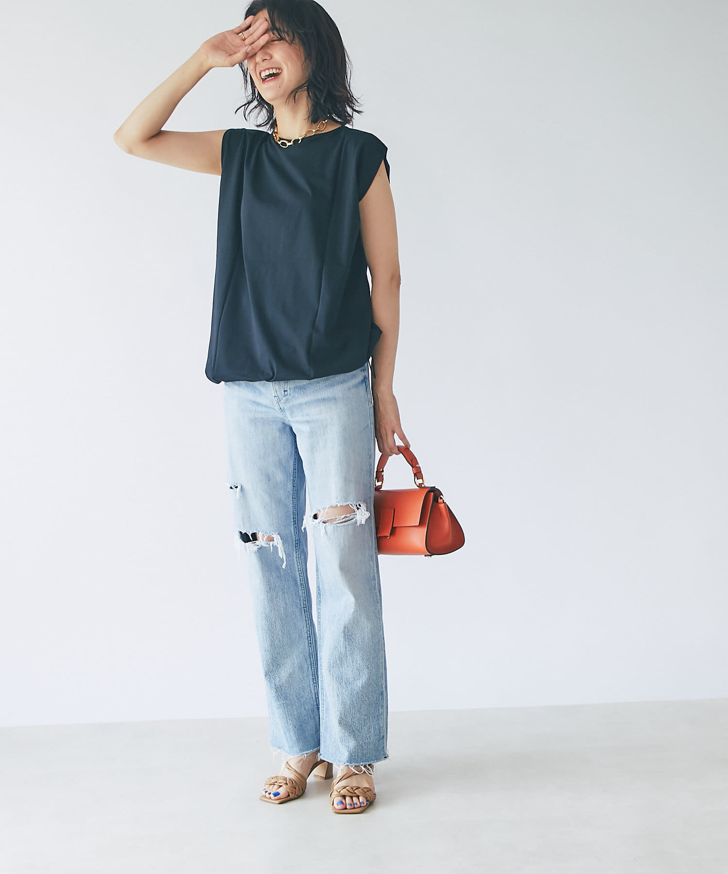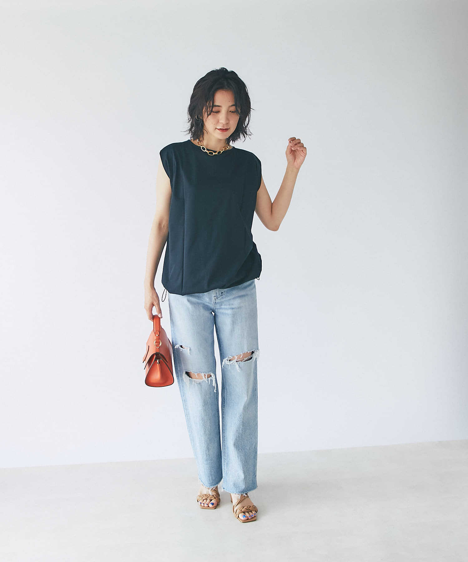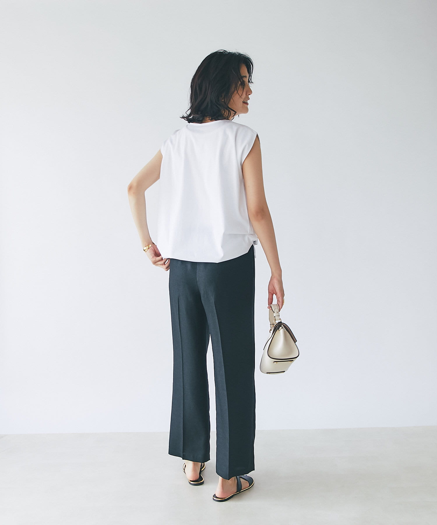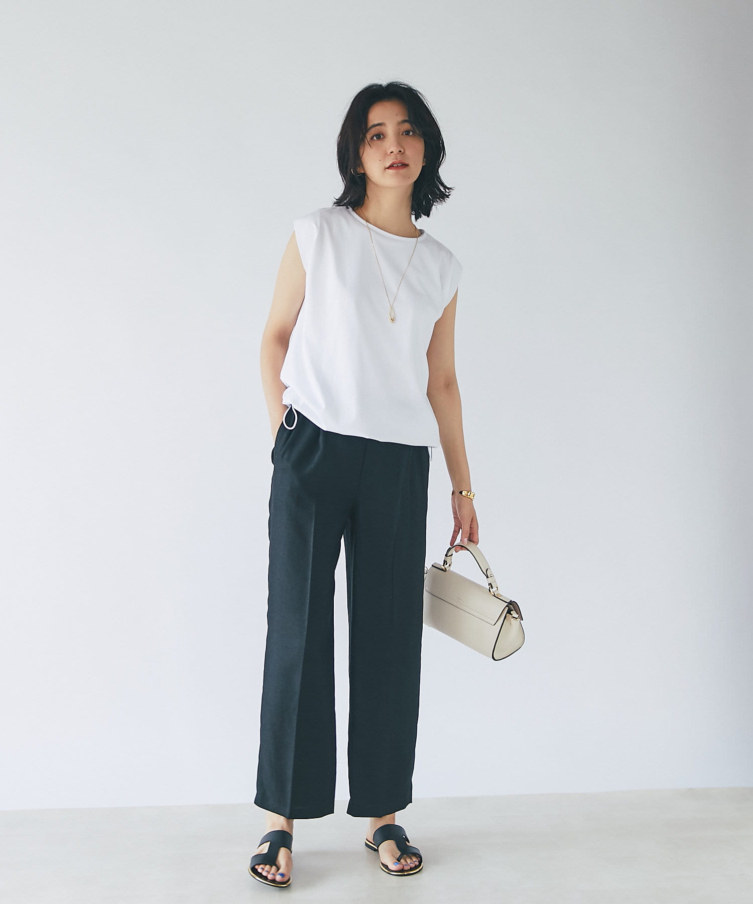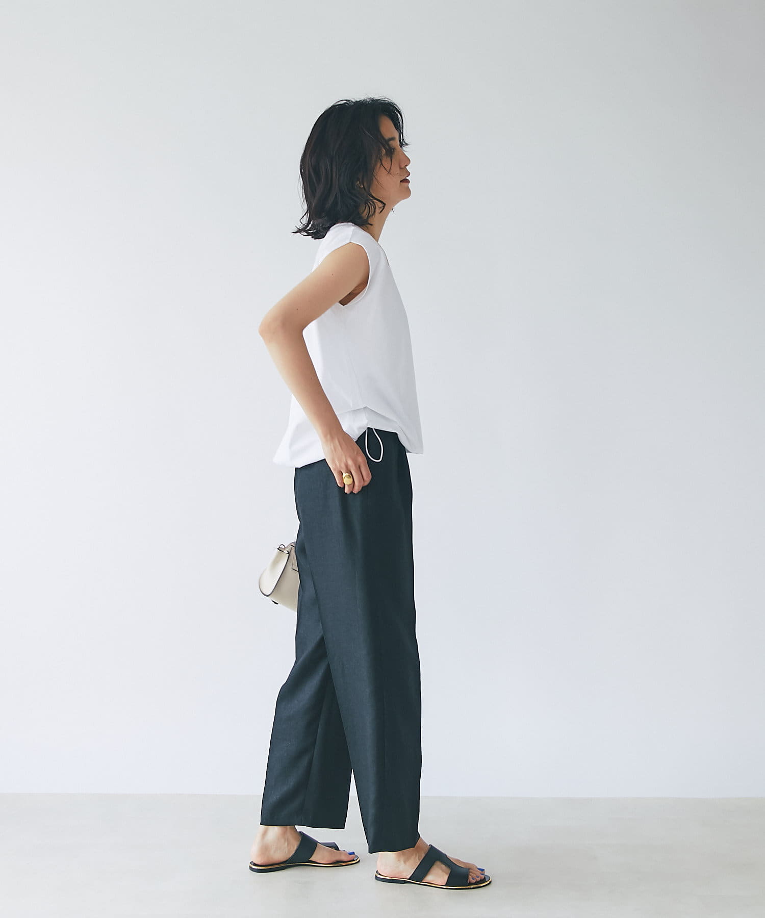 裾を調整できるのでパンツコーデもバランス良く決まります。