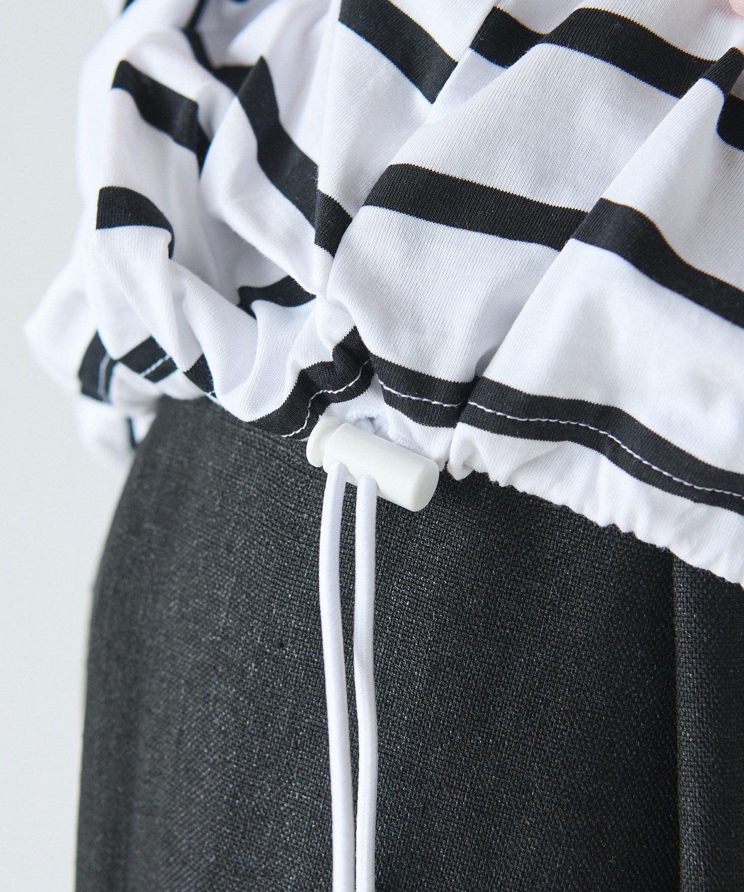 • 裾にドロストがついているので裾にボリュームを出しても着ていただけます。