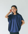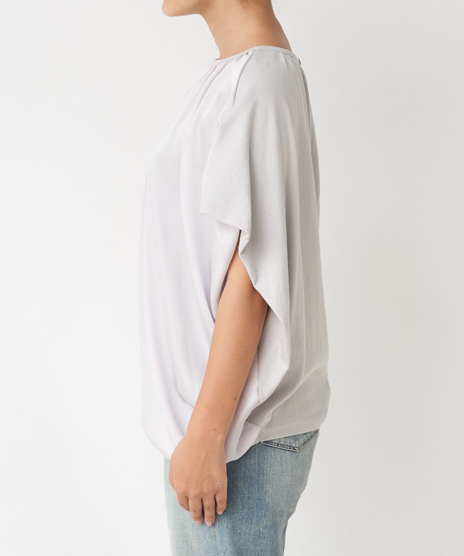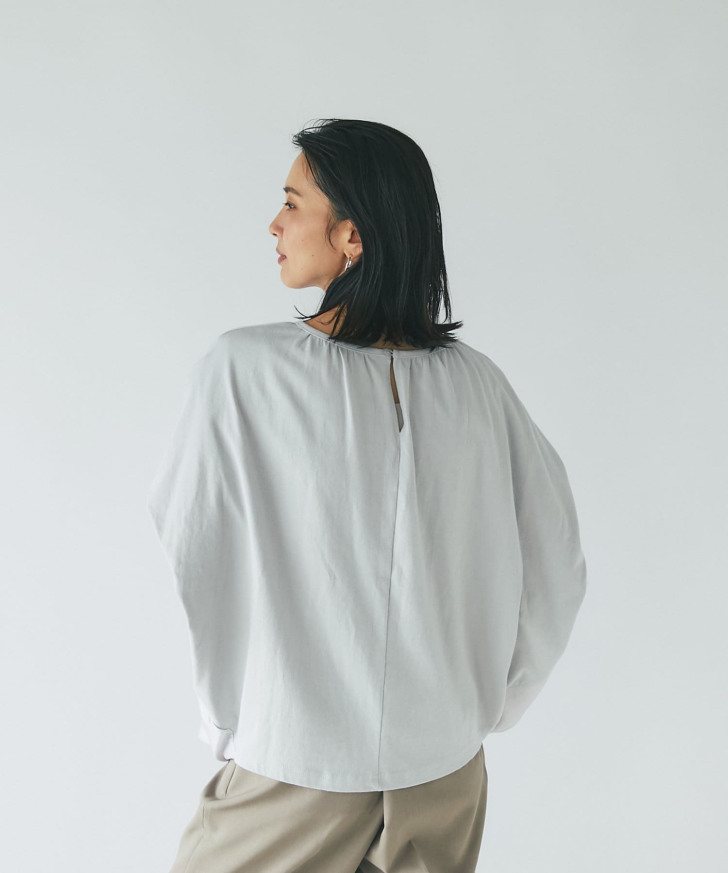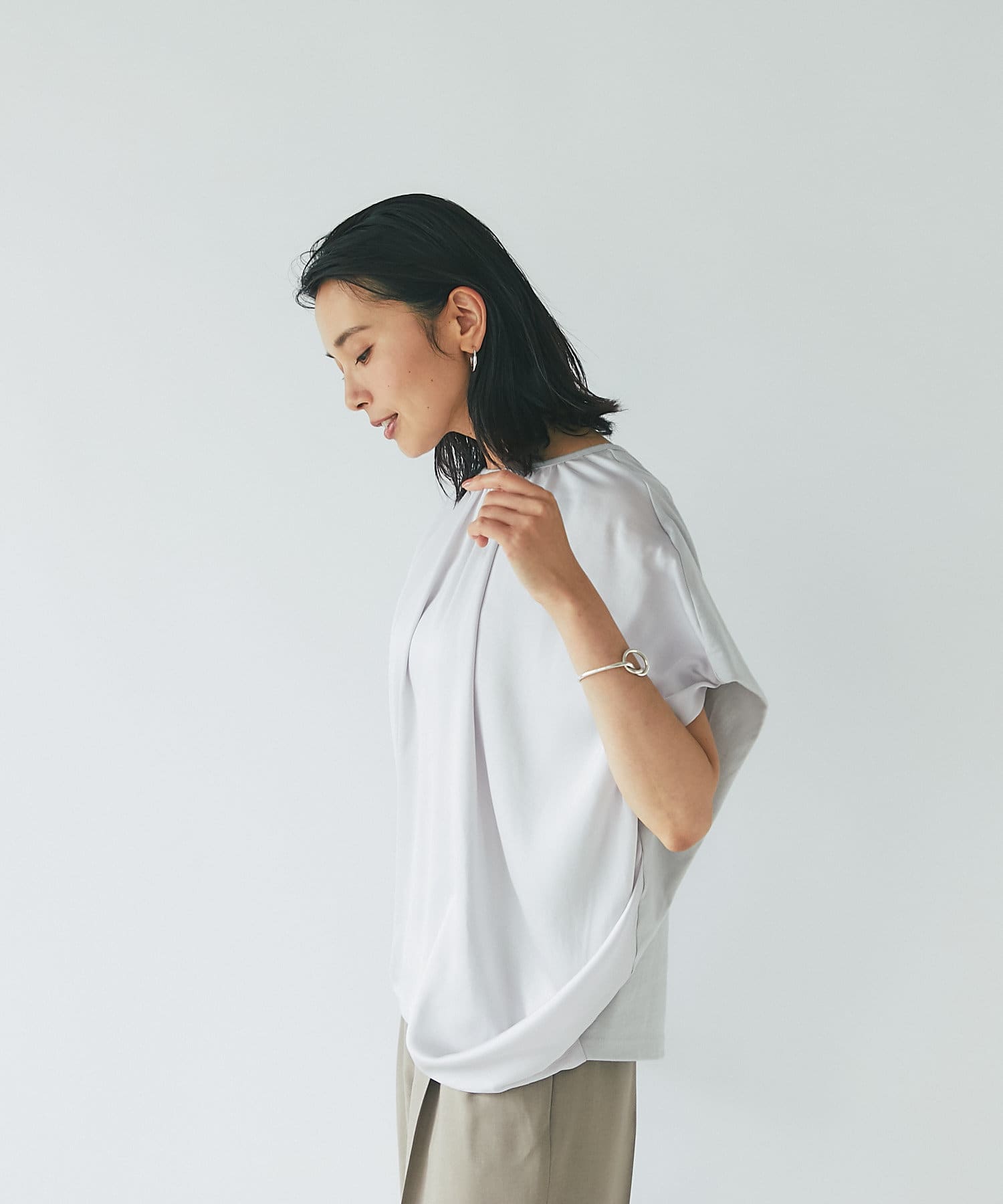 【二の腕カバーが叶う】フロントギャザー異素材カットソー