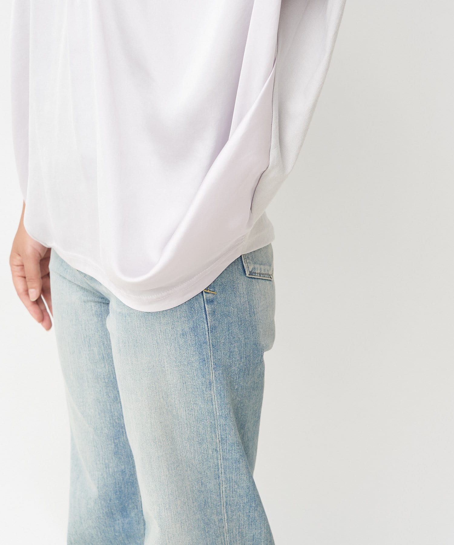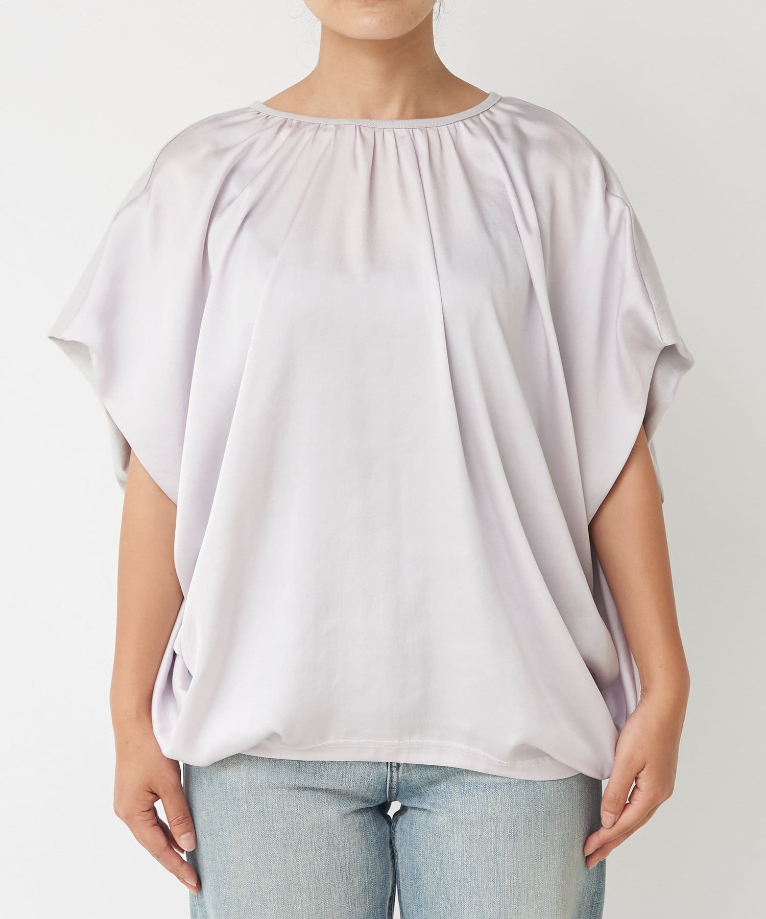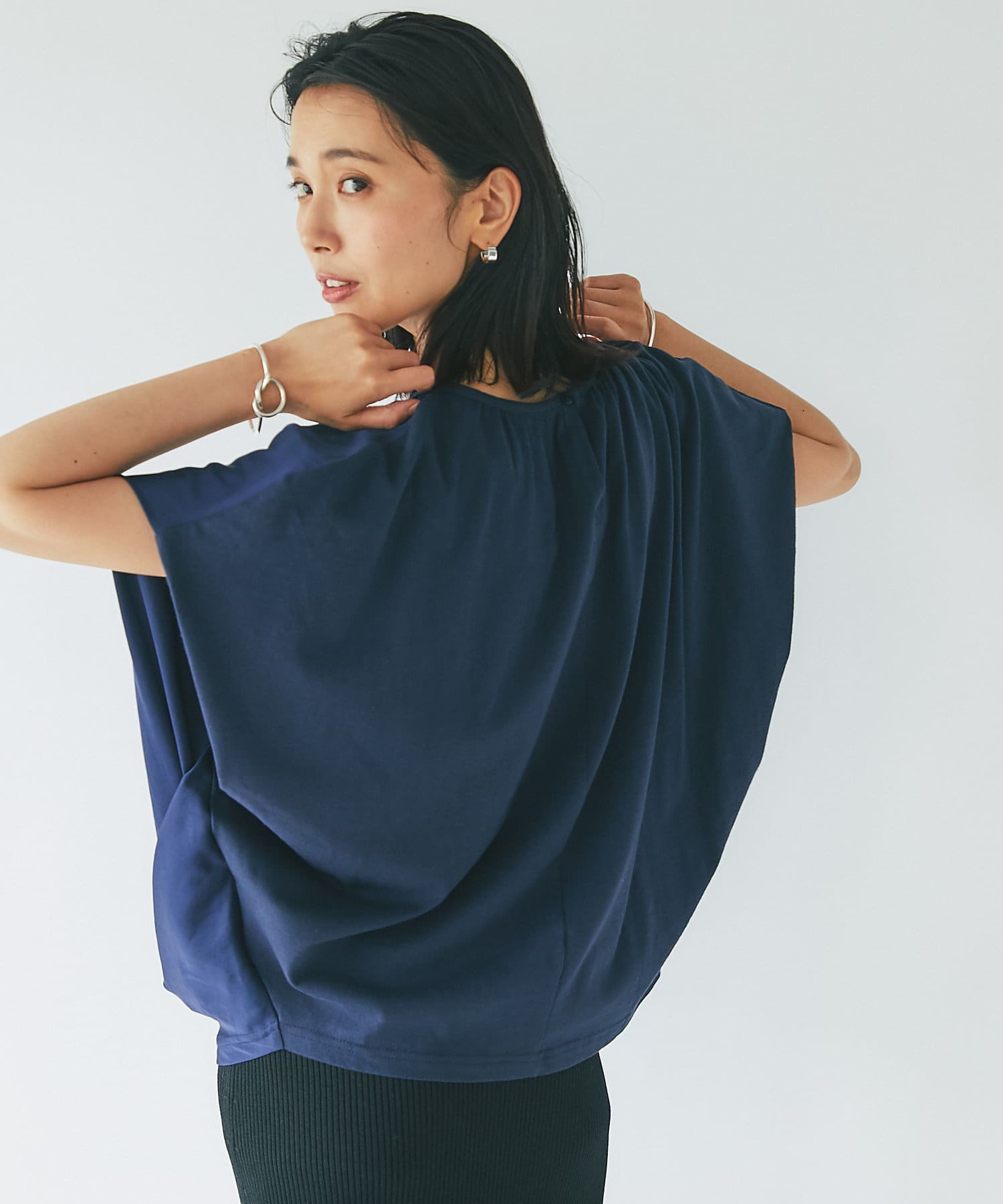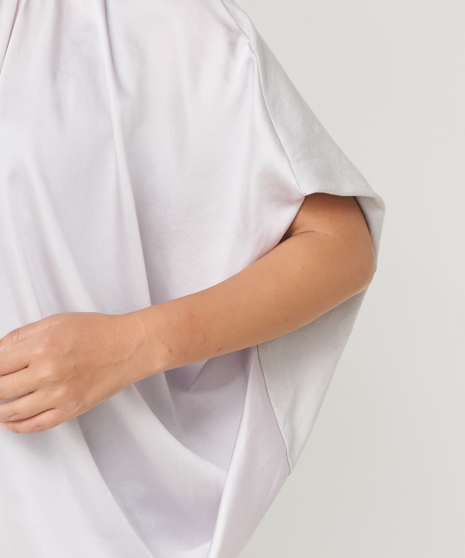 【二の腕カバーが叶う】フロントギャザー異素材カットソー