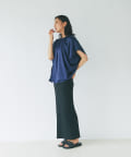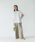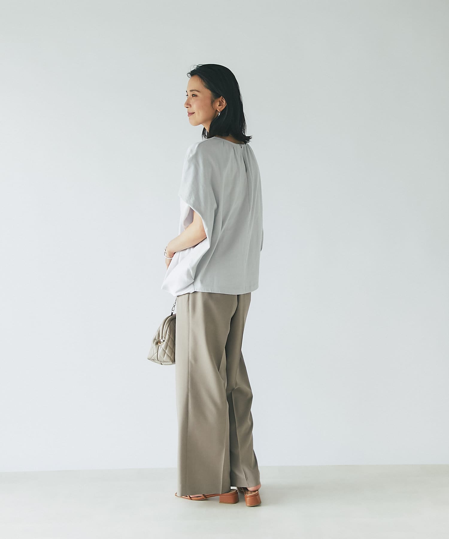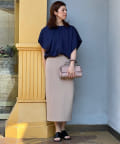 程よくボリュームがあるのでボトムは少し細身なタイトスカートやテーパードパンツなどでIラインを作るとスッキリ見えするのでオススメです。