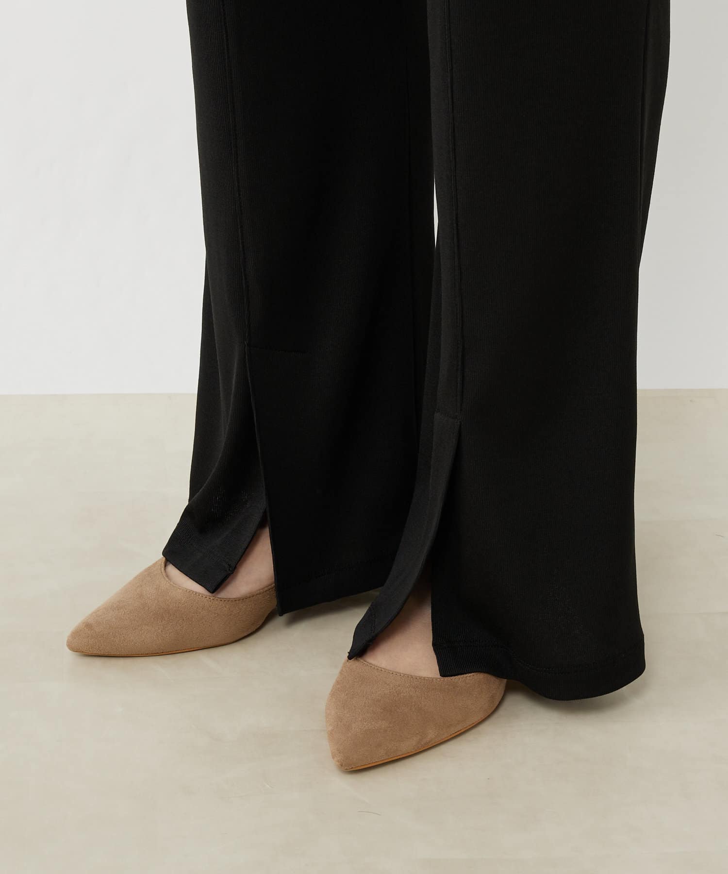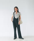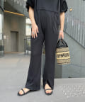 • ゆるすぎないサイズ感とパンツのフレアラインが大人の女性らしさを演出