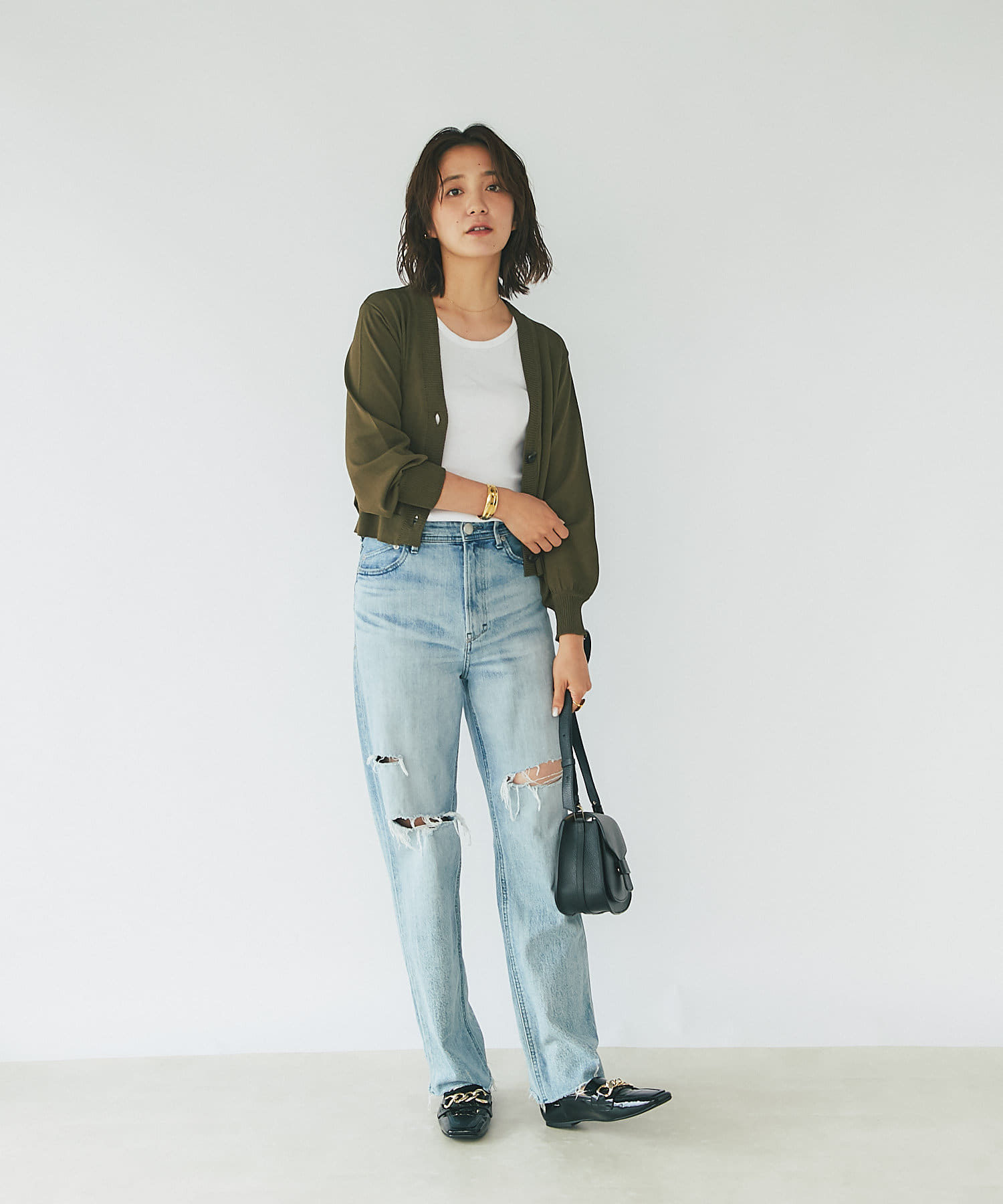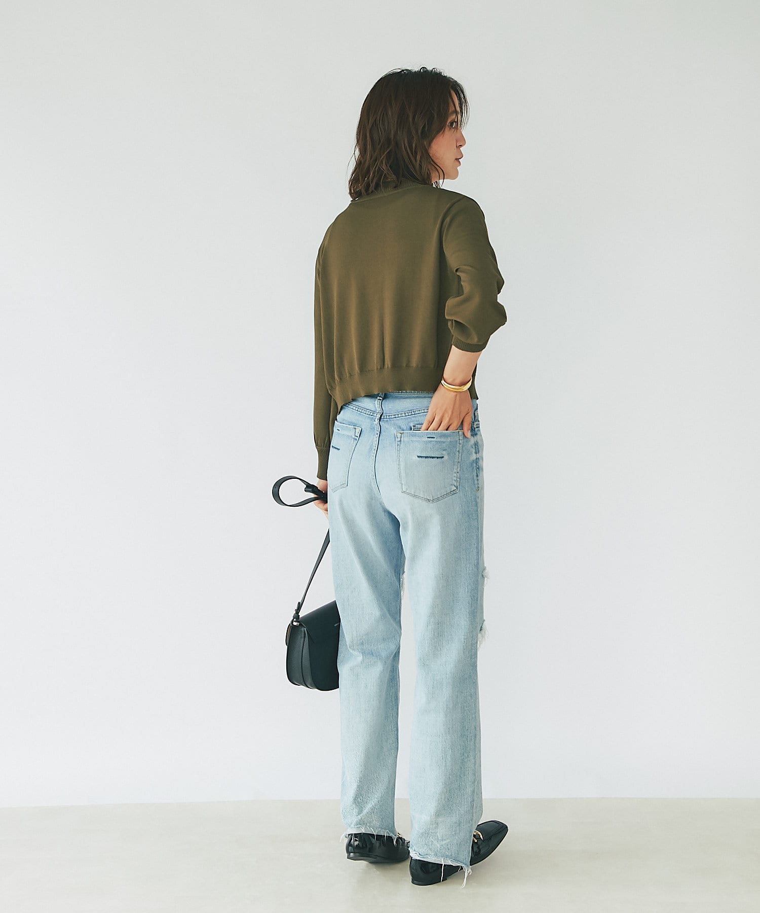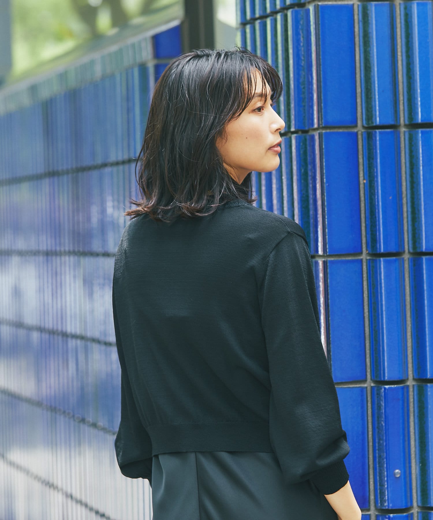 着丈が短めなので腰の位置が高く見え、脚長効果があります。
