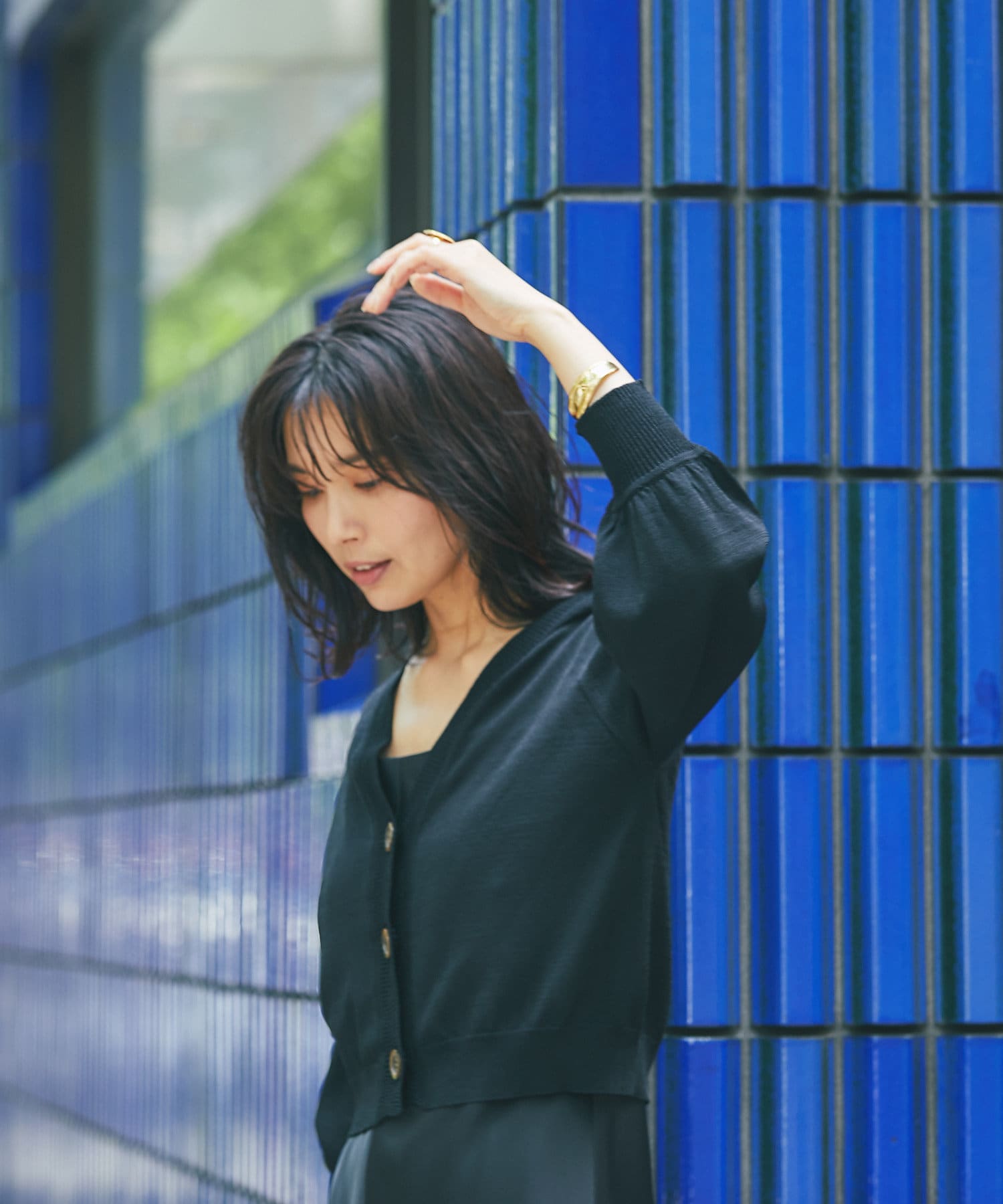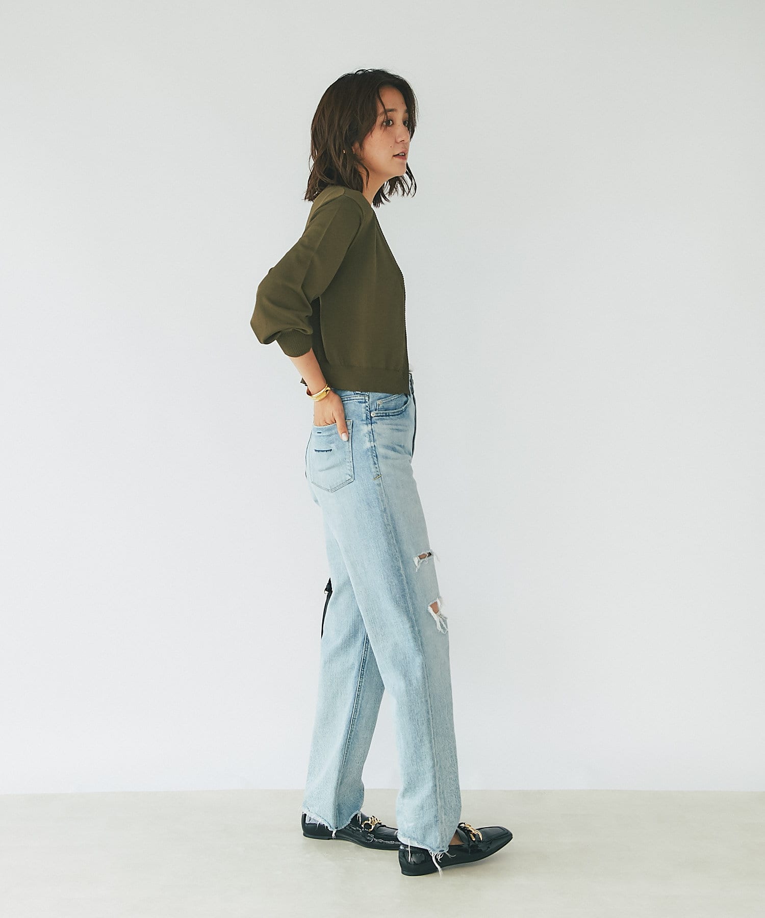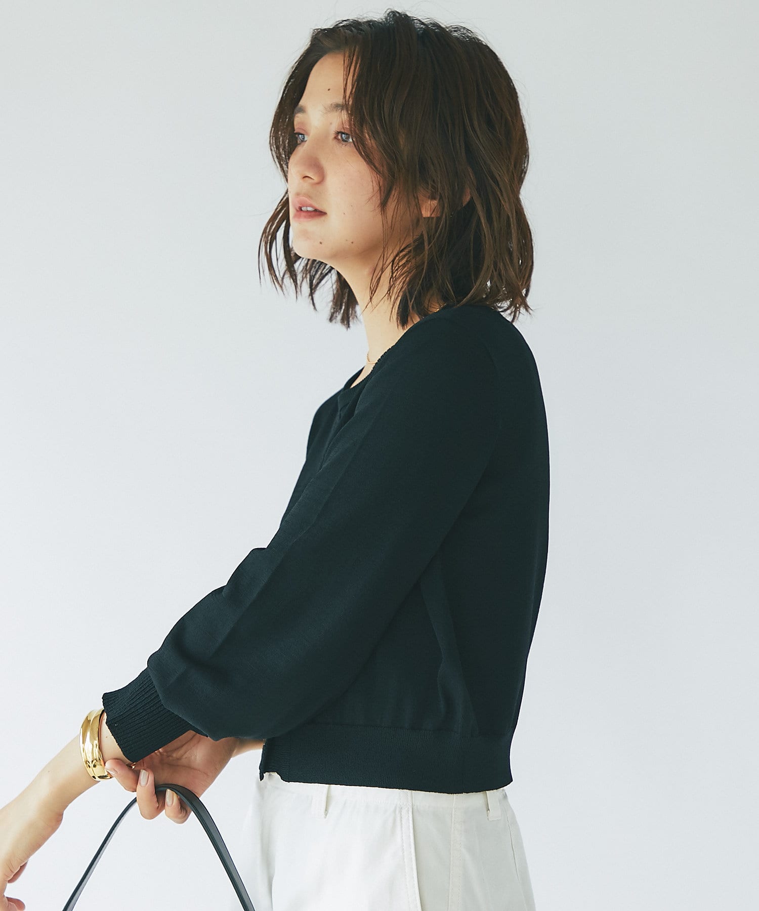 着丈が短めなので腰の位置が高く見え、脚長効果があります。