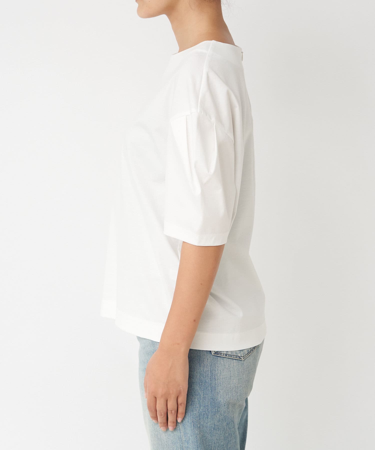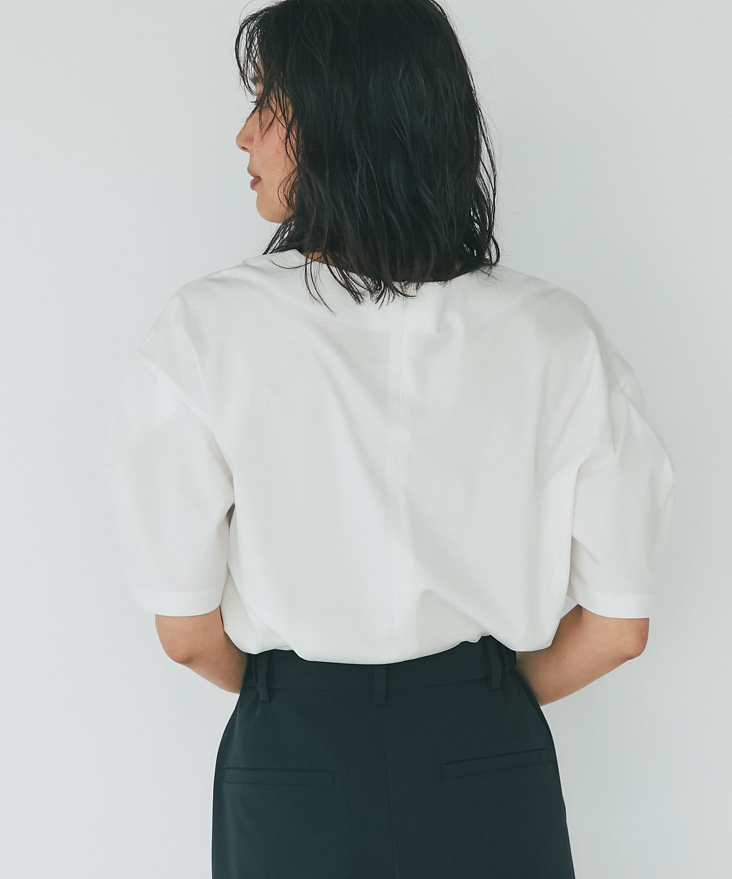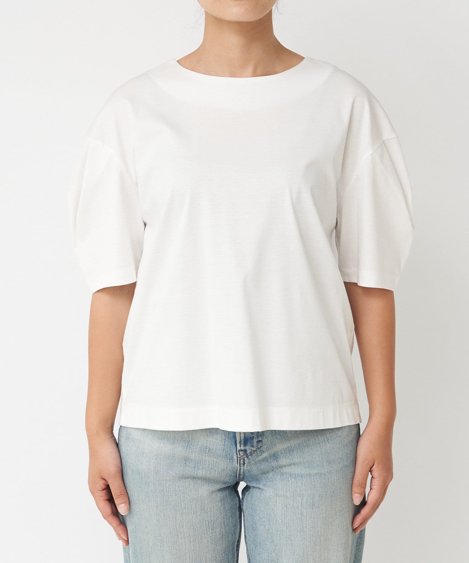 【袖のボリューム感がアクセント】カーブタックスリーブカットソー