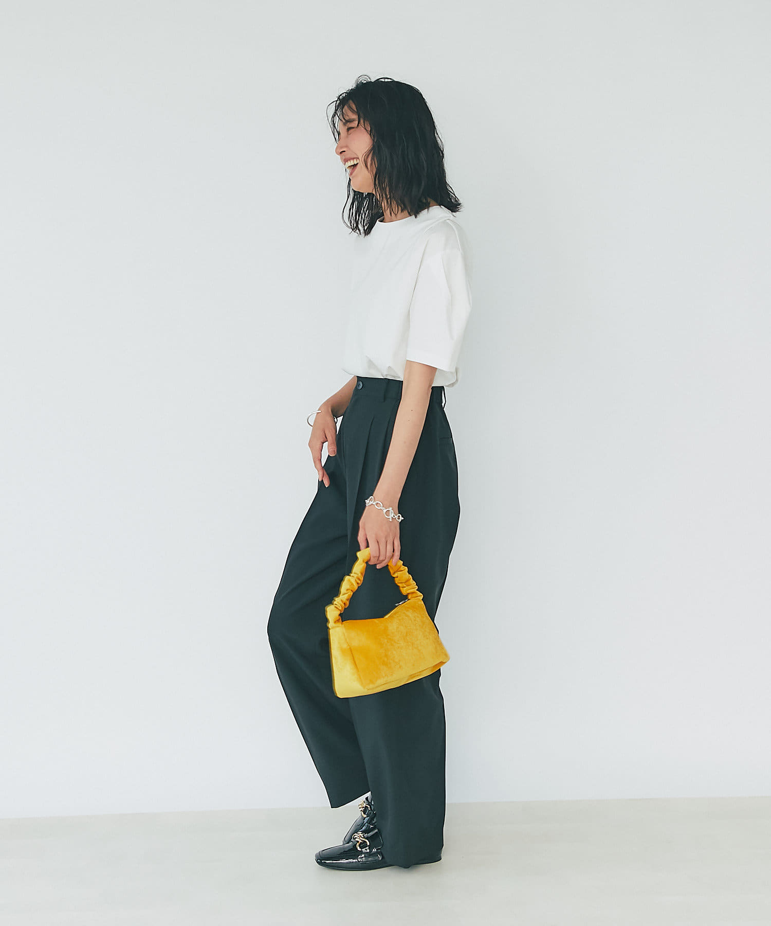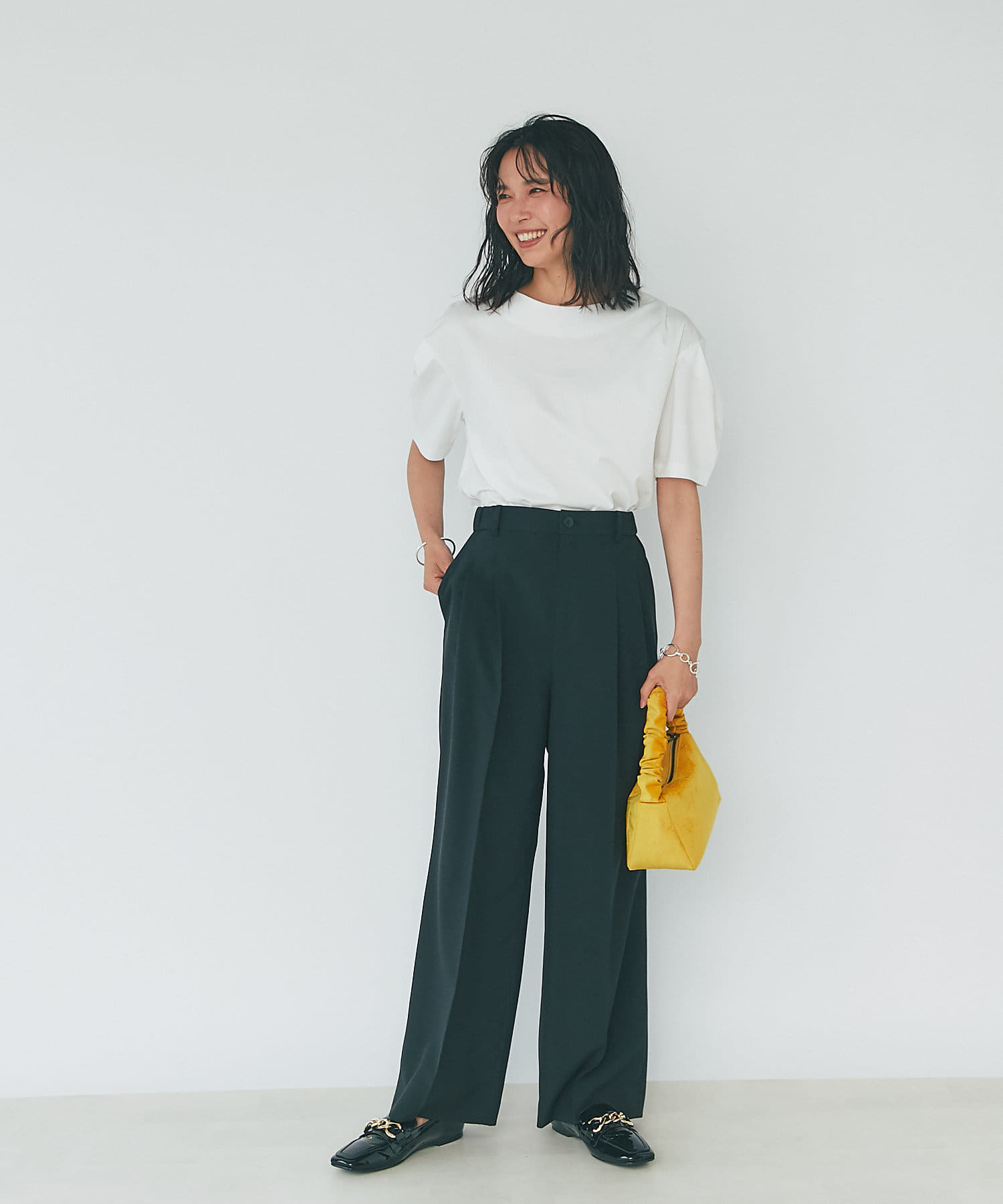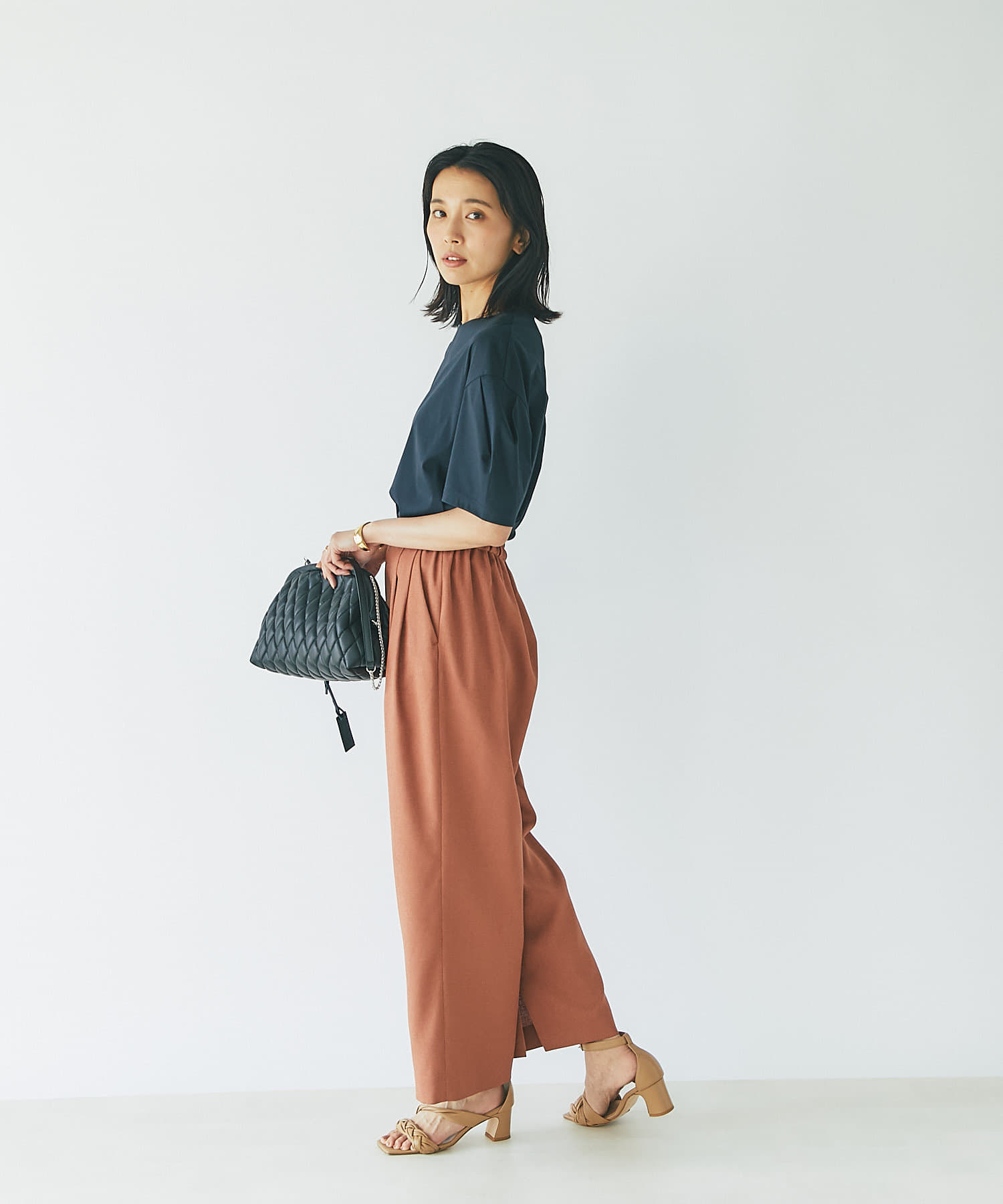 カジュアル感を抑えた生地感なので、きちんとスタイルに