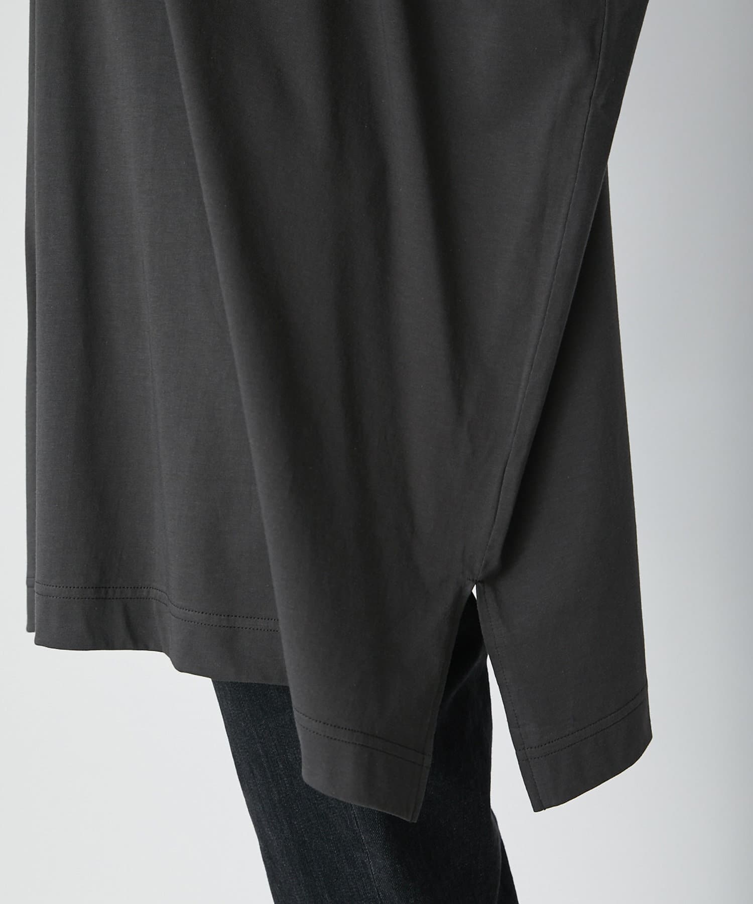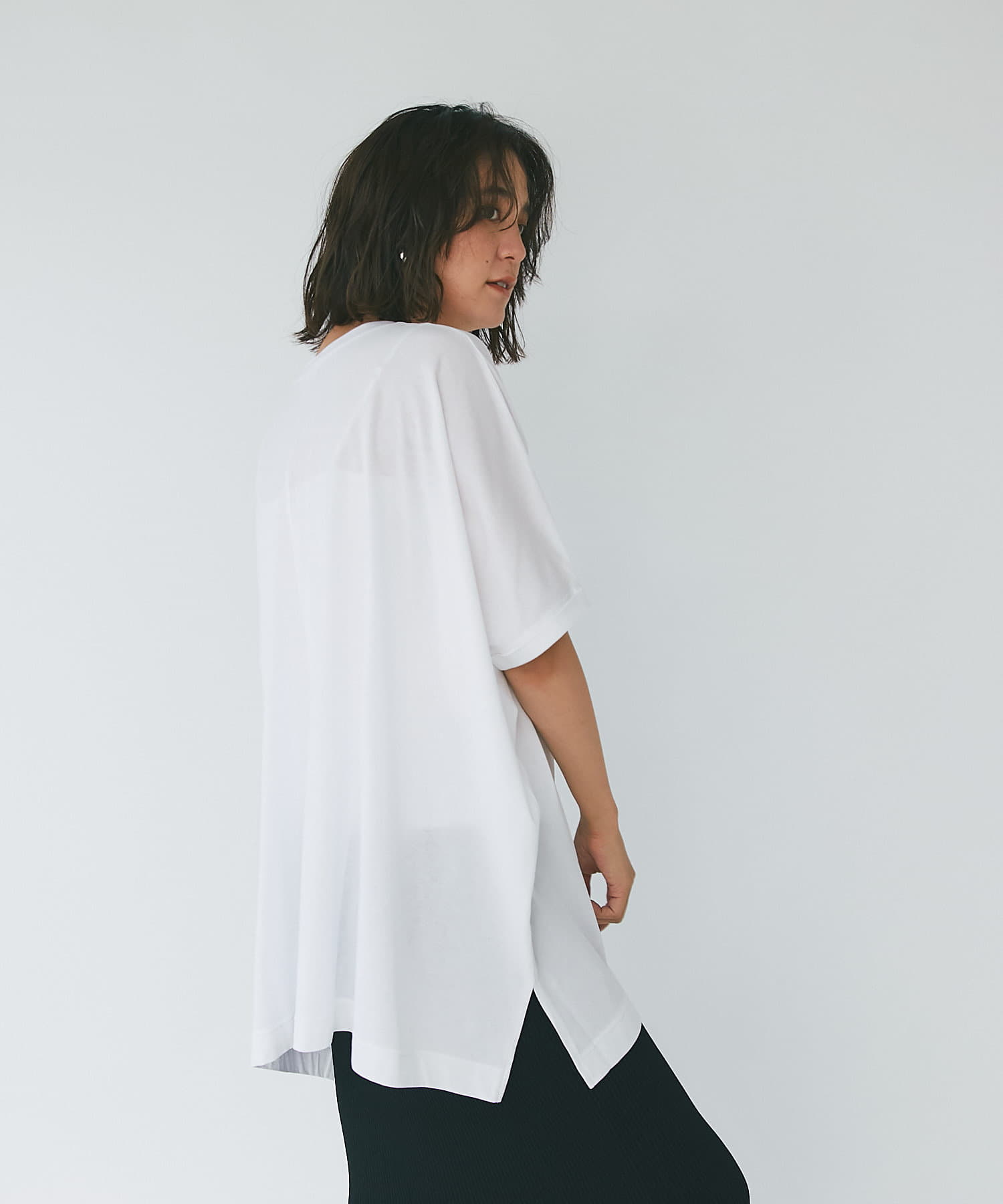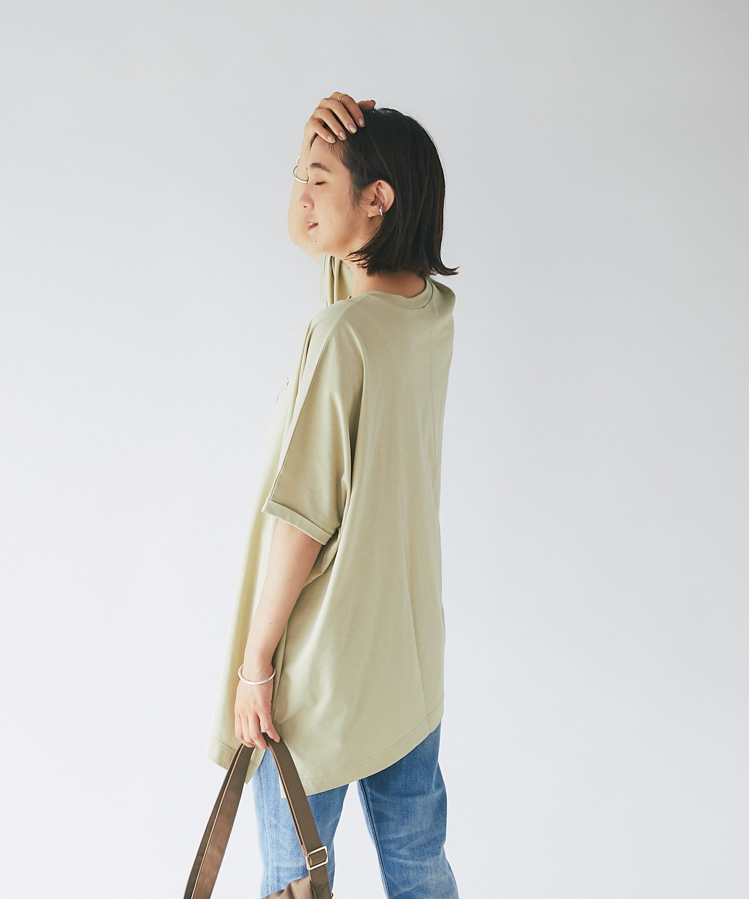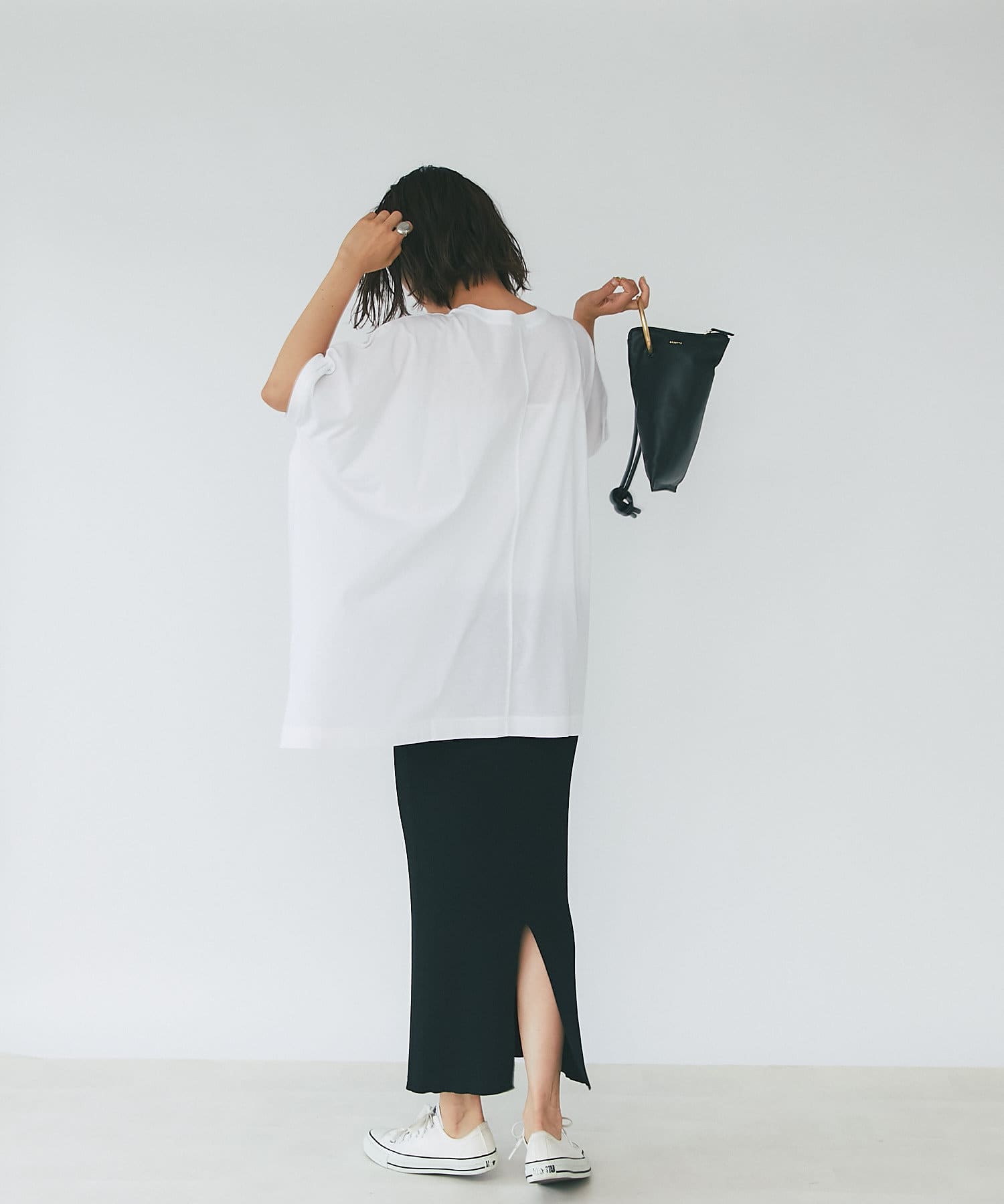 身幅や丈感のある安心感のあるデザインとなっているので、ボトムを選ばずに着用できます。