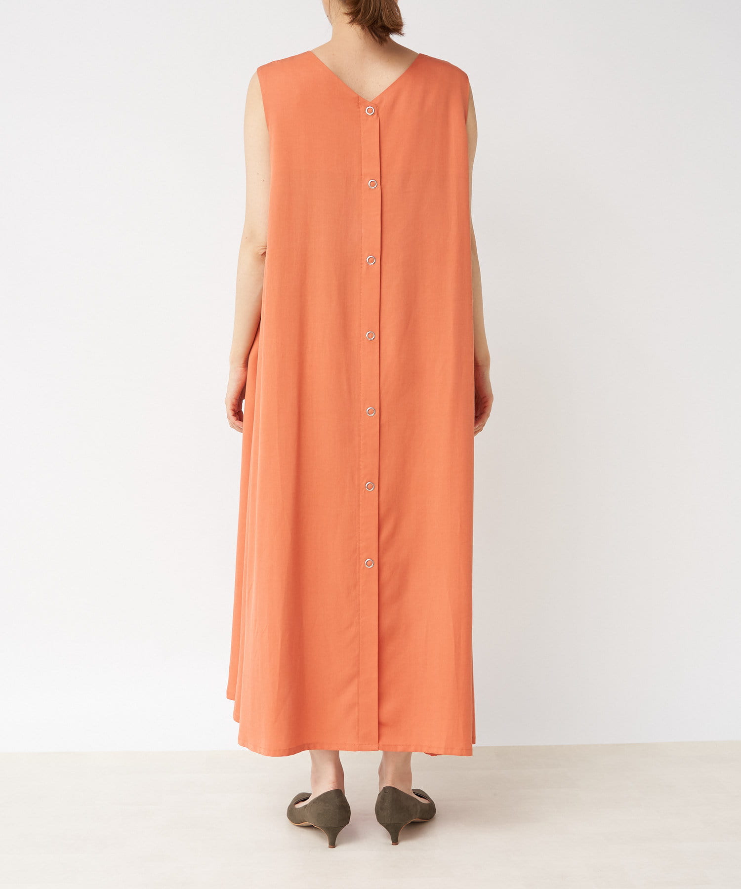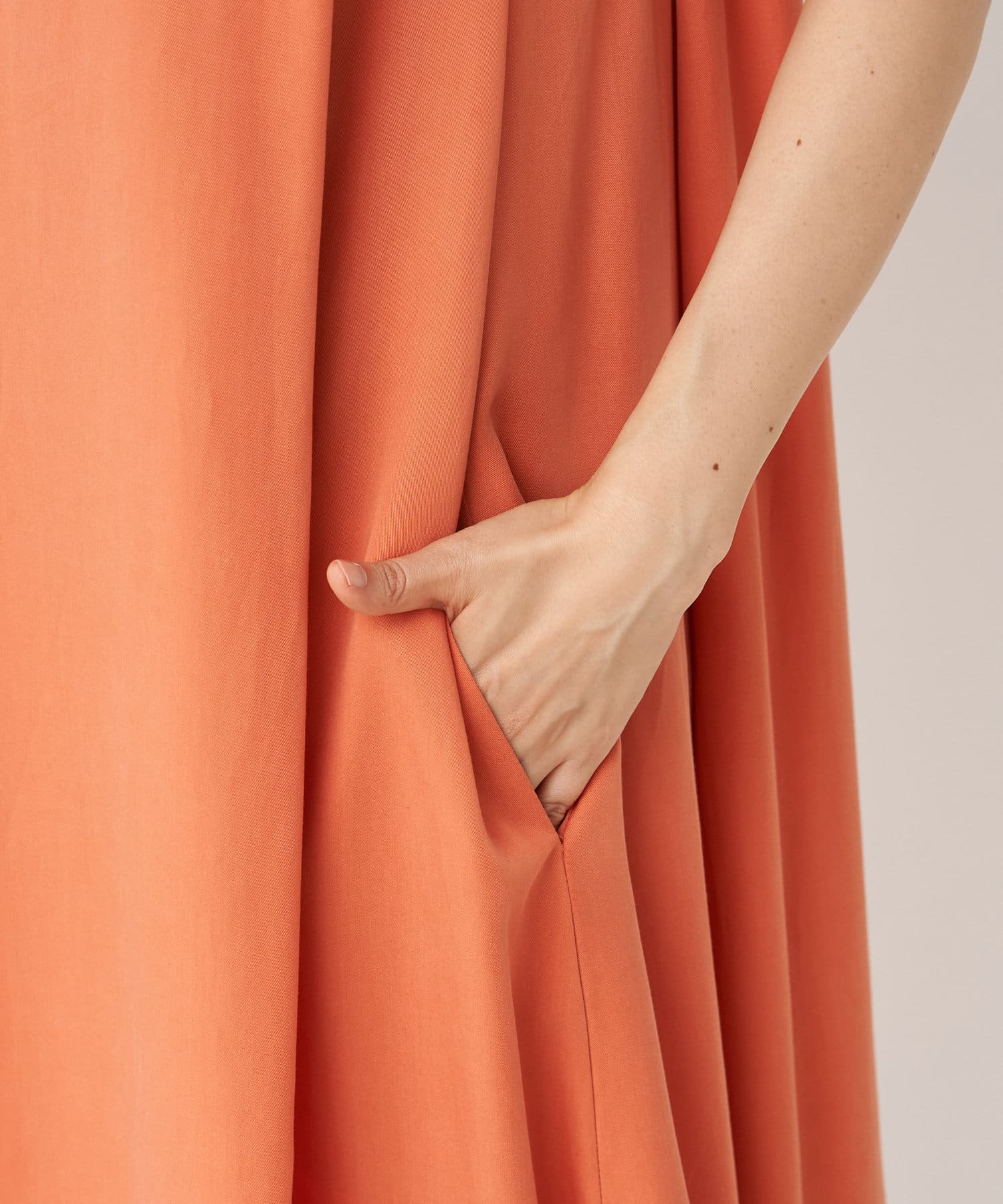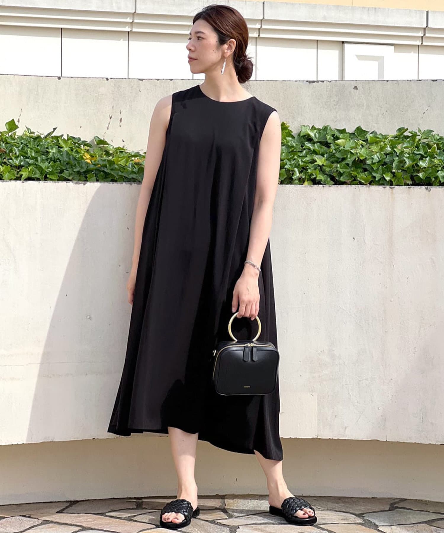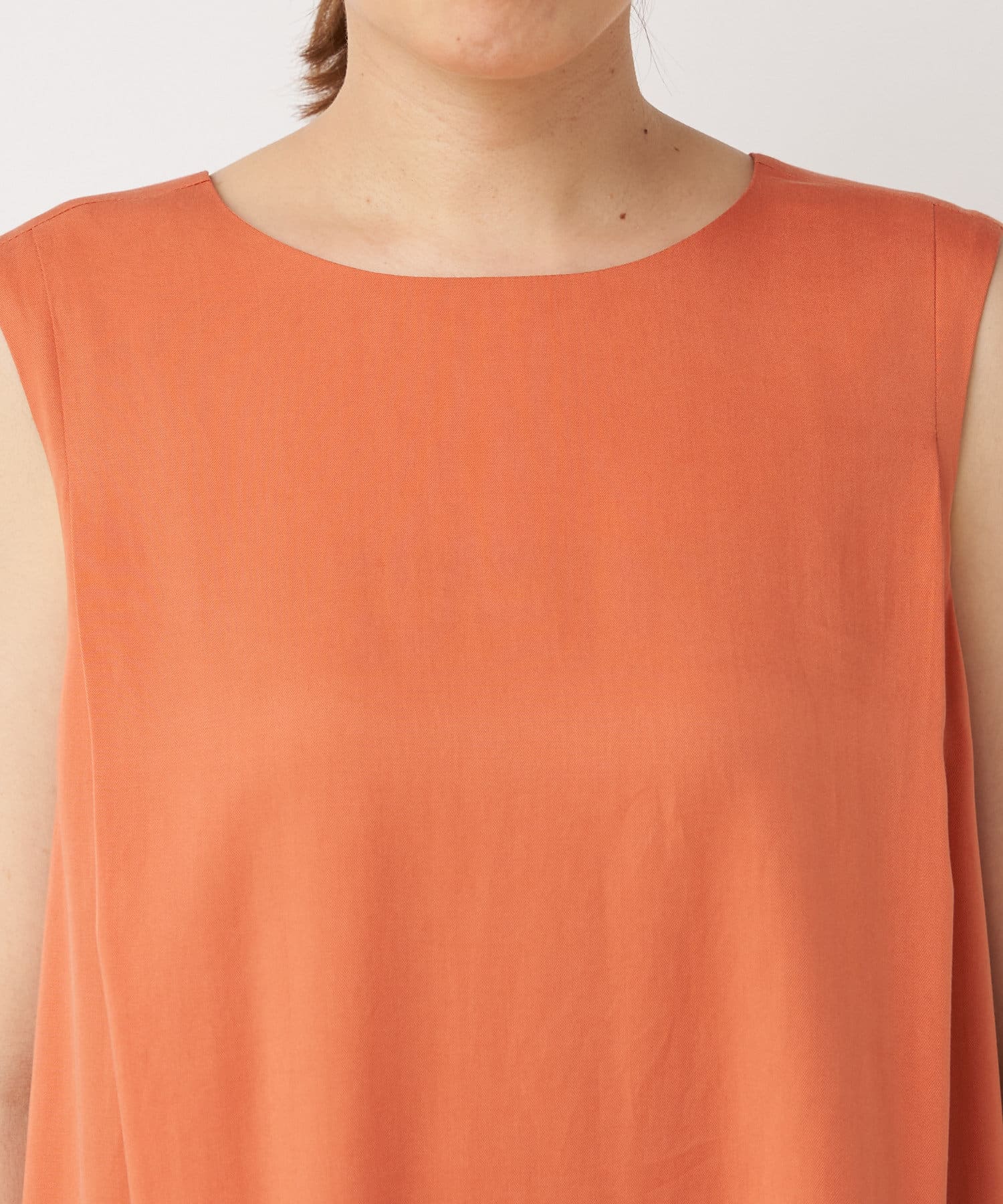 ノースリーブなので、羽織りによっても雰囲気が変えられ、シャツやカーディガンを羽織るとロングシーズンお使いいただけます。