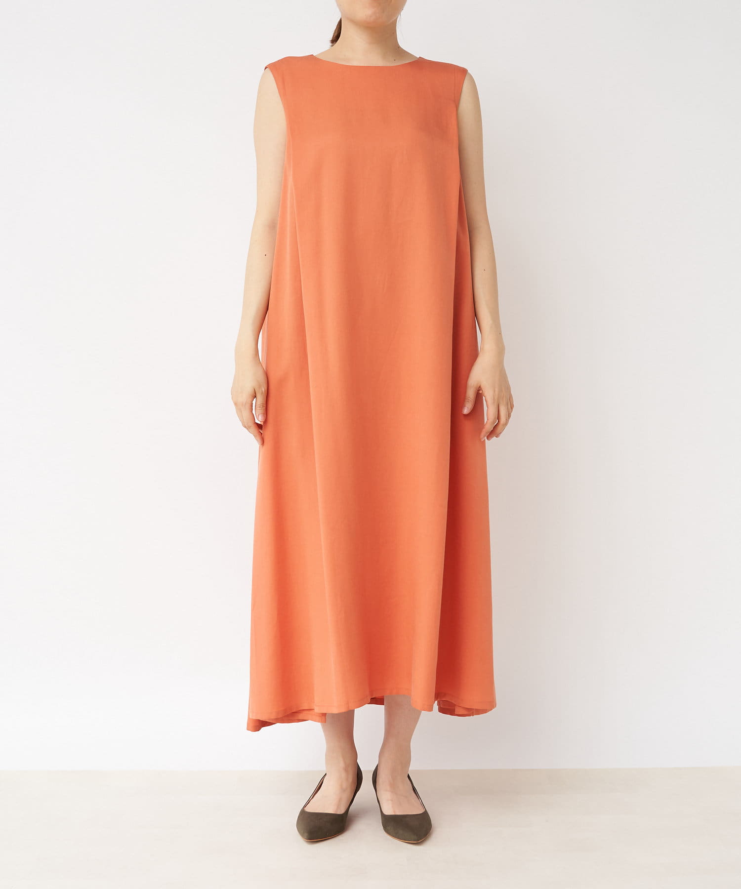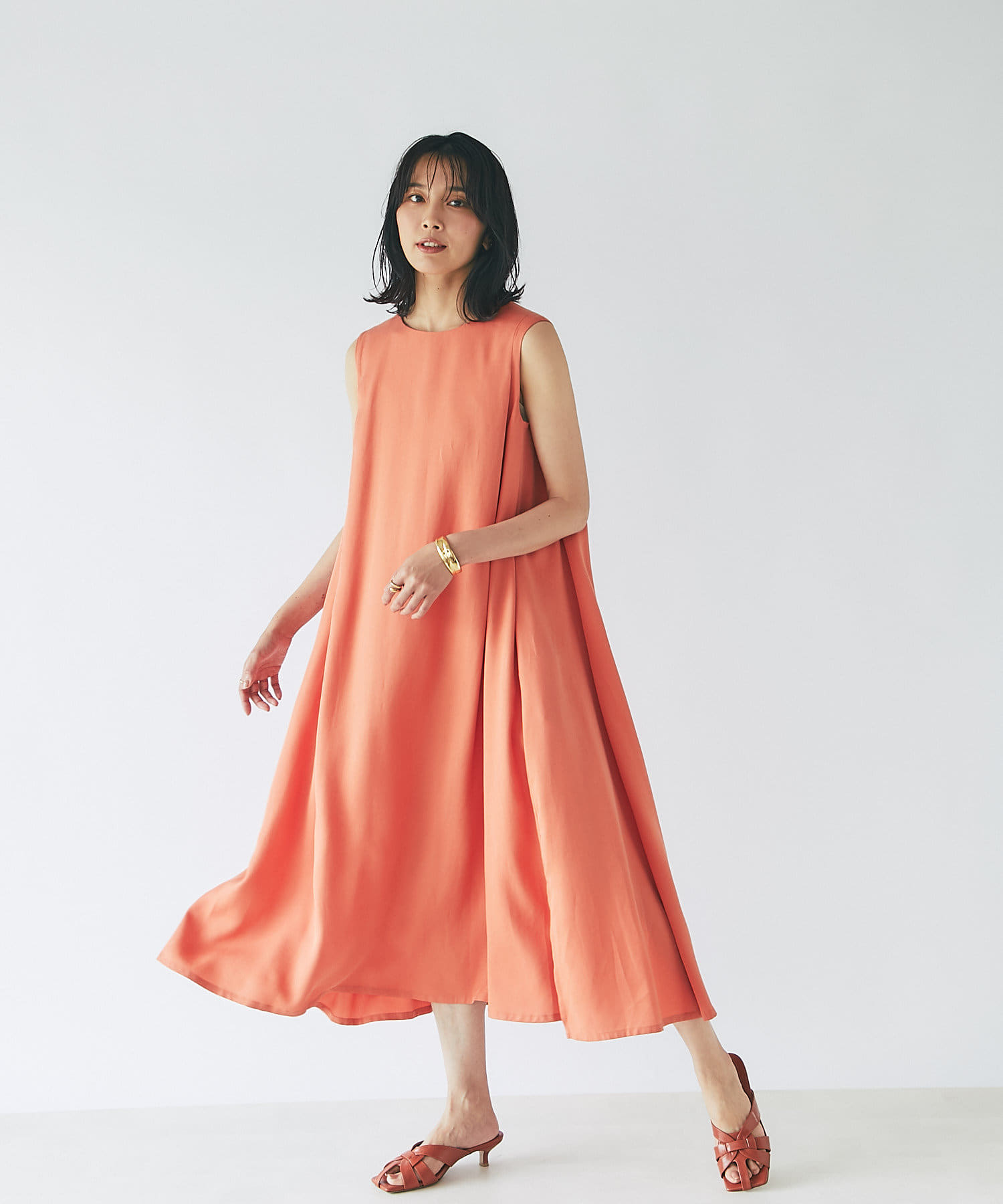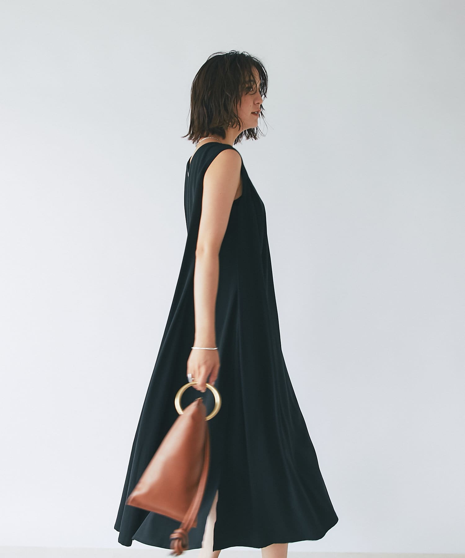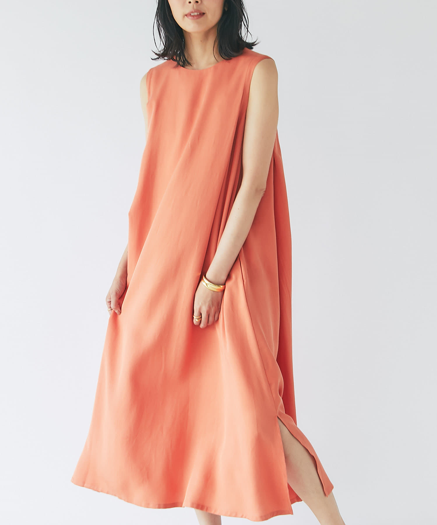 滑らか落ち感のある素材感でテントシルエットのひらりとした動きが清涼感をプラスしてくれるワンピース。