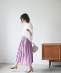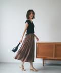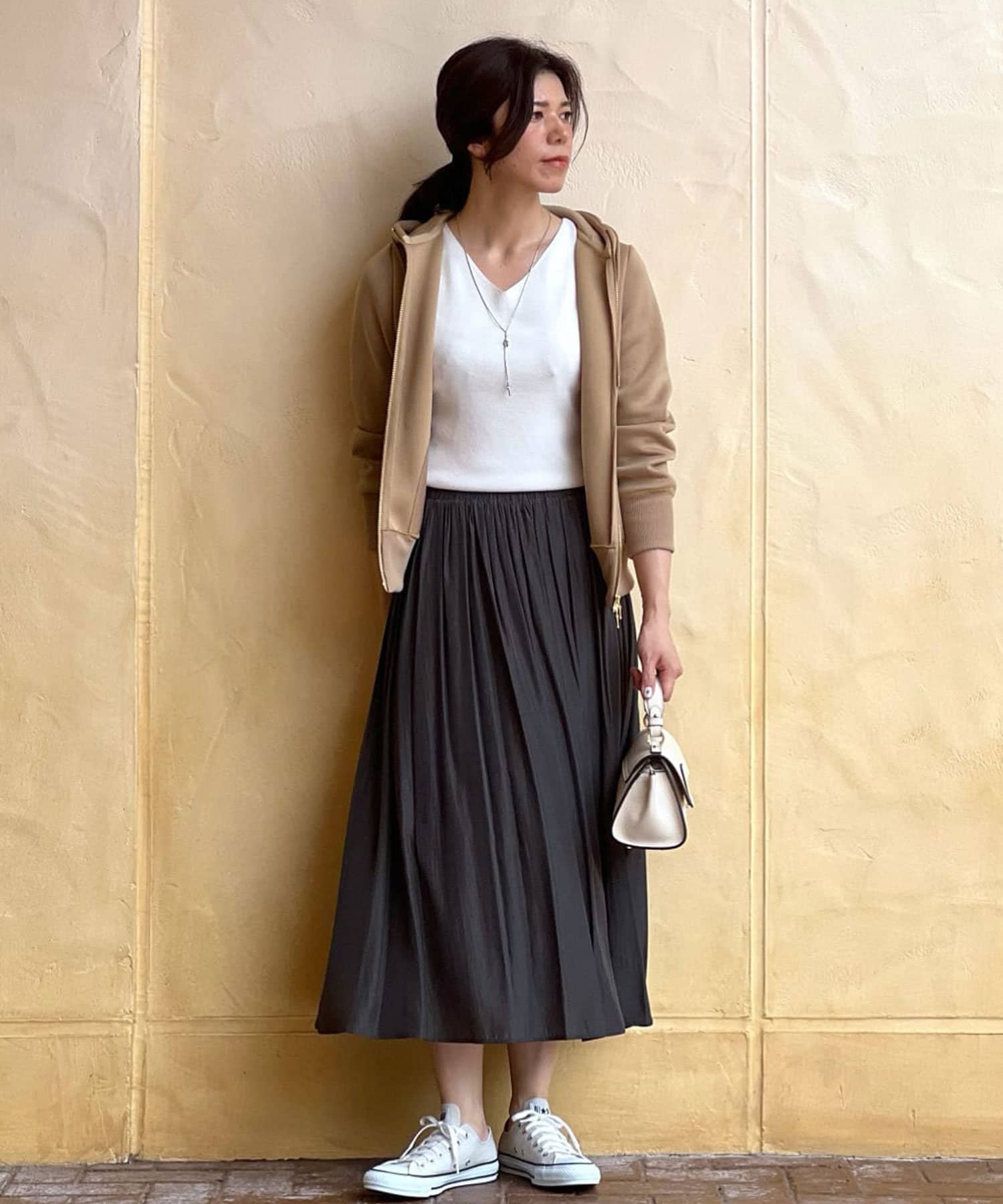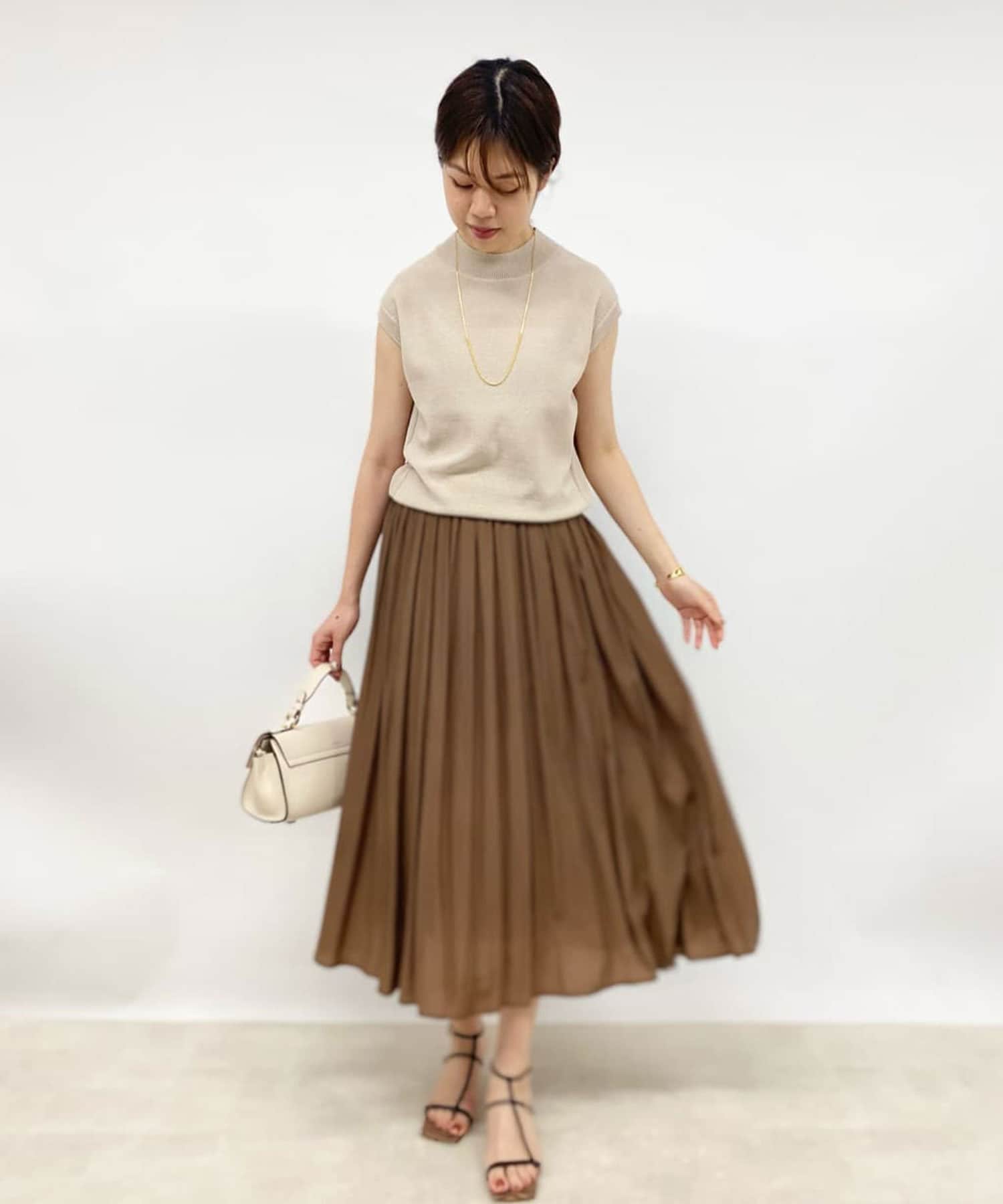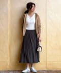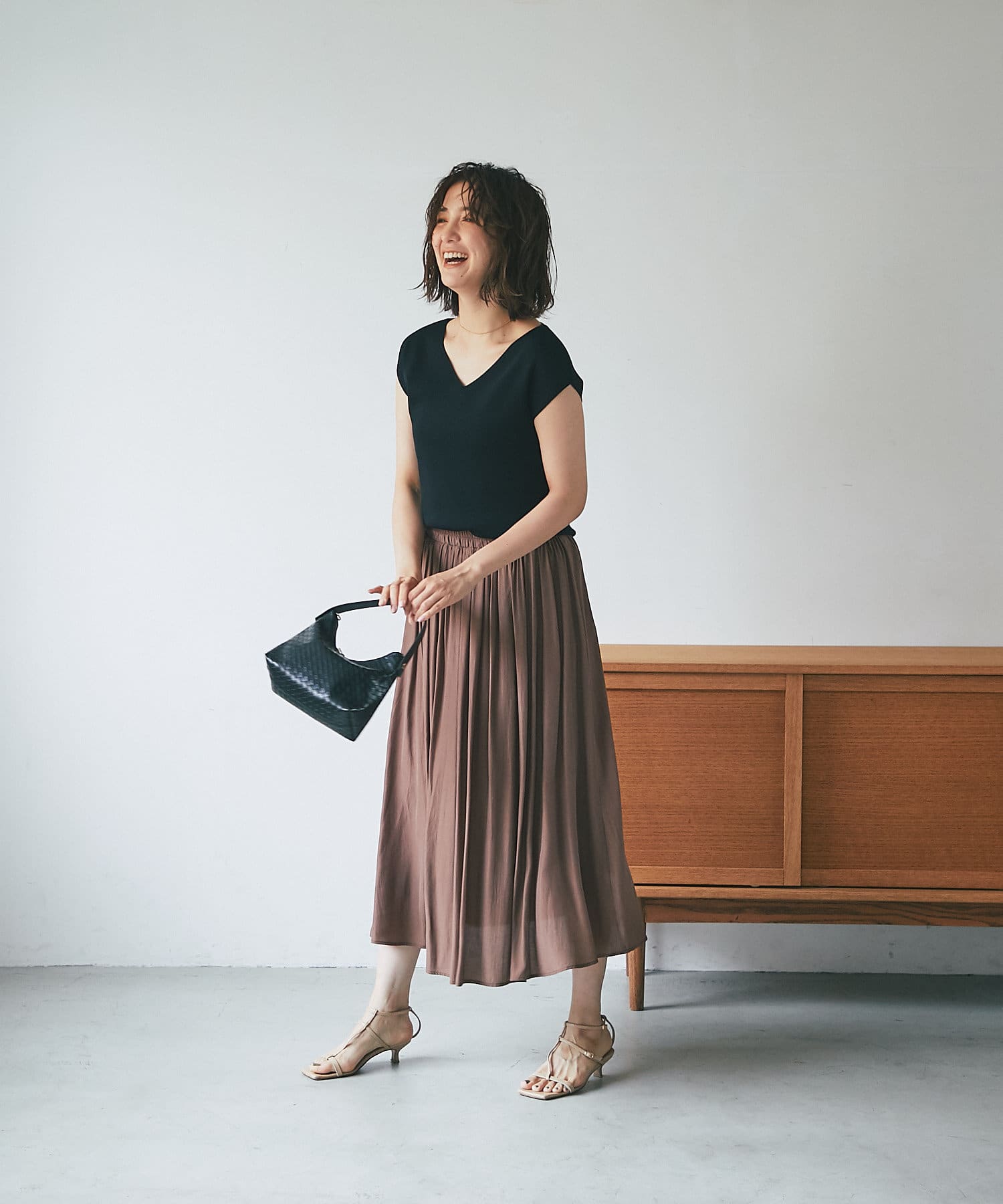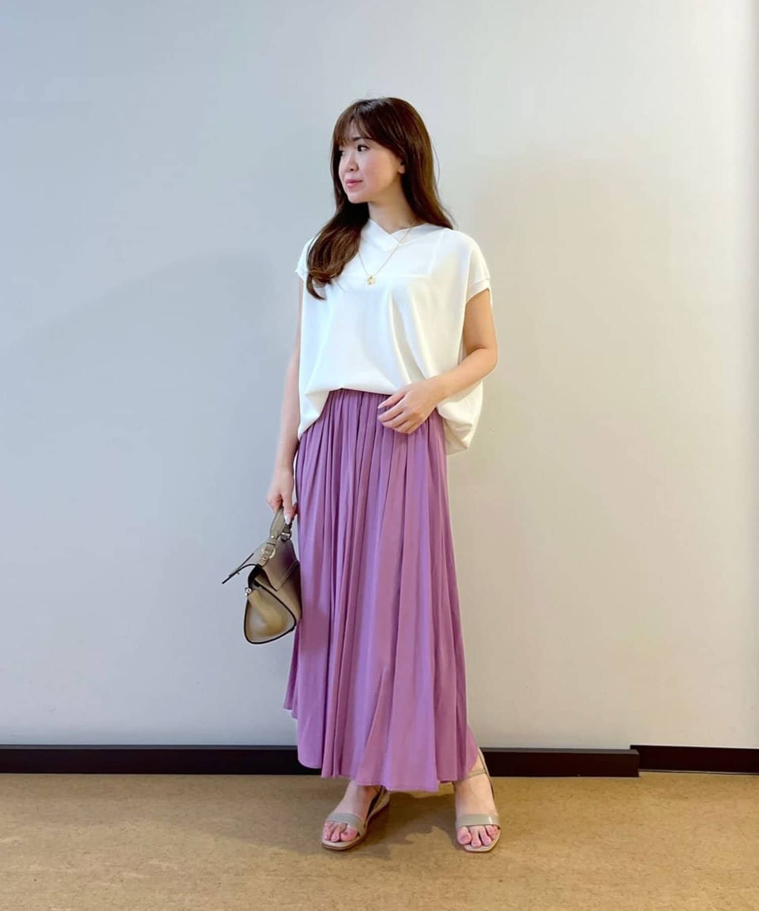 シンプルなトップスを合わせるだけでも女性らしいスタイリングに仕上がります。