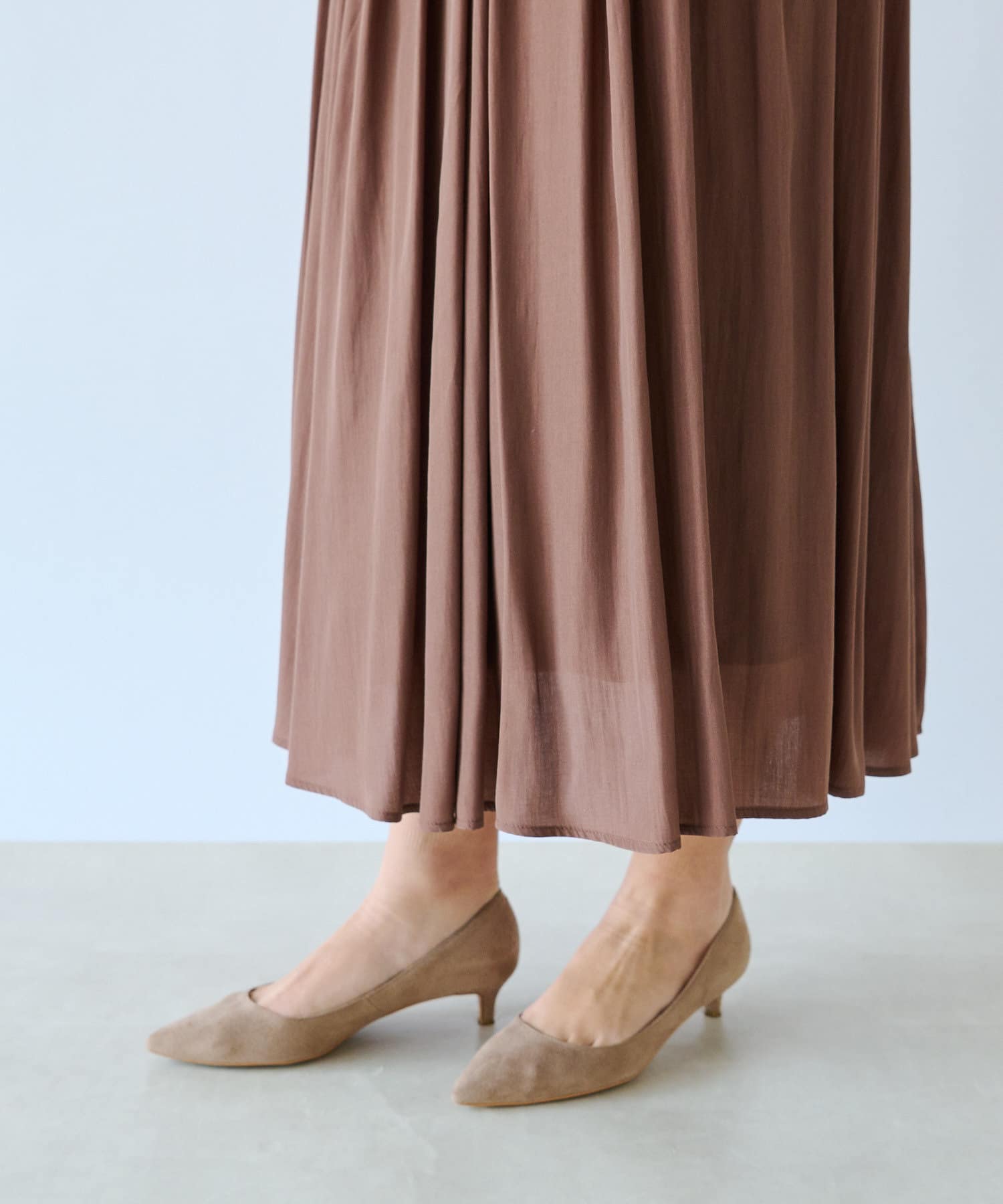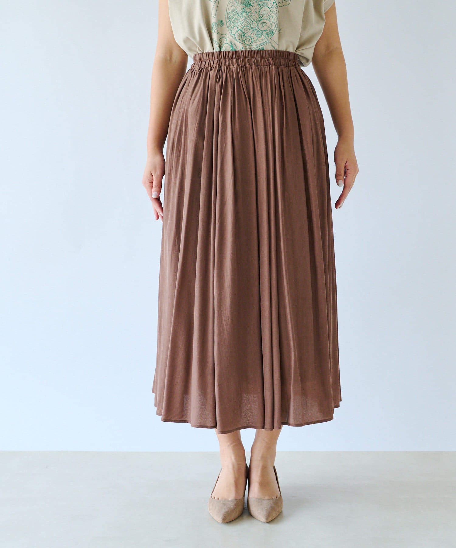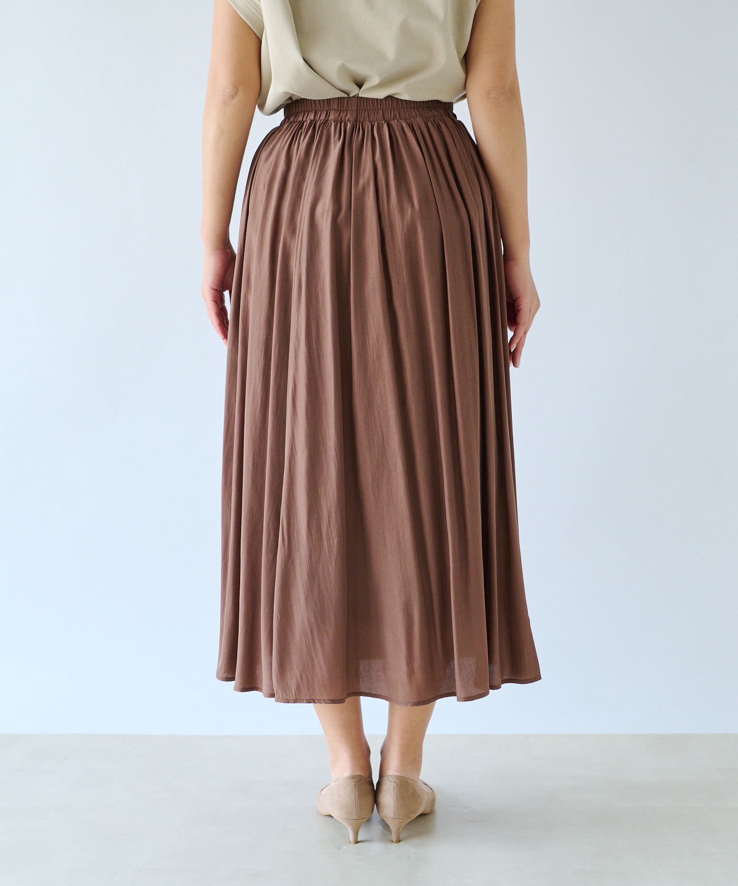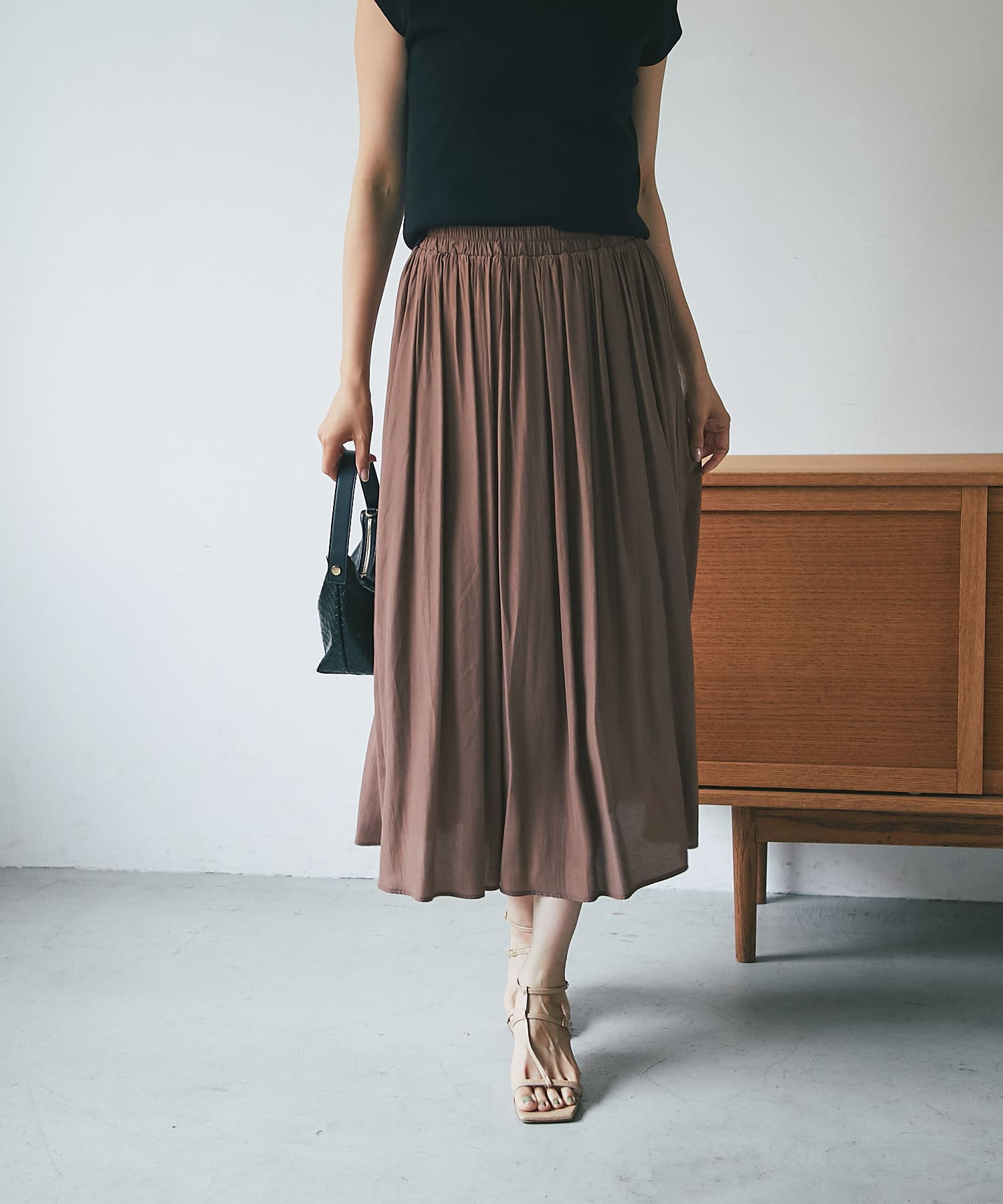 落ち感のあるポリエステルレーヨン素材のスカート。