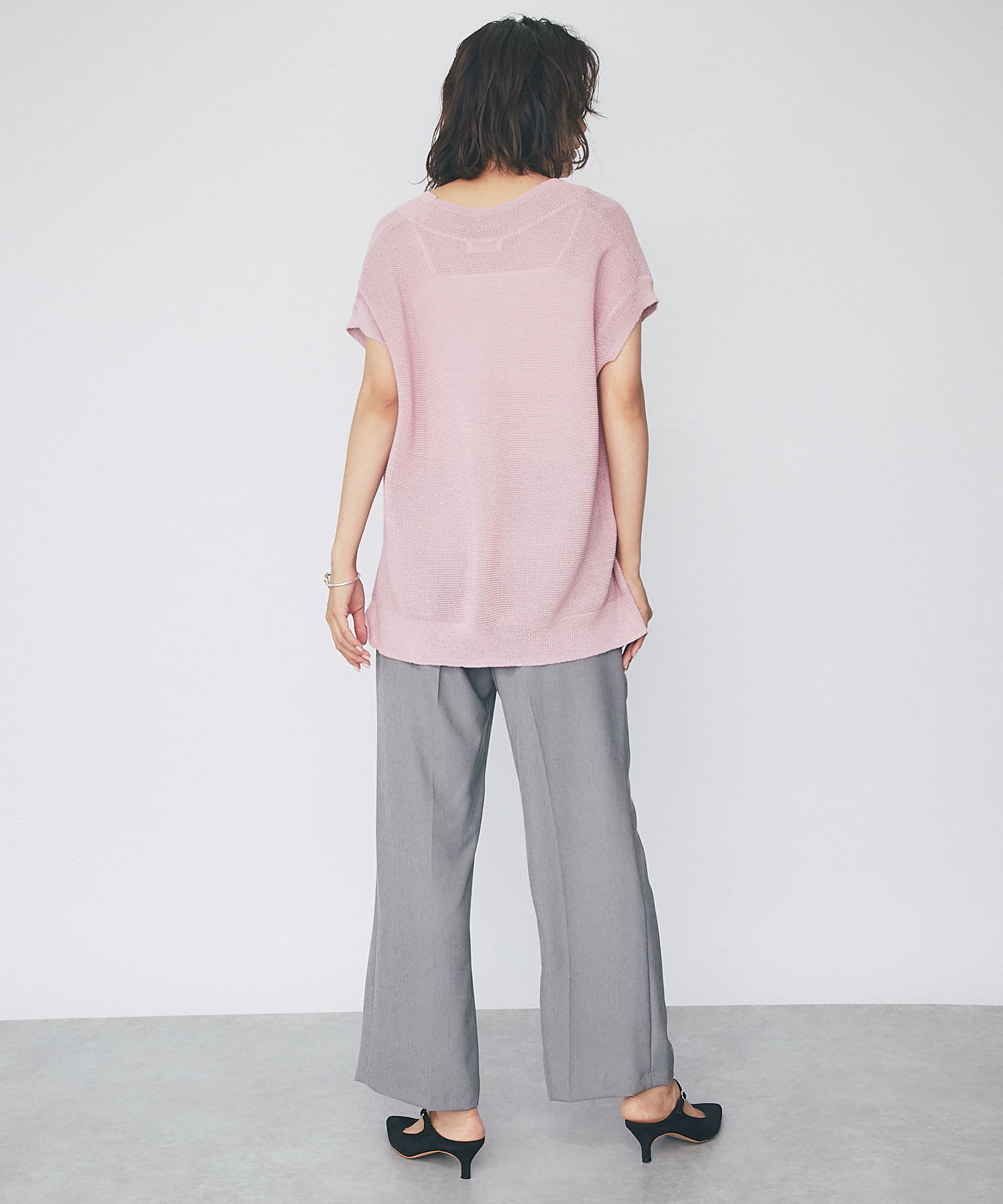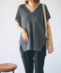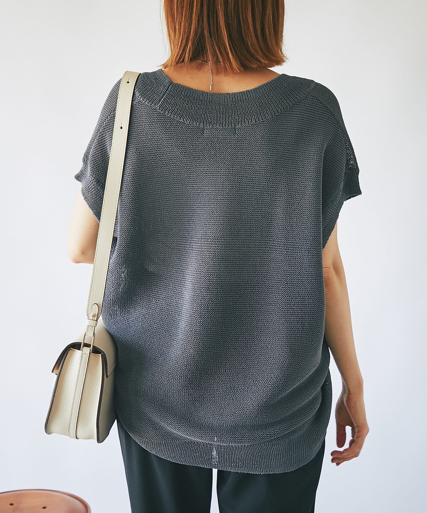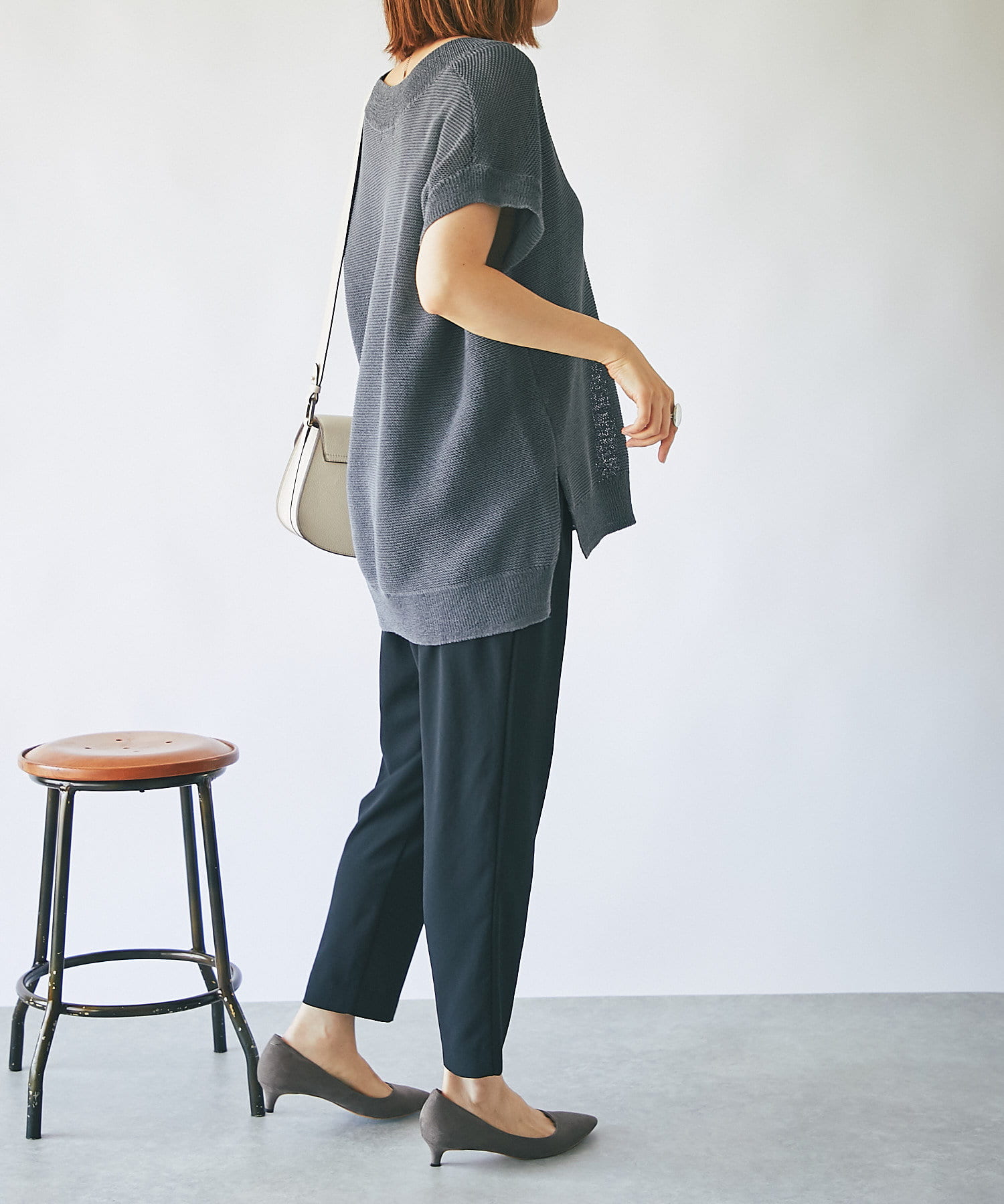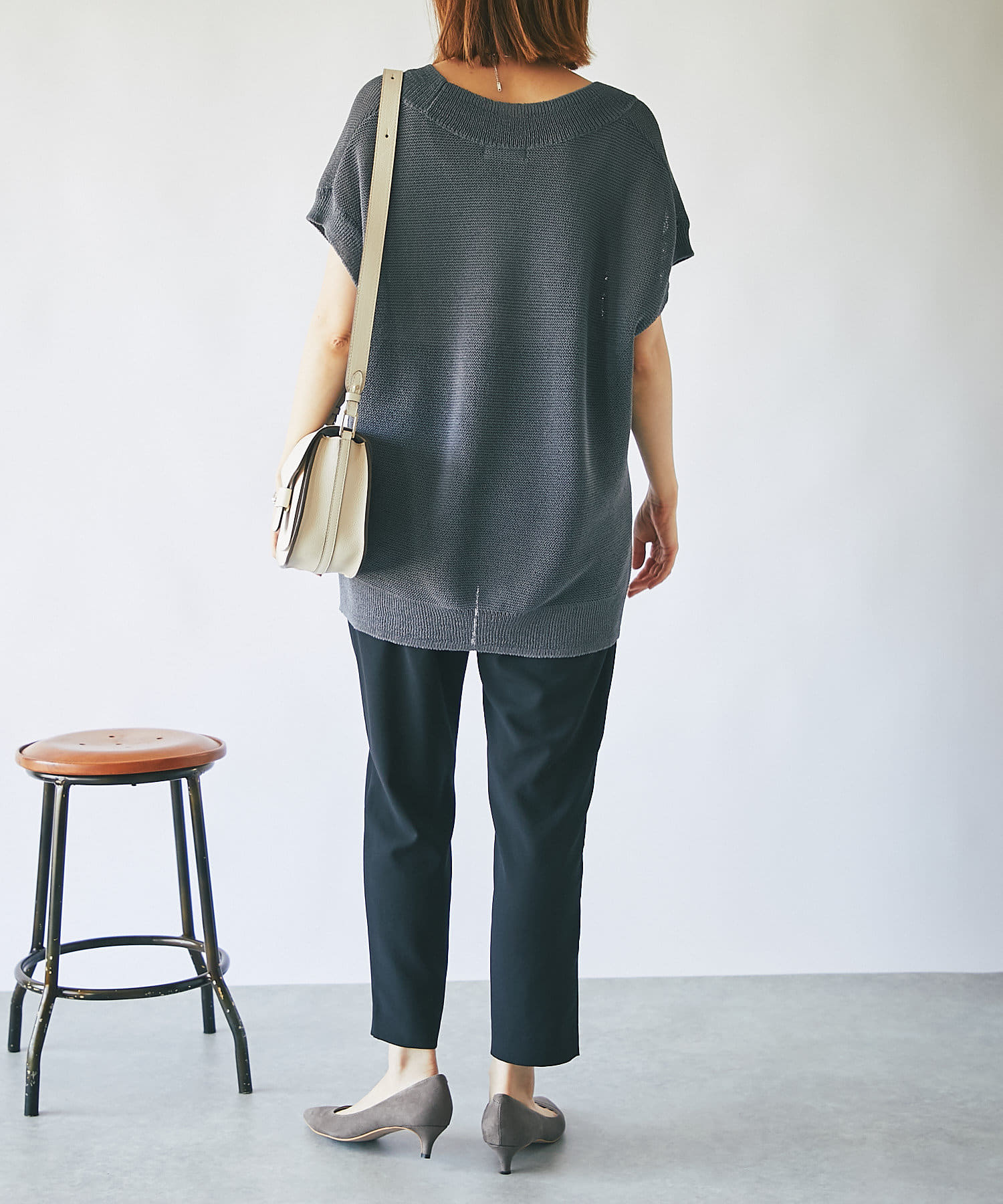 ノースリーブよりも二の腕の安心感のあるフレンチスリーブでリラックス感があり、大人のカジュアルスタイルにぴったりの一枚。