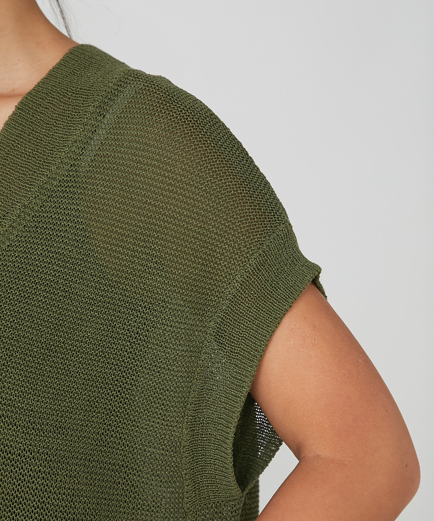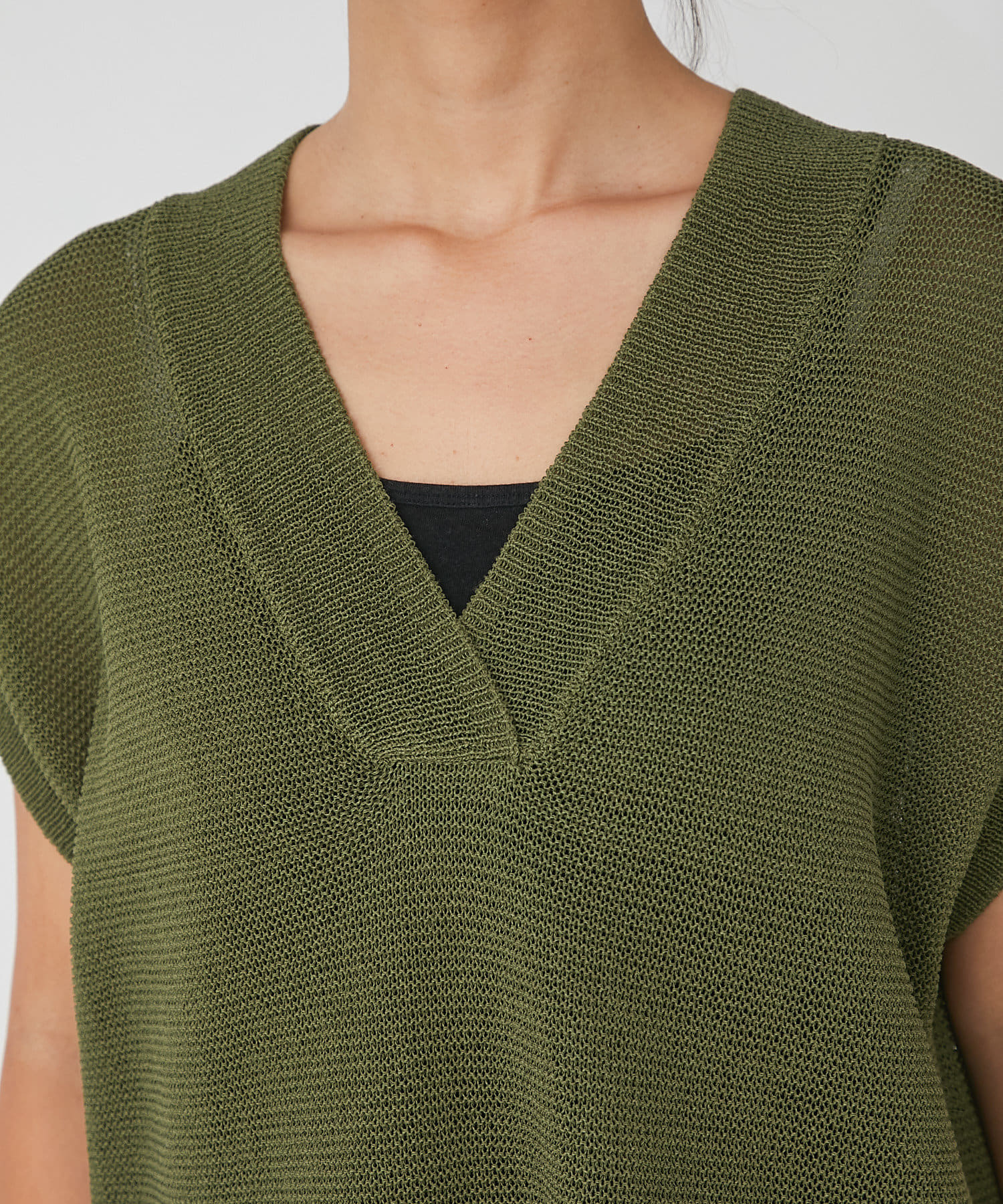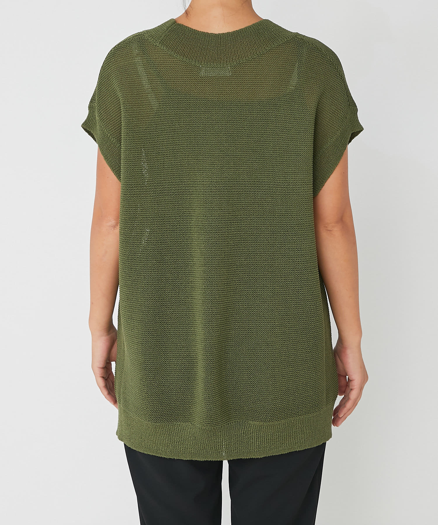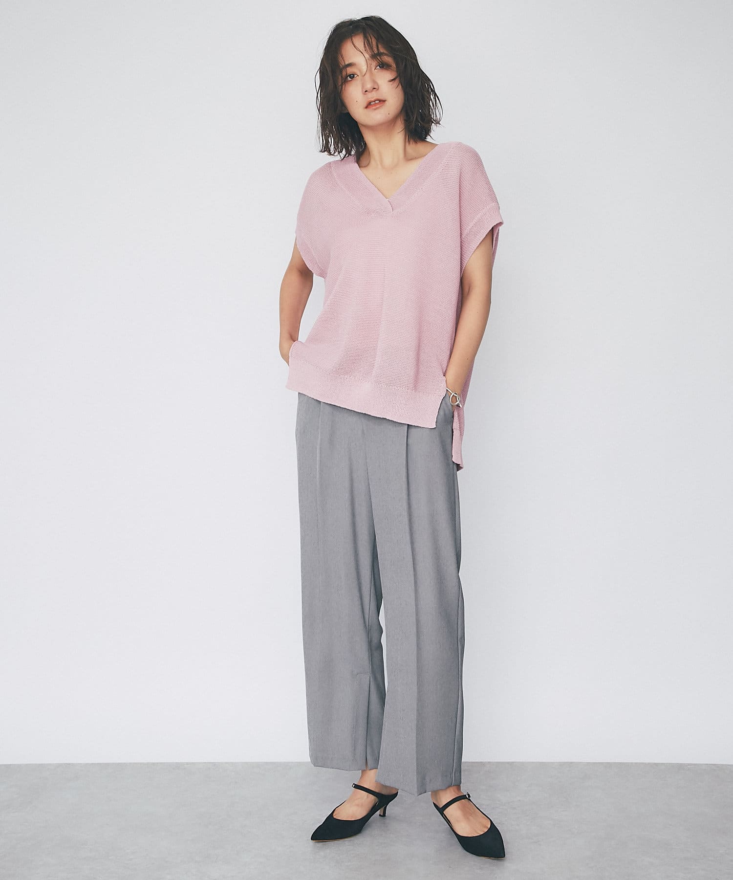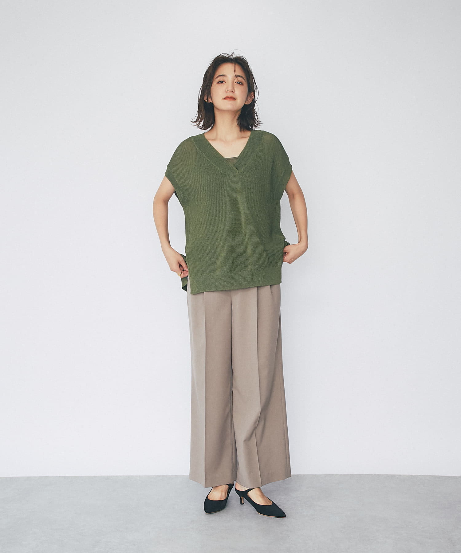 ノースリーブよりも二の腕の安心感のあるフレンチスリーブでリラックス感があり、大人のカジュアルスタイルにぴったりの一枚。
